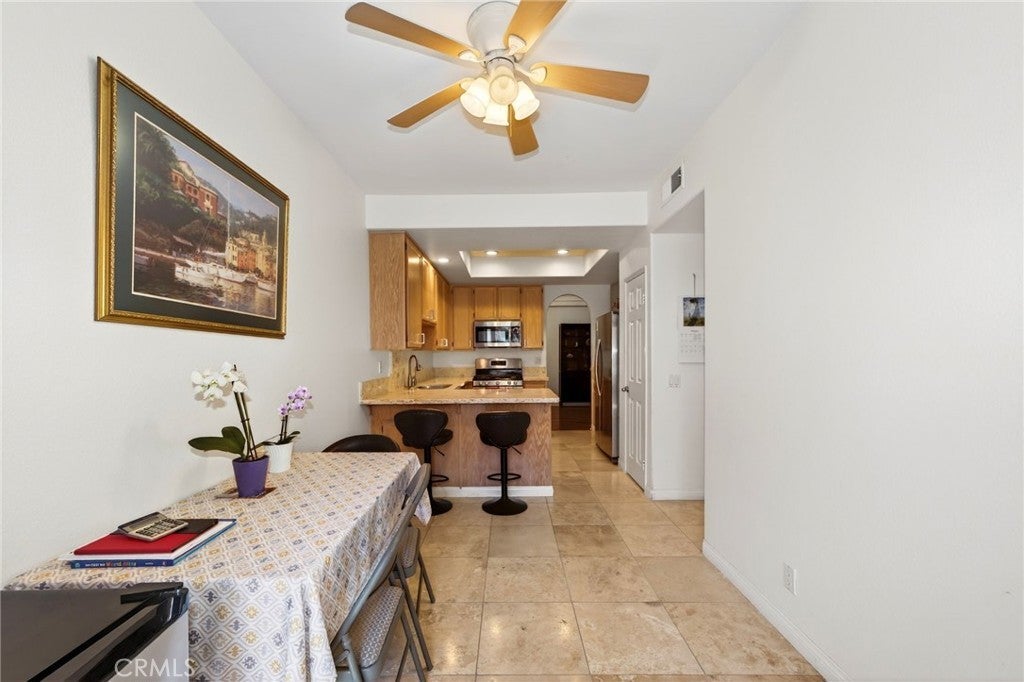 Set within the highly sought-after, gated Palmilla Del Oro community, this beautifully updated Mediterranean-style condominium offers an exceptional blend of comfort, quality, and coastal convenience. The thoughtfully designed three-bedroom, two-bath home features a bright, open living environment enhanced by recessed lighting, dual-pane windows installed in 2022, and elegant travertine-style tile flooring throughout most of the space. The spacious living room invites relaxation with its warm fireplace and wood-like flooring, flowing seamlessly into the dining area and into a tastefully upgraded kitchen appointed with stone countertops, premium cabinetry, and stainless-steel appliances. Both bathrooms have been fully remodeled with custom stone surfaces, while classic six-panel doors add a refined architectural touch throughout the home. Enjoy indoor-outdoor living with two generous private patios, perfect for morning coffee or evening gatherings. Practical upgrades include a newer water heater installed in June 2025, a detached one-car garage, an additional designated parking space, and the added convenience of included kitchen appliances, refrigerator, and brand-new 2026 washer & dryer units. Water and trash collection service, as well as exterior maintenance and structural insurance, are included in the H.O.A. dues! Ideally located less than five miles from Oceanside’s beaches and harbor, and just moments from an impressive selection of dining and shopping destinations. This beautifully turnkey residence delivers a lifestyle of ease, style, and proximity that is increasingly rare to find!
