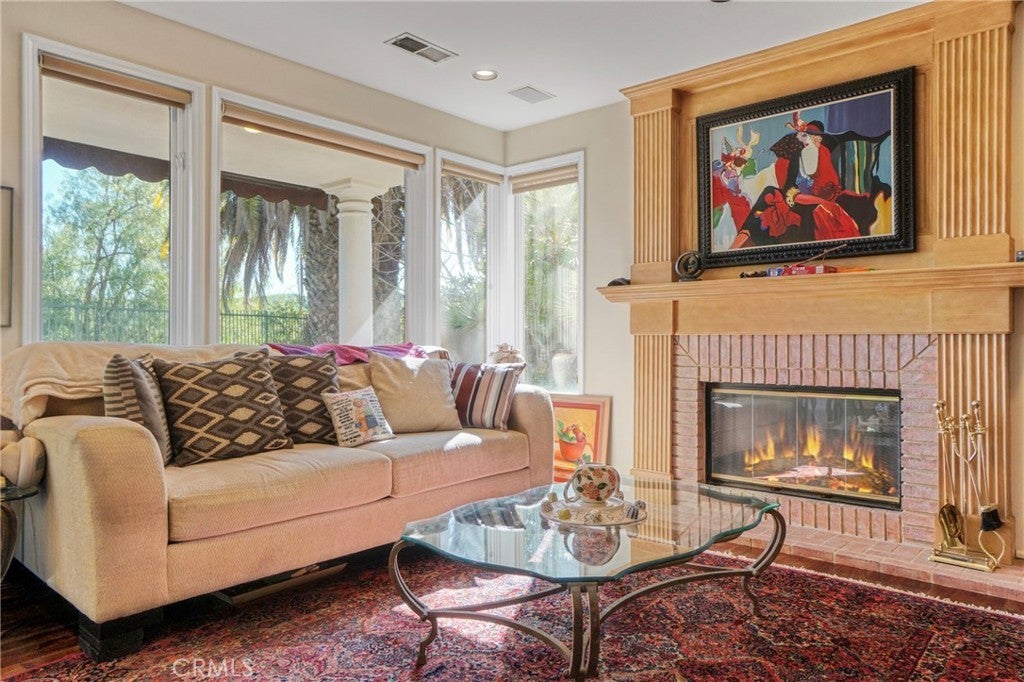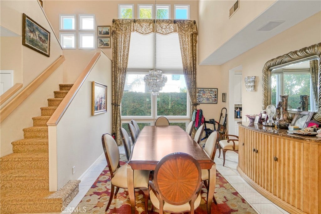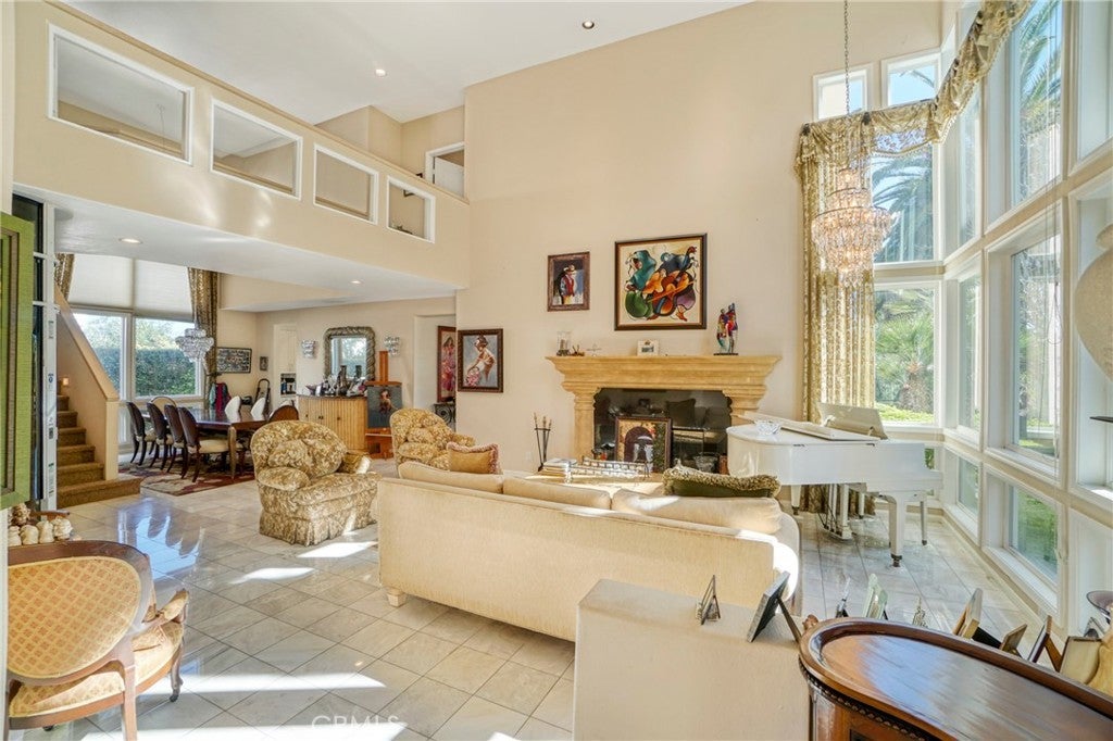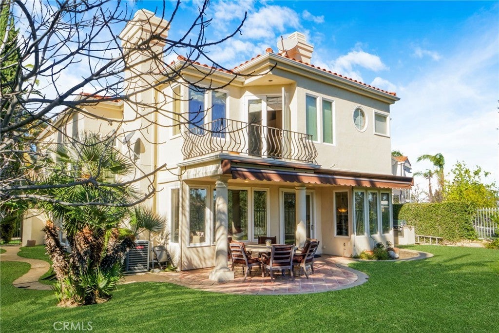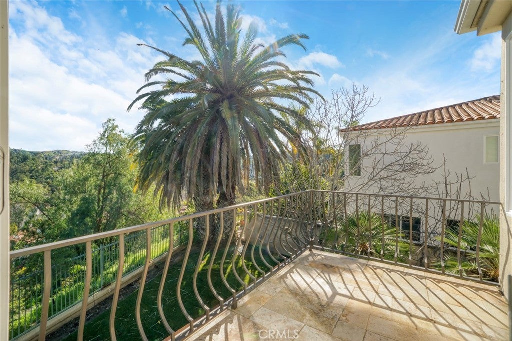 Located within the prestigious guard-gated Bellagio community, this Mediterranean-style residence captures beautiful hillside and treetop views that enhance both privacy and ambiance, creating a true sense of retreat. Thoughtfully positioned to take advantage of its scenic surroundings, the home offers approximately 3,788 sq ft of living space on a 7,343 sq ft lot, with four bedrooms and five bathrooms, highlighted by an elevator providing convenient multi-level access. The light-filled interior showcases soaring two-story ceilings, expansive windows, and an open yet functional floor plan designed for comfortable living and entertaining. The kitchen features generous cabinetry, center island, and a sunlit breakfast nook overlooking the greenery beyond, flowing seamlessly into the main living areas. Formal and casual spaces are both warm and inviting, complemented by fireplaces and timeless architectural details. The primary suite serves as a private sanctuary, complete with its own fireplace, balcony, and tranquil hillside outlooks. Secondary bedrooms are well-sized and versatile for guests, office, or lifestyle needs. Outdoor spaces embrace California living with lush landscaping, patio areas for dining and lounging, and peaceful views that provide a rare sense of serenity within a community setting. The yard offers both usability and privacy, ideal for relaxing or entertaining. Additional highlights include a dedicated laundry room, ample storage, and a three-car garage. Residents of Bellagio enjoy security, pride of ownership, and close proximity to shopping, dining, and highly regarded schools. A rare opportunity to own a view-oriented home that blends comfort, functionality, and location within one of the area’s most sought-after communities.