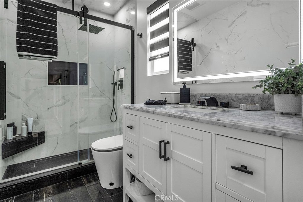 Beautifully updated home located on a quiet street in desirable Lake Balboa, blending modern luxury with energy-efficient living. The property is fully enclosed by a brand-new modern privacy fence and features a new roof installed in 2024, offering both security and long-term peace of mind. Step inside to a bright open floor plan enhanced by a recent permitted addition, custom-built wall units, and built-in closet. The primary suite features a large walk-in closet and new remote-controlled blinds for added comfort and convenience. Smart & Modern Features: • Automated blinds throughout the home • Smart bathrooms with high-end automated fixtures • Fully paid-off solar panel system • Four flush-mounted ceiling speakers (included) • High-quality integrated sound system in the exterior office • Full suite of newly installed high-end appliances Enjoy year-round comfort with central HVAC plus three bedrooms equipped with newly installed mini-split units for personalized climate control. The backyard is designed for modern living and entertaining, featuring a detached exterior office with private bathroom, a premium built-in barbecue, and two storage rooms (approx. 20x6 and 10x10). The home recently completed a permitted addition, currently in the process of being updated in the city system. Buyers are advised to conduct their own due diligence regarding exterior structures and features. A rare opportunity to own one of the most upgraded homes in the neighborhood.