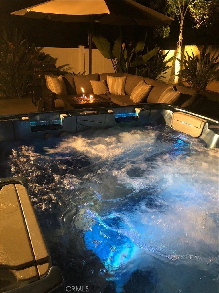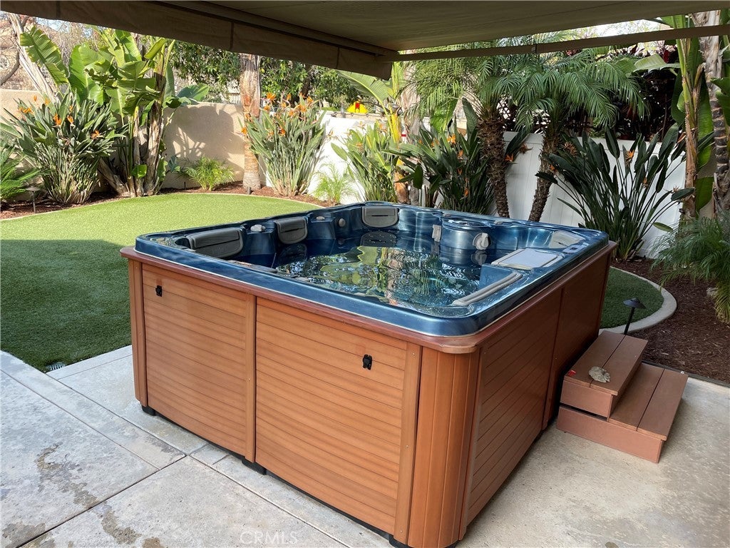 Beautifully maintained move-in ready home in the highly desired California Tesoro community of Rancho Santa Margarita with unlimited access to various active lifestyle amenities, including the Lake Santa Margarita Beach Club, at the incredibly low SAMLARC HOA fee of just $91 per month! The attractive architectural style of this home is evident as you enter the front door with the option to walk downstairs toward two lovely bedrooms and a comfortable family room that opens up to the beautiful back yard or head upstairs toward a well-appointed kitchen, comfortable living room, and primary suite. Stepping into the backyard of this home is like being transported into a fancy resort with attractive low maintenance synthetic grass, wonderful tropical landscaping, and amazing 5-person Thermo Spa Hot Tub sheltered by an attractive roll out awning. The luxurious patio furniture with fire pit are also included in the sale! Come see this home today!