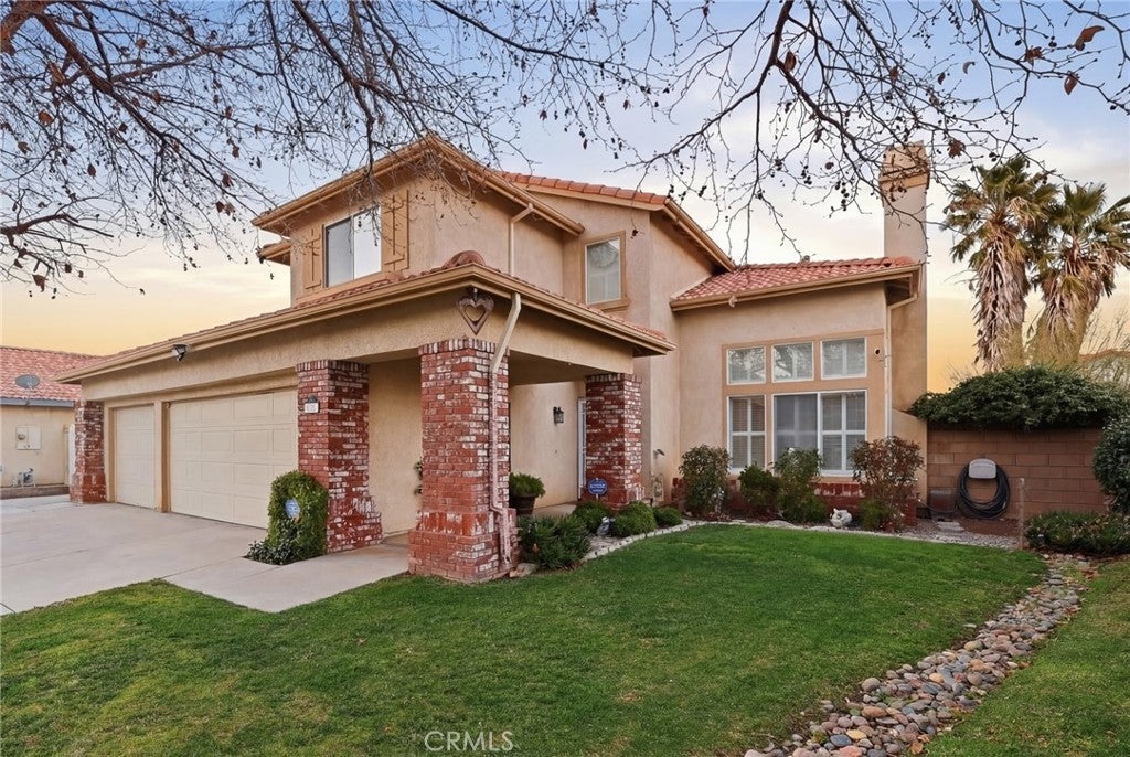 Welcome to 2515 Gemstone Ave, a move in ready POOL home located in a quiet, desirable West Palmdale neighborhood. From the moment you arrive, the impressive 3 car garage and beautiful curb appeal make a lasting first impression. Step inside to a cozy fireplace and large windows that fill the home with natural light. The spacious layout is perfect for entertaining, featuring a kitchen with a breakfast bar, breakfast nook, and a separate formal dining area, offering multiple spaces to host and gather. A convenient downstairs bedroom and full bathroom provide the perfect setup for guests, multi-generational living, or a home office. Upstairs, the expansive primary suite offers a true retreat, complete with a huge en suite bathroom featuring a soaking tub and separate shower. The backyard is the ultimate showstopper and truly sets this pool home apart. One side offers a grassy area ready for play, pets, or gatherings, while the other side showcases a gorgeous swimming pool and spa surrounded by mature landscaping, perfect for enjoying warm Palmdale summer nights. Additional highlights include solar for energy efficiency and cost savings, plus RV access ideal for your toys, trailer, or extra vehicles. This Westside gem offers space, functionality, and resort style living, all in an excellent location near the Westside Union School District, Marie Kerr Park and Amphitheater, shopping centers, the mall, and with easy access to the freeway.