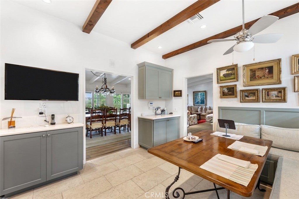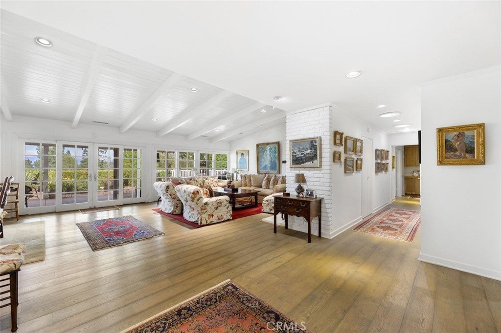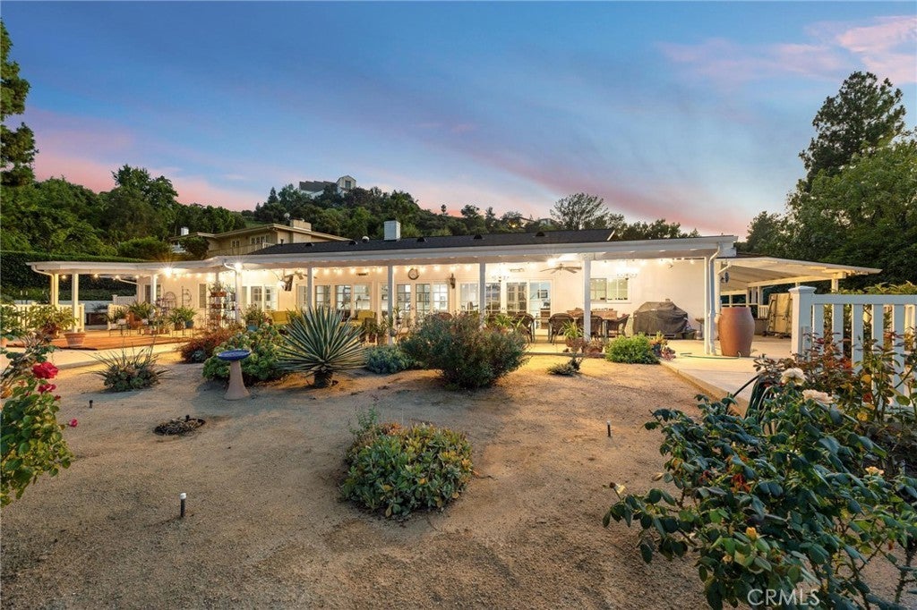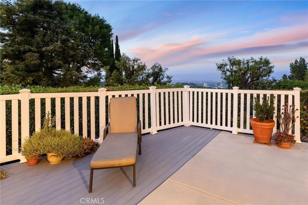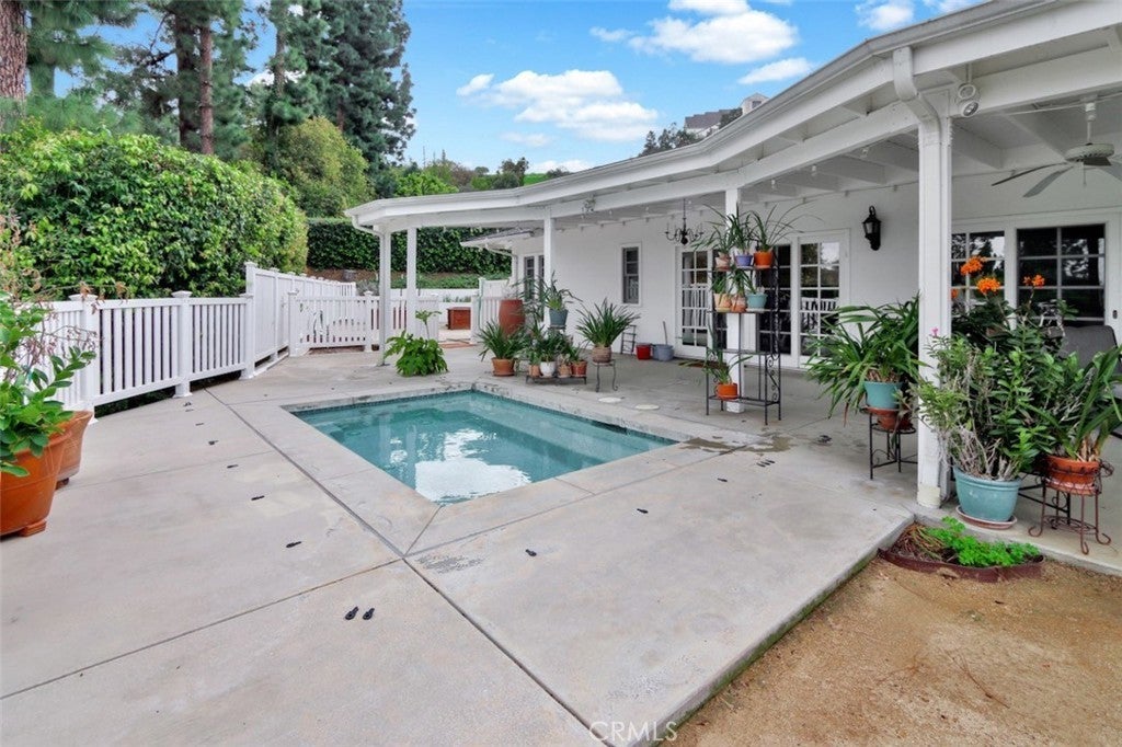 Located on a quiet cul-de-sac in the prestigious Encino Hills, this single-level 4-bedroom, 4-bathroom residence offers the quintessential Southern California lifestyle with stunning valley views. The open-concept "great room" serves as the heart of the home, featuring French Oak floors, vaulted beamed ceilings, a classic brick fireplace, and floor-to-ceiling glass sliders that create a seamless indoor-outdoor flow. The gourmet kitchen is a chef's dream, upgraded with Caesarstone quartz countertops, tumbled travertine flooring, and high-end stainless steel appliances including a separate full-sized refrigerator and freezer. Dual skylights and custom two-tone cabinetry maximize both the natural light and storage efficiency of the space. The home’s thoughtful layout features a primary suite retreat with a double-vanity bathroom, a walk-in closet, and direct French door access to the back patio. Two additional en-suite bedrooms occupy this wing, while a versatile fourth bedroom with a 3/4 bath sits adjacent to the kitchen—perfect for a home office or guest quarters. For those needing additional flex space, a large den provides the ideal footprint for a media room, home gym, or family lounge. Modern infrastructure is a focal point of the property, which includes fully paid-for solar panels and a two-car garage equipped with dual 220V EV charging outlets. Outside, the private entertainer’s backyard is designed for sustainability and relaxation, featuring drought-tolerant landscaping, an expansive covered patio, and a versatile swim spa for exercise or leisure. The property is situated within the highly-rated Lanai Road Elementary and Hesby Oaks Charter school districts and offers a strategic "South of the Boulevard" location for easy commuting to the Westside. This Encino Hills home perfectly balances mid-century charm with modern eco-friendly amenities, making it a rare find in the current market. Make this Encino Hills treasure your next home.