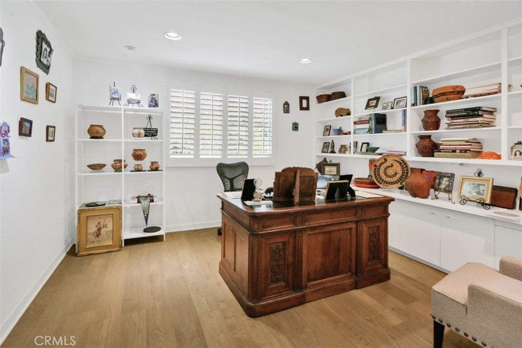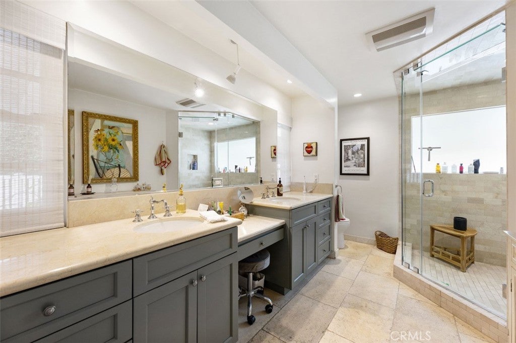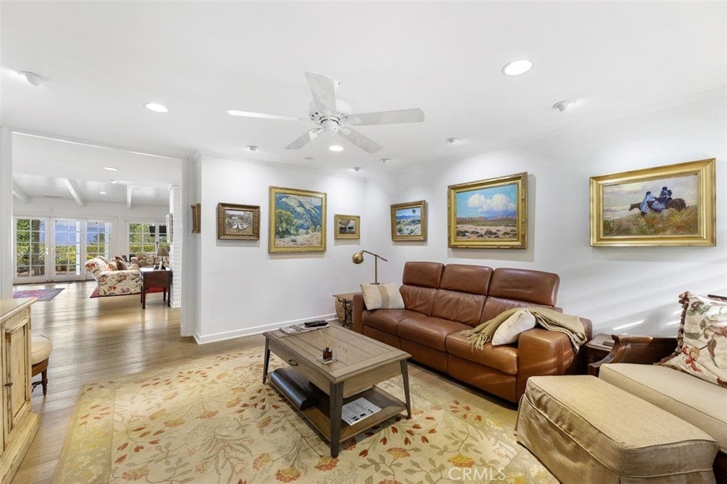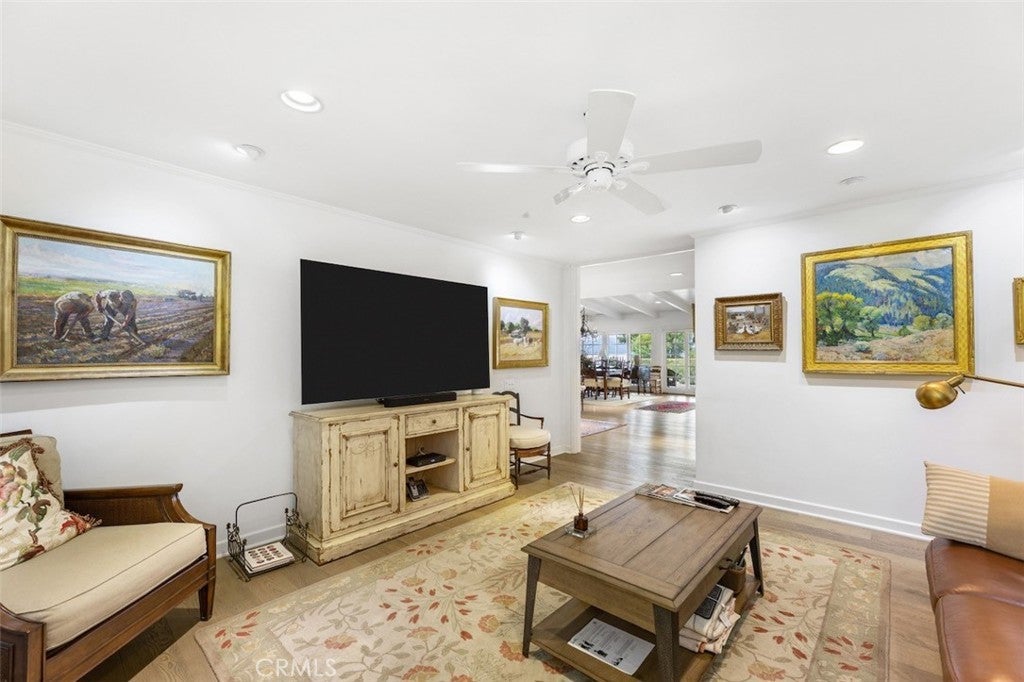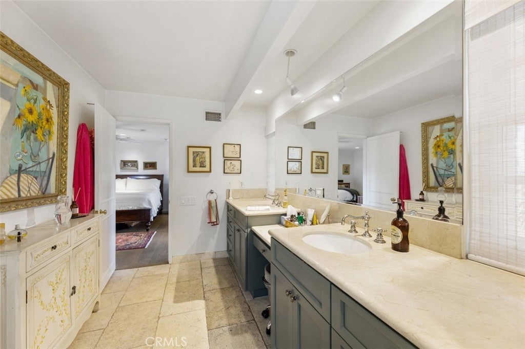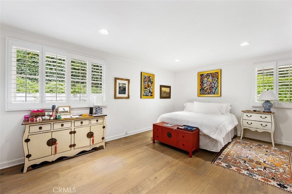 Located on a quiet cul-de-sac in the prestigious Encino Hills, this single-level 4-bedroom, 4-bathroom residence offers the quintessential Southern California lifestyle with stunning valley views. The open-concept "great room" serves as the heart of the home, featuring French Oak floors, vaulted beamed ceilings, a classic brick fireplace, and floor-to-ceiling glass sliders that create a seamless indoor-outdoor flow. The gourmet kitchen is a chef's dream, upgraded with Caesarstone quartz countertops, tumbled travertine flooring, and high-end stainless steel appliances including a separate full-sized refrigerator and freezer. Dual skylights and custom two-tone cabinetry maximize both the natural light and storage efficiency of the space. The home’s thoughtful layout features a primary suite retreat with a double-vanity bathroom, a walk-in closet, and direct French door access to the back patio. Two additional en-suite bedrooms occupy this wing, while a versatile fourth bedroom with a 3/4 bath sits adjacent to the kitchen—perfect for a home office or guest quarters. For those needing additional flex space, a large den provides the ideal footprint for a media room, home gym, or family lounge. Modern infrastructure is a focal point of the property, which includes fully paid-for solar panels and a two-car garage equipped with dual 220V EV charging outlets. Outside, the private entertainer’s backyard is designed for sustainability and relaxation, featuring drought-tolerant landscaping, an expansive covered patio, and a versatile swim spa for exercise or leisure. The property is situated within the highly-rated Lanai Road Elementary and Hesby Oaks Charter school districts and offers a strategic "South of the Boulevard" location for easy commuting to the Westside. This Encino Hills home perfectly balances mid-century charm with modern eco-friendly amenities, making it a rare find in the current market. Make this Encino Hills treasure your next home.