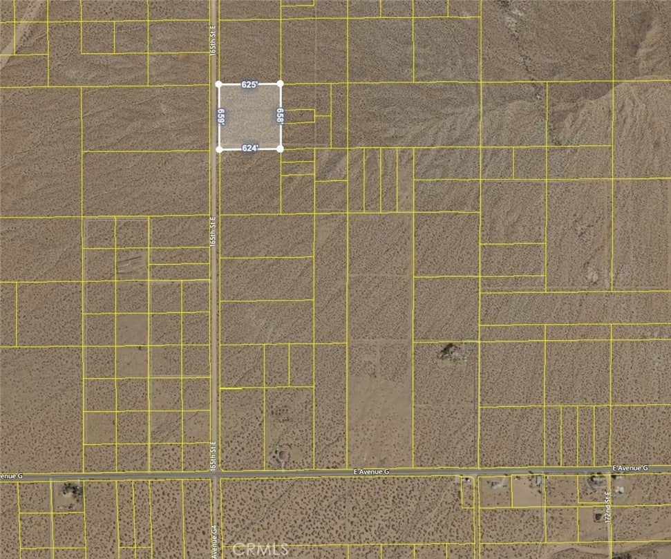 Great price for just under 10 acres of land with street frontage! Located within the LA County Waterworks district! This parcel sits on a corner lot and has frontage on 165th St E and Ave F-4 which allows for the property to be easily reached and built upon. The property is also just north of Avenue G, which is a major paved street with power lines available for connection. With over 10 acres of land, there are many possibilities with this huge canvas of land. These include building a large ranch/farm, agriculture, horse facilities, building a custom home, installing a mobile home, or subdividing the parcel into smaller chunks. The location of this parcel is desirable, as it is in a rural area that is away from the hustle and bustle of the city, while also being close to paved streets and nearby many other horse properties. With street frontage, it's easily accessed, and by virtue of being in the water district, there is potential to extend water lines onto this property and avoid needing a well. This parcel has a lot going for it and it's a tremendous value for a huge piece of land. Don't miss out!