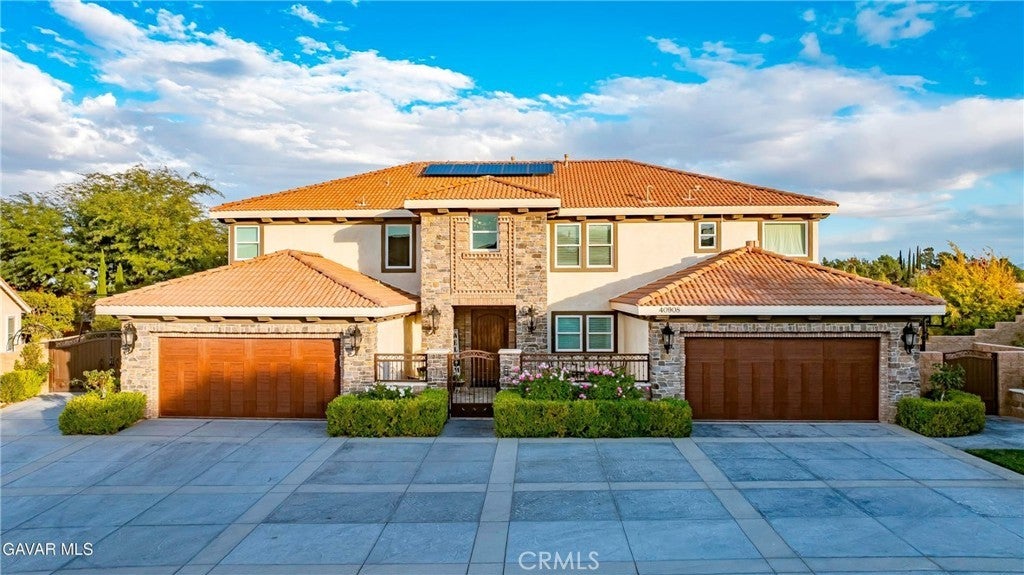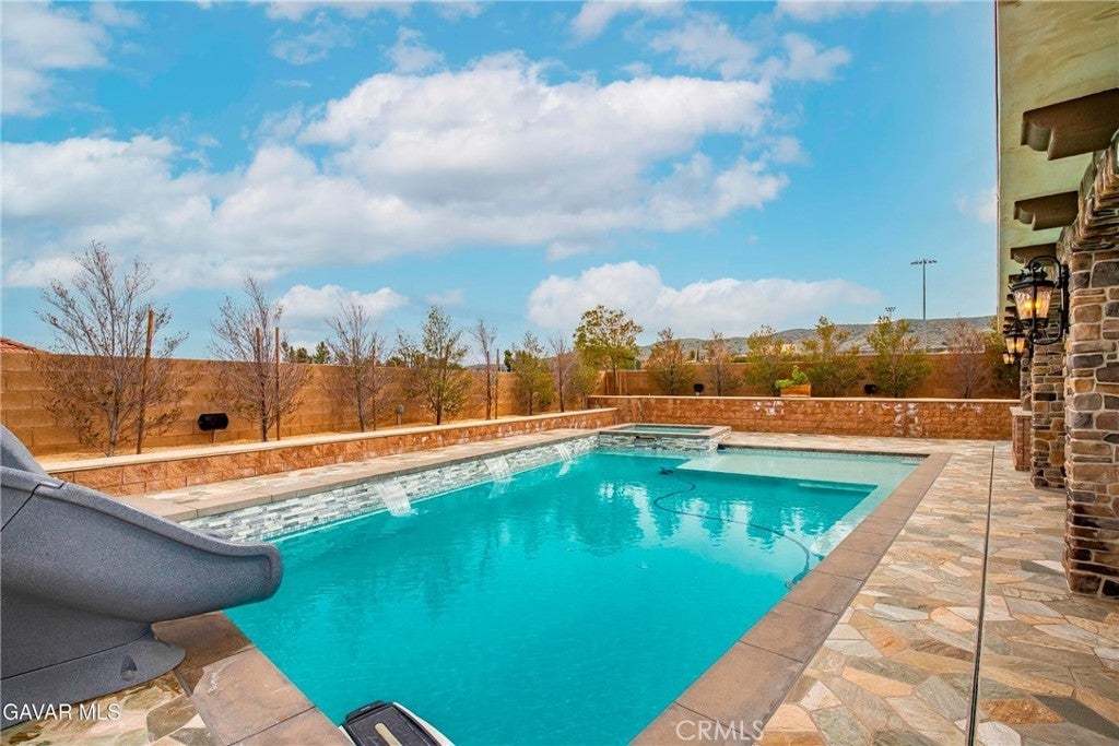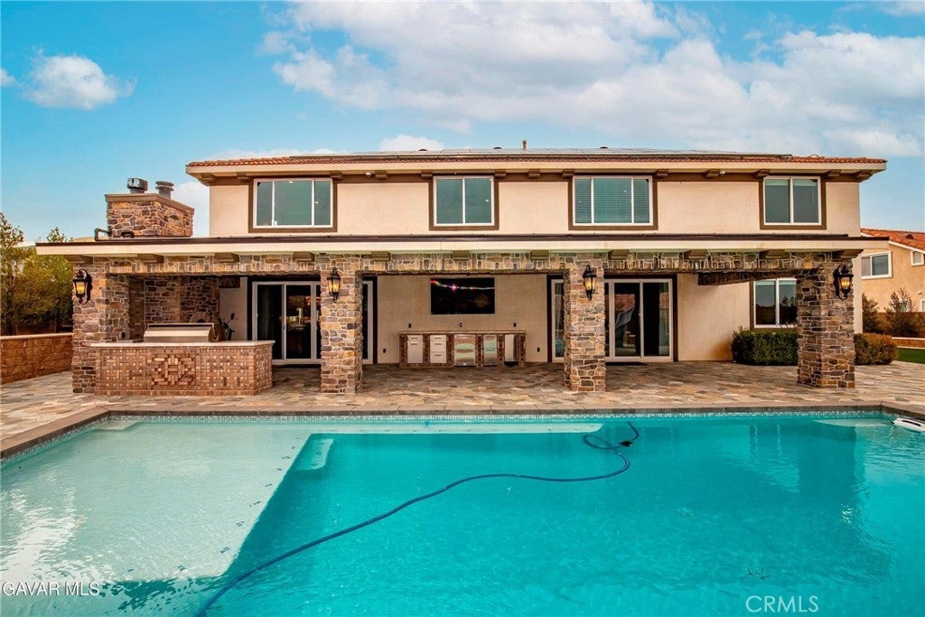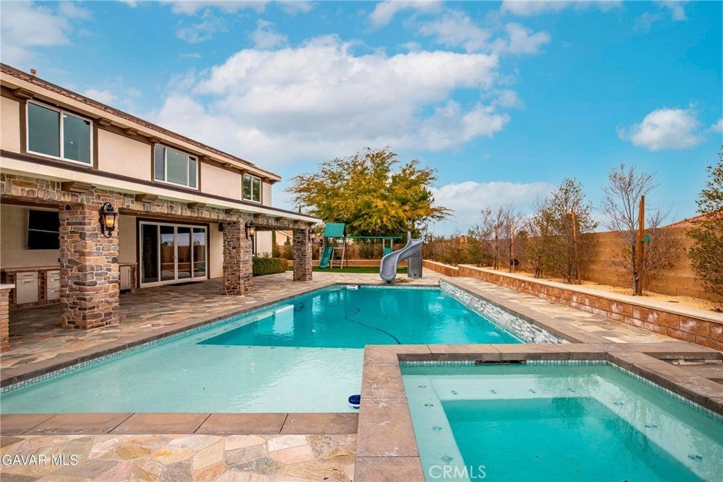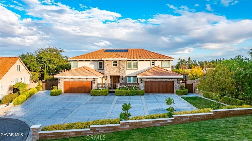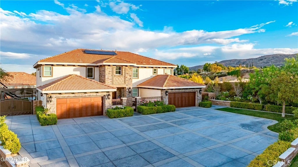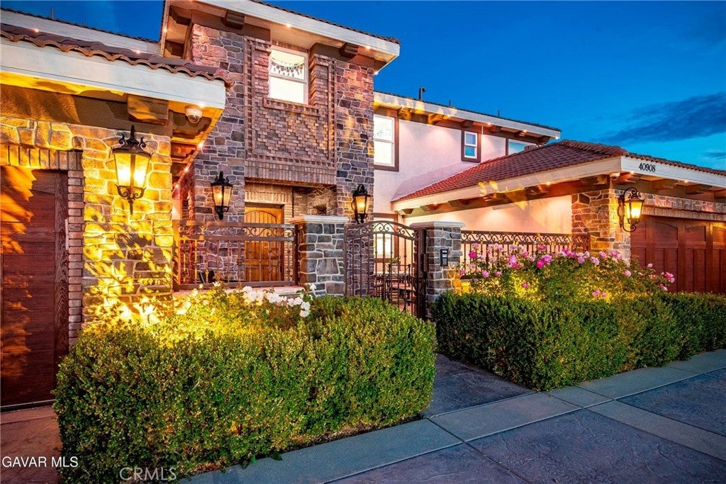 SPECTACULAR HIGHLY CUSTOMIZED HOME IN WEST PALMDALE GATED COMMUNITY Ready For Your Family! You'll love the Attention to Detail. An Expansive Parking area, Concrete with Decorative Banding accented with Rock Accents and Attractive Landscaping on 3 Sides. You enter the Home through the Gated Courtyard Entry. From the Oversized Solid Wood Door through to the back yard Outdoor Kitchen you will see that no money was spared. The Open Floorplan Concept which includes Large Living and Dining Rooms plus a Huge Entertainment and Bar Area are great all Impressive. And the Kitchen! Wow. It will knock your socks off. Rich Knotty Alder Cabinets with Thick Stone Countertops. Wolf Appliances include 60 Inch Range with Double Ovens and Griddle. There are 2 Dishwashers, a Microwave plus separate Convection Oven. The cook in the house will be amazed at the Huge Butler's Pantry with Lots of Work Area, a Utility Sink, Room for a second Refrigerator and Freezer and lots of Pantry Shelving. And the Doors are built to Integrate with the Kitchen Cabinets. Downstairs there are 2 Bedrooms and a Bathroom with access to outside (Pool Bath). Upstairs is a Loft TV/Game Room great for family gatherings. You will love this Huge Master Bedroom, the 3 Walkin Closets are finished with Custom Builtins. All Bathrooms have been Upgraded. Did I mention the Laundry Room. It is already set up with 2 Washing Machines and 2 Dryers neatly stacked in the Builtin Cabinets. There is a Utility Sink and Lots of Work Space and of course, all Cabinets are Knotty Alder. Outside if made for entertaining: Huge Covered Patio with Recessed Lighting, Ceiling Fans, Large Gas BBQ plus Green Egg BBQ, Pizza Oven, Refrigerator, Chilling Drawers and Ice Maker. The Inground Pool with Raised Spa is the focal point of this Lovely Yard. All Flatwork under the Patio, around the Pool and more is Rich Natural Flagstone. This outdoor space perfectly compliments the gorgeous interior for GREAT INDOOR/OUTDOOR LIVING! Don't miss it!
