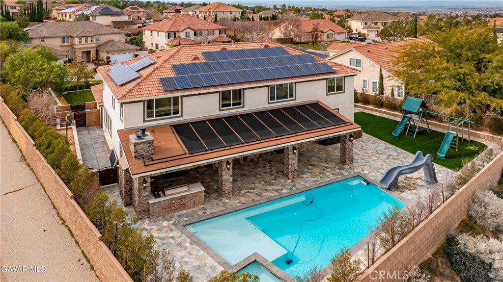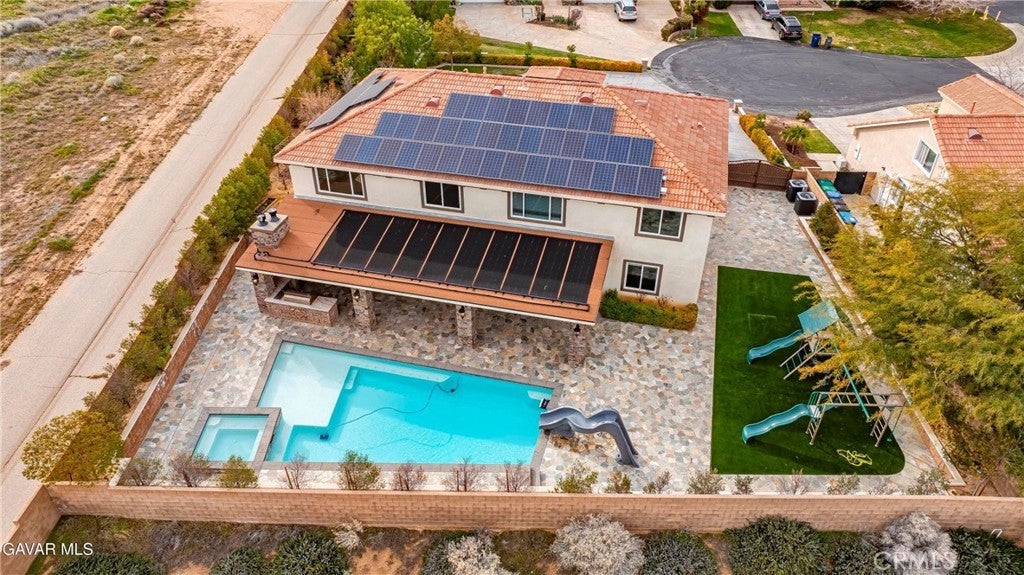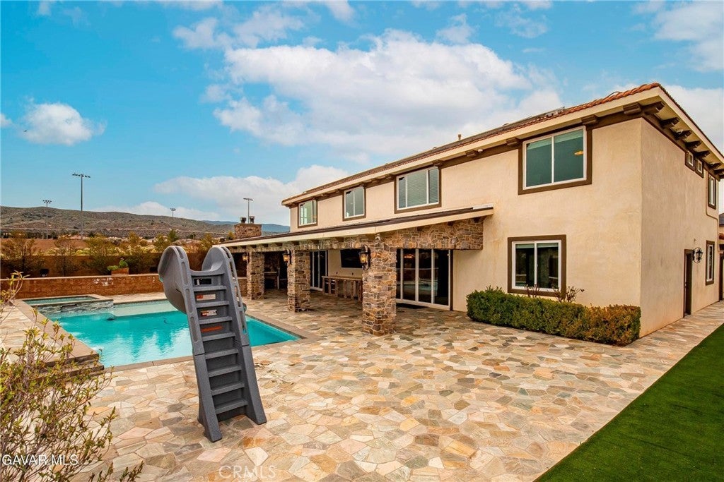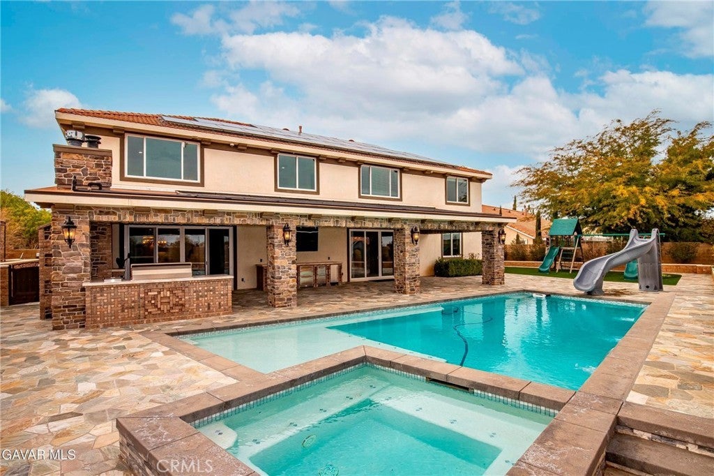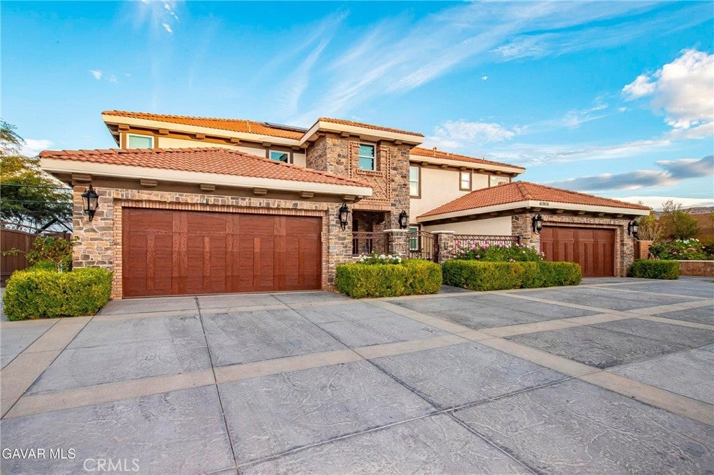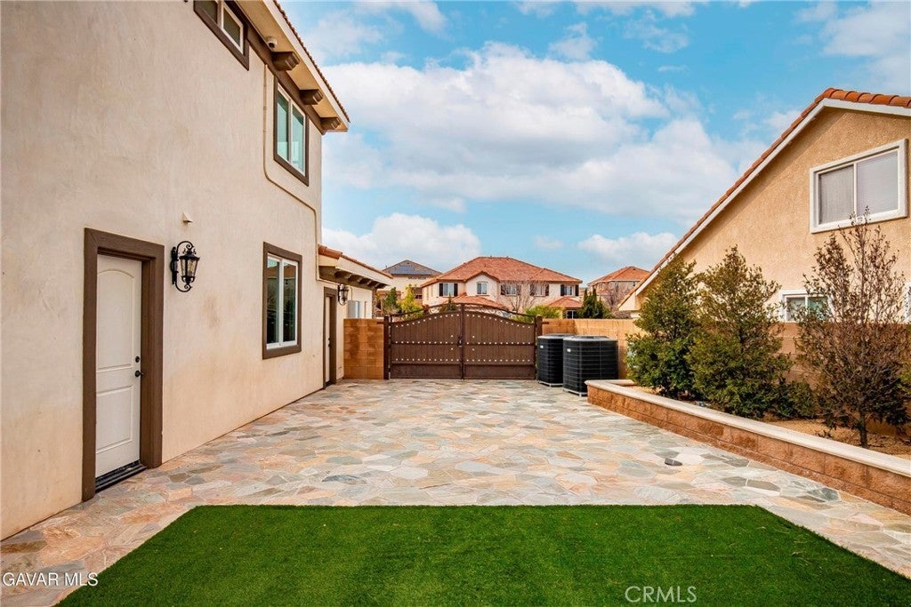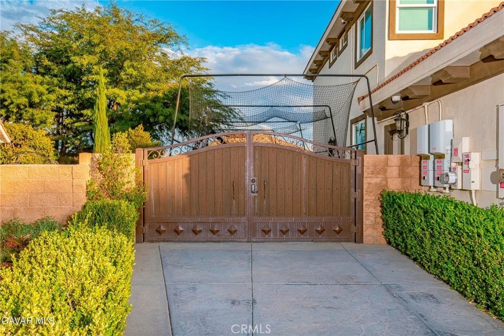 SPECTACULAR HIGHLY CUSTOMIZED HOME IN WEST PALMDALE GATED COMMUNITY Ready For Your Family! You'll love the Attention to Detail. An Expansive Parking area, Concrete with Decorative Banding accented with Rock Accents and Attractive Landscaping on 3 Sides. You enter the Home through the Gated Courtyard Entry. From the Oversized Solid Wood Door through to the back yard Outdoor Kitchen you will see that no money was spared. The Open Floorplan Concept which includes Large Living and Dining Rooms plus a Huge Entertainment and Bar Area are great all Impressive. And the Kitchen! Wow. It will knock your socks off. Rich Knotty Alder Cabinets with Thick Stone Countertops. Wolf Appliances include 60 Inch Range with Double Ovens and Griddle. There are 2 Dishwashers, a Microwave plus separate Convection Oven. The cook in the house will be amazed at the Huge Butler's Pantry with Lots of Work Area, a Utility Sink, Room for a second Refrigerator and Freezer and lots of Pantry Shelving. And the Doors are built to Integrate with the Kitchen Cabinets. Downstairs there are 2 Bedrooms and a Bathroom with access to outside (Pool Bath). Upstairs is a Loft TV/Game Room great for family gatherings. You will love this Huge Master Bedroom, the 3 Walkin Closets are finished with Custom Builtins. All Bathrooms have been Upgraded. Did I mention the Laundry Room. It is already set up with 2 Washing Machines and 2 Dryers neatly stacked in the Builtin Cabinets. There is a Utility Sink and Lots of Work Space and of course, all Cabinets are Knotty Alder. Outside if made for entertaining: Huge Covered Patio with Recessed Lighting, Ceiling Fans, Large Gas BBQ plus Green Egg BBQ, Pizza Oven, Refrigerator, Chilling Drawers and Ice Maker. The Inground Pool with Raised Spa is the focal point of this Lovely Yard. All Flatwork under the Patio, around the Pool and more is Rich Natural Flagstone. This outdoor space perfectly compliments the gorgeous interior for GREAT INDOOR/OUTDOOR LIVING! Don't miss it!