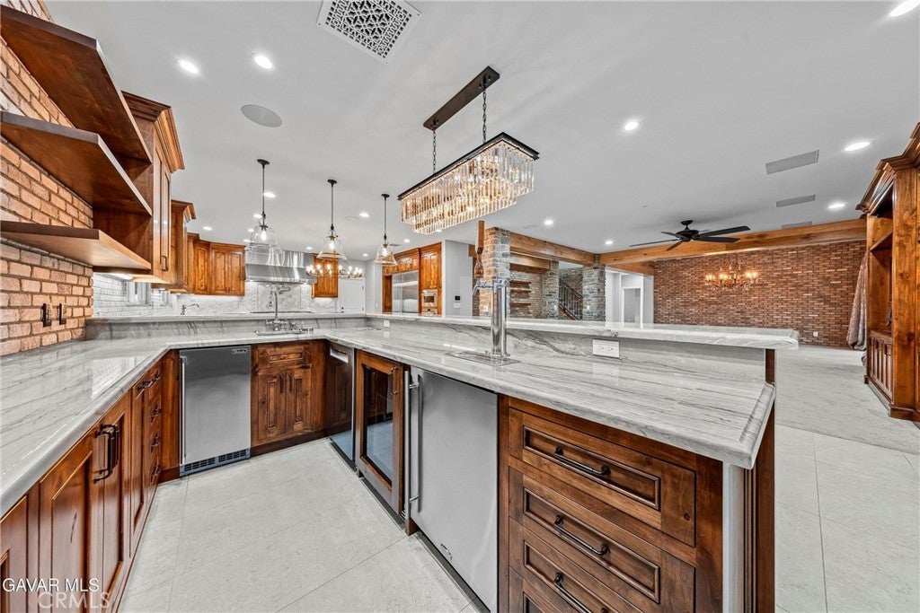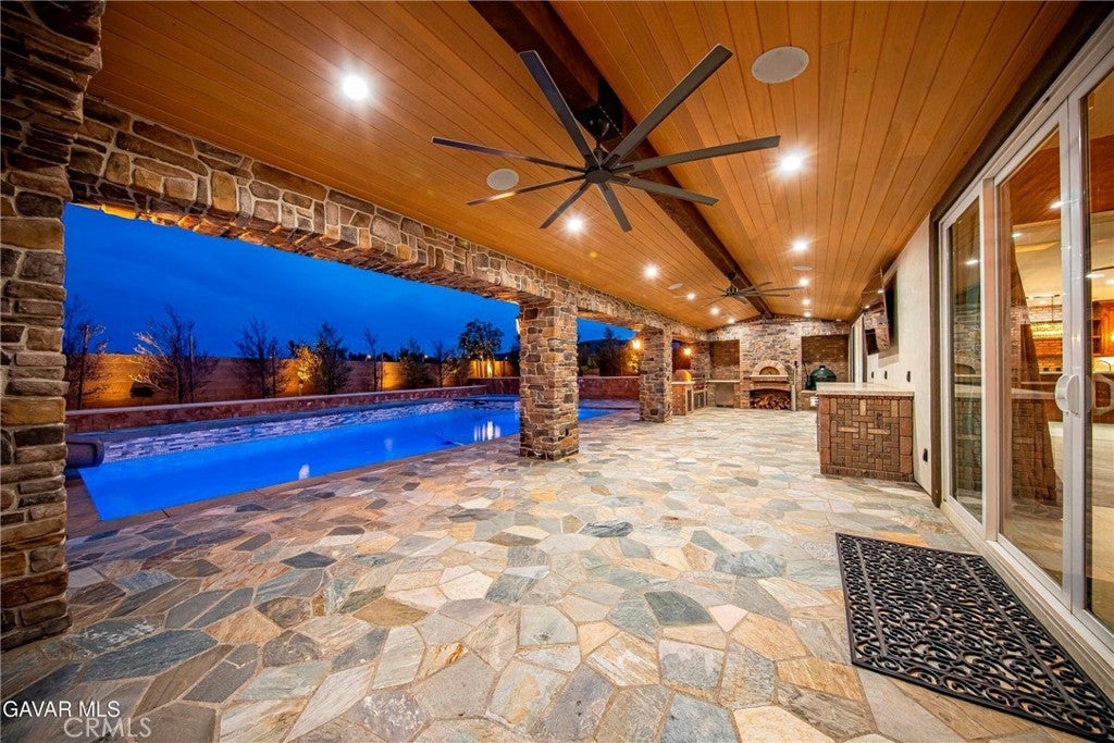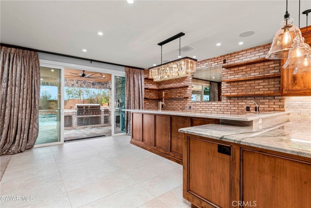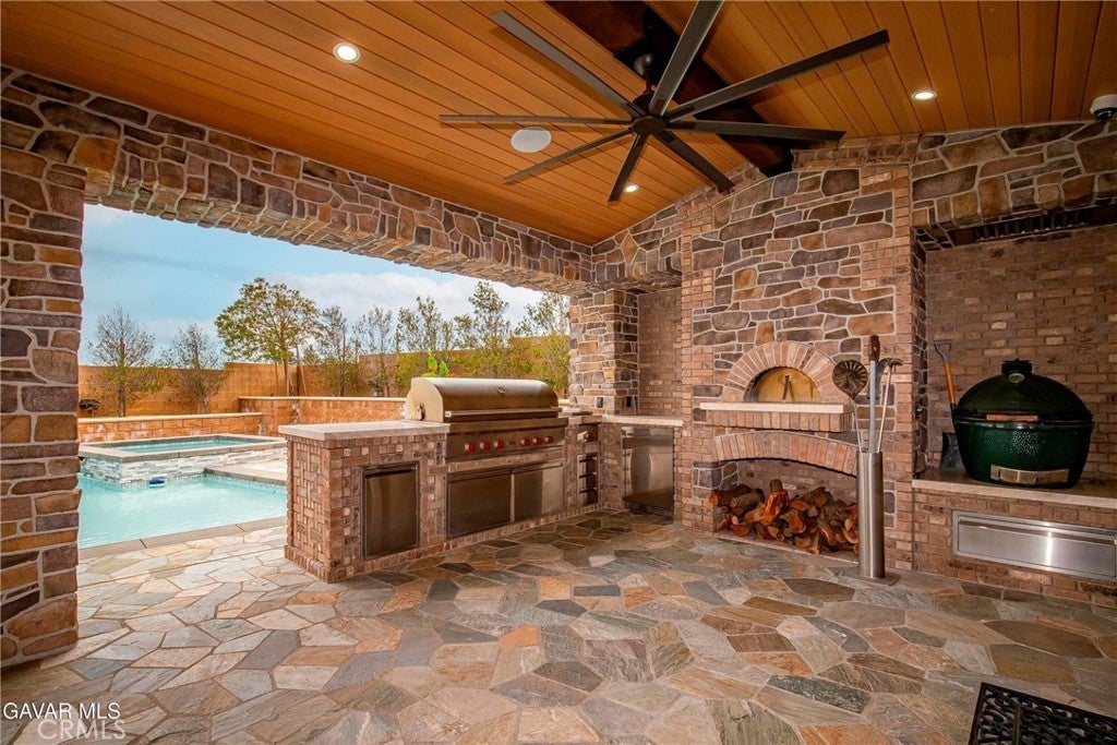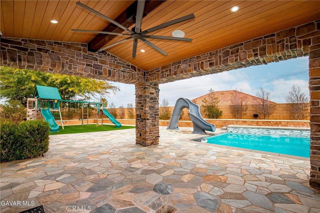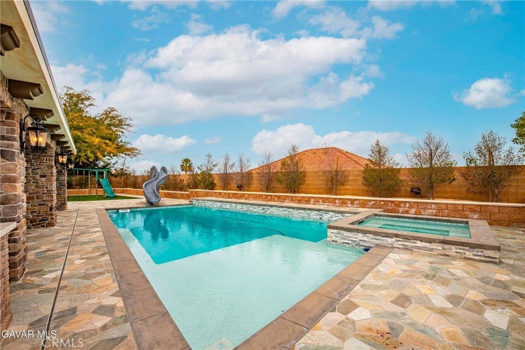 SPECTACULAR HIGHLY CUSTOMIZED HOME IN WEST PALMDALE GATED COMMUNITY Ready For Your Family! You'll love the Attention to Detail. An Expansive Parking area, Concrete with Decorative Banding accented with Rock Accents and Attractive Landscaping on 3 Sides. You enter the Home through the Gated Courtyard Entry. From the Oversized Solid Wood Door through to the back yard Outdoor Kitchen you will see that no money was spared. The Open Floorplan Concept which includes Large Living and Dining Rooms plus a Huge Entertainment and Bar Area are great all Impressive. And the Kitchen! Wow. It will knock your socks off. Rich Knotty Alder Cabinets with Thick Stone Countertops. Wolf Appliances include 60 Inch Range with Double Ovens and Griddle. There are 2 Dishwashers, a Microwave plus separate Convection Oven. The cook in the house will be amazed at the Huge Butler's Pantry with Lots of Work Area, a Utility Sink, Room for a second Refrigerator and Freezer and lots of Pantry Shelving. And the Doors are built to Integrate with the Kitchen Cabinets. Downstairs there are 2 Bedrooms and a Bathroom with access to outside (Pool Bath). Upstairs is a Loft TV/Game Room great for family gatherings. You will love this Huge Master Bedroom, the 3 Walkin Closets are finished with Custom Builtins. All Bathrooms have been Upgraded. Did I mention the Laundry Room. It is already set up with 2 Washing Machines and 2 Dryers neatly stacked in the Builtin Cabinets. There is a Utility Sink and Lots of Work Space and of course, all Cabinets are Knotty Alder. Outside if made for entertaining: Huge Covered Patio with Recessed Lighting, Ceiling Fans, Large Gas BBQ plus Green Egg BBQ, Pizza Oven, Refrigerator, Chilling Drawers and Ice Maker. The Inground Pool with Raised Spa is the focal point of this Lovely Yard. All Flatwork under the Patio, around the Pool and more is Rich Natural Flagstone. This outdoor space perfectly compliments the gorgeous interior for GREAT INDOOR/OUTDOOR LIVING! Don't miss it!