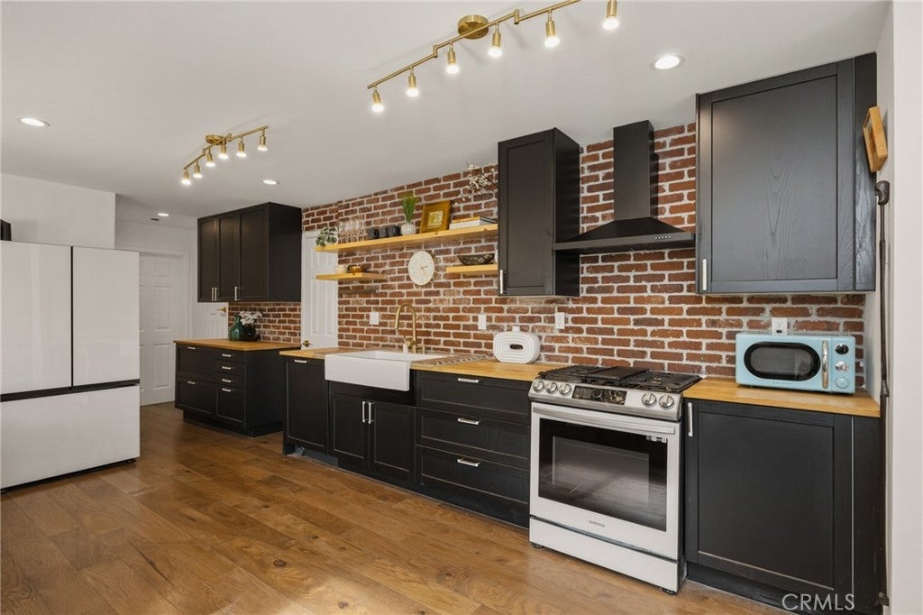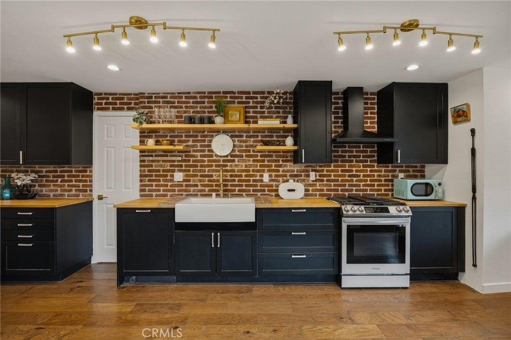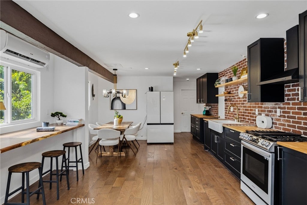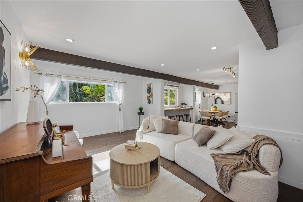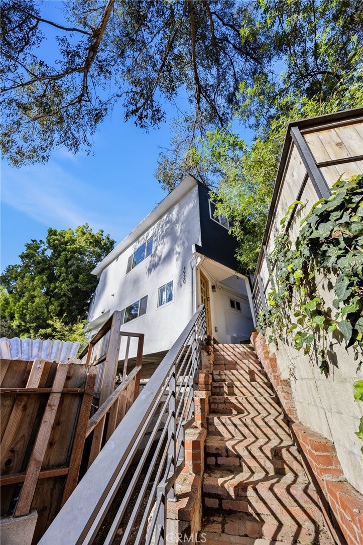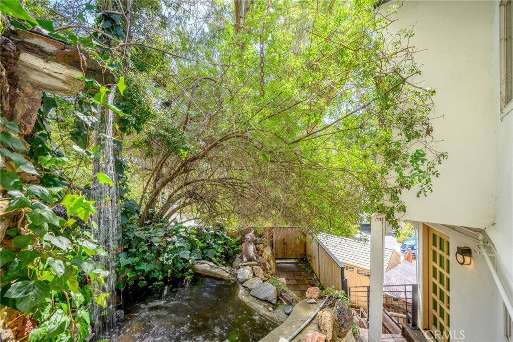This fully remodeled two-story Hollywood Hills home features 3 bedrooms, 3 full bathrooms, two living rooms and three fireplaces in the iconic Laurel Canyon community where you are just a stone’s throw from the vibrant heart of LA, yet hawks fly overhead and deer frolic in the backyards. From floor to ceiling the home has been tastefully remodeled to blend modern finishes with the flare that makes Laurel Canyon so unique. The first floor offers an open floorplan for seamless entertaining between the picturesque brick wall living room and exquisitely designed custom kitchen. Amenities abound on the first floor with two kitchen pantries, a cupboard under the stairs, a full bath, and one of the three bedrooms. As you ascend to the second floor you enter a second living room with tall-beamed ceilings and another fireplace, as well as a custom designed walk-in closet. Down the hall are another full bathroom, laundry room, and two bedrooms including the primary. The primary suite boasts a large walk-in-closet, its own fireplace, and access to the largest of three patios. Two more patios on the terraced hillside, separated by a cascading waterfall and pond, each offer sweeping views of the Kirkwood Bowl, perfect for al fresco dining, reading, or meditating in the unique tranquility that Laurel Canyon offers. Built by a Hollywood silent film star and hub to famed Hollywood entourage over the years, the home is set well back from the street, offering added privacy and includes stairways on each side of the house for convenient access. A short walk to scenic trails right in the Kirkwood Bowl, it’s easy to come home and forget you are still in the heart of LA. Replace the car horns and city noise with nothing but birds singing outside your window. Located within the highly sought-after Wonderland School district.