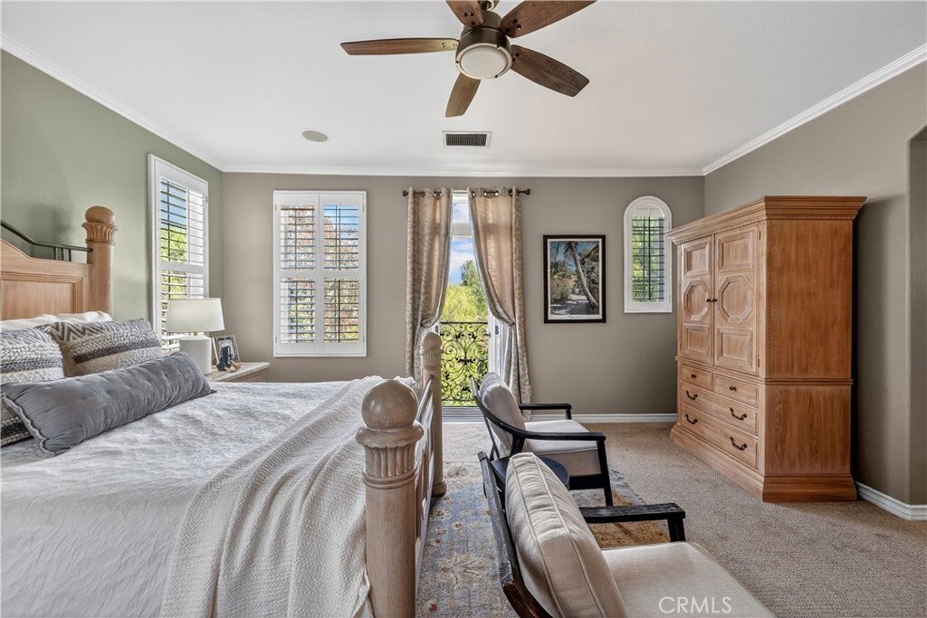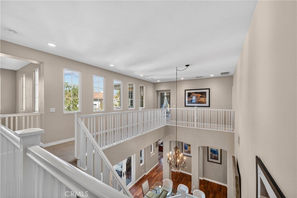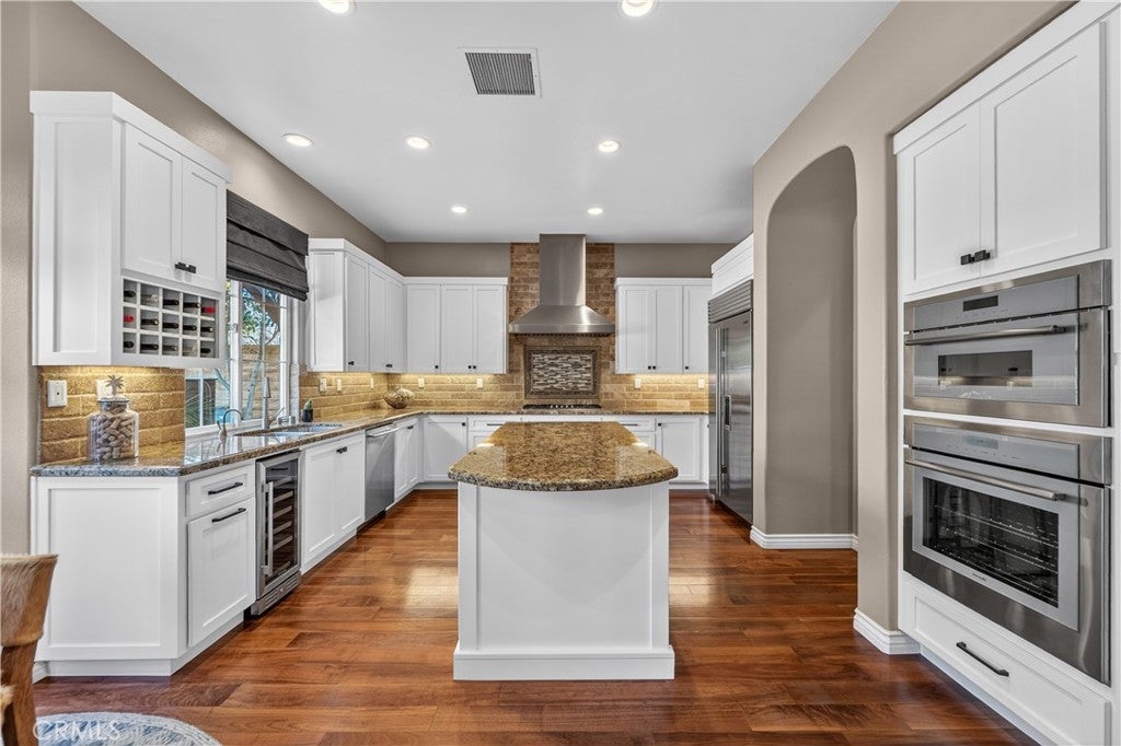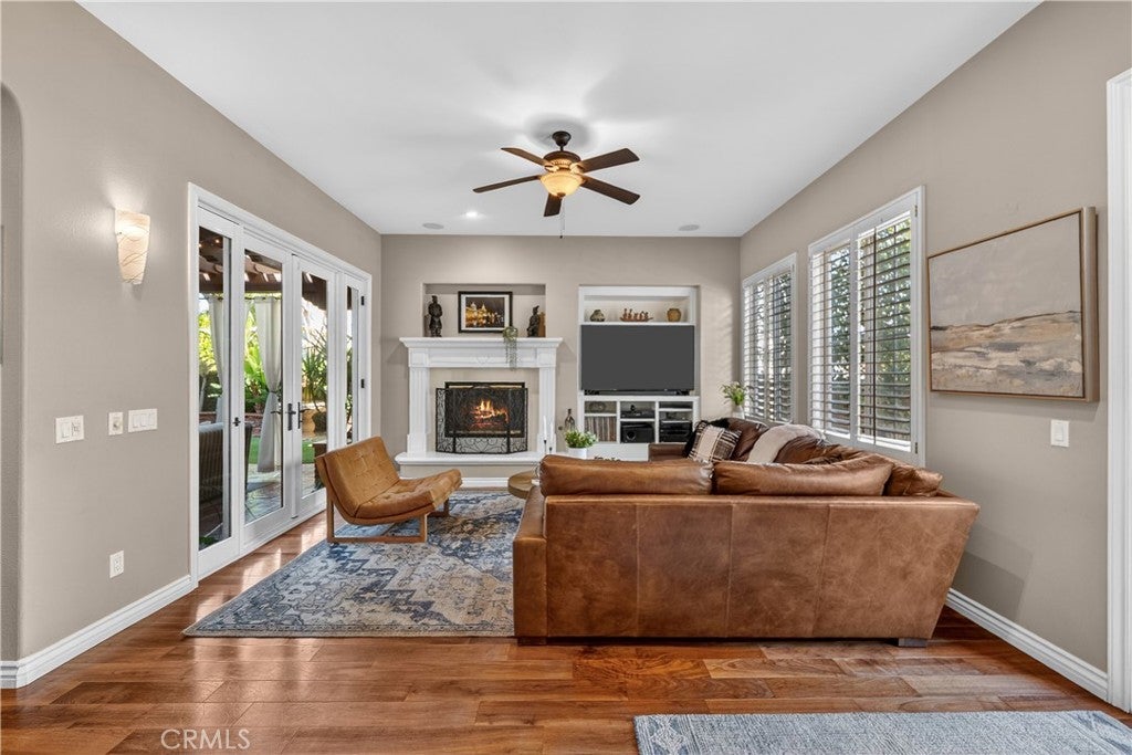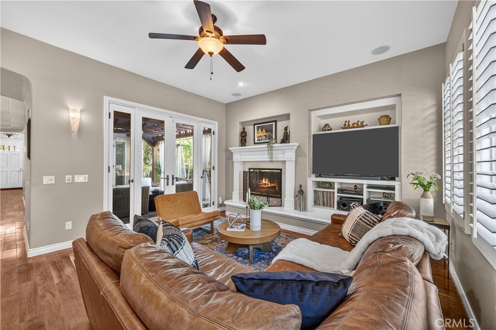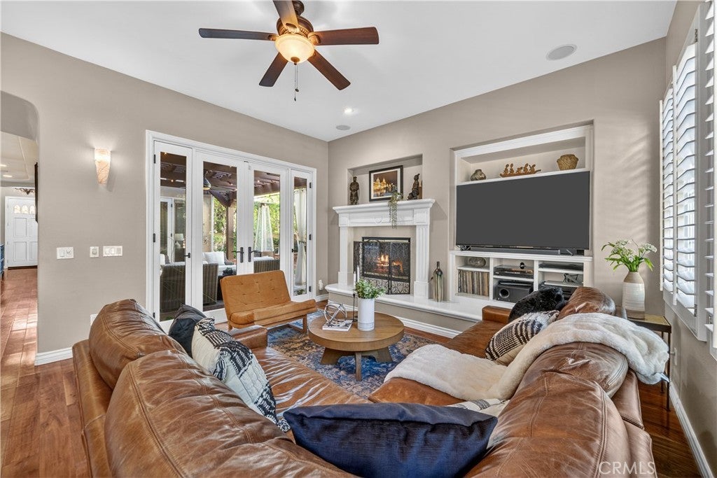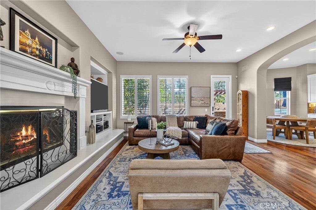 Located in the highly sought-after 24-hour guard-gated Valencia Woodlands community, this move-in ready, beautifully upgraded Garland home offers 4 bedrooms, 3 bathrooms, and 3,367 sq. ft. of light-filled living space. Striking curb appeal and lush landscaping set the tone as you step inside to wood floors, soaring ceilings, brand-new carpet upstairs, and an ideal layout. The updated kitchen features a built-in Sub-Zero refrigerator, Thermador appliances, granite countertops, custom white cabinetry, and a wine refrigerator, opening seamlessly to the family room with a cozy fireplace. Formal living and dining rooms provide elegant spaces for entertaining. Upstairs, all four bedrooms include a spacious primary suite with a large bedroom, expansive bath, and two walk-in closets, along with a generous laundry room and charming balconies. Outdoor living shines with a private courtyard side patio with multiple French door entries—perfect for entertaining—and a backyard complete with low-maintenance turf, an above-ground spa, and a built-in BBQ with seating. Additional highlights include owned solar, a 3-car garage with epoxy floors, an EV charging plug, abundant storage, newer AC units, exterior paint, and a tankless water heater. Enjoy easy freeway access, award-winning schools, nearby dining and shopping, and resort-style community amenities including a pool, spa, tennis, and pickleball courts. Low HOA. No Mello-Roos. This one checks every box—don’t miss it!