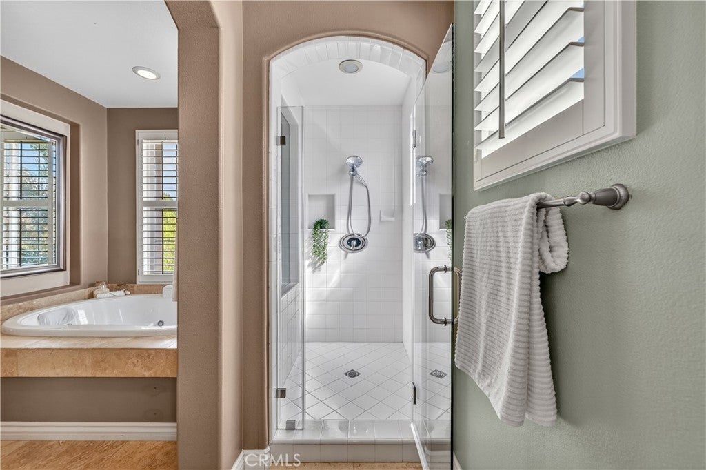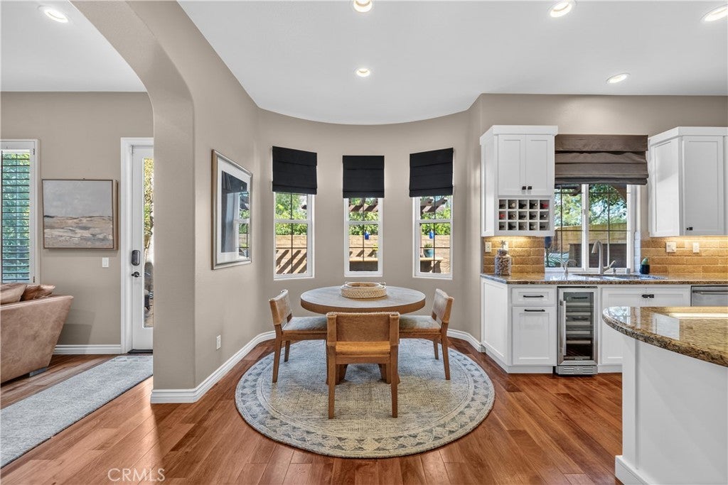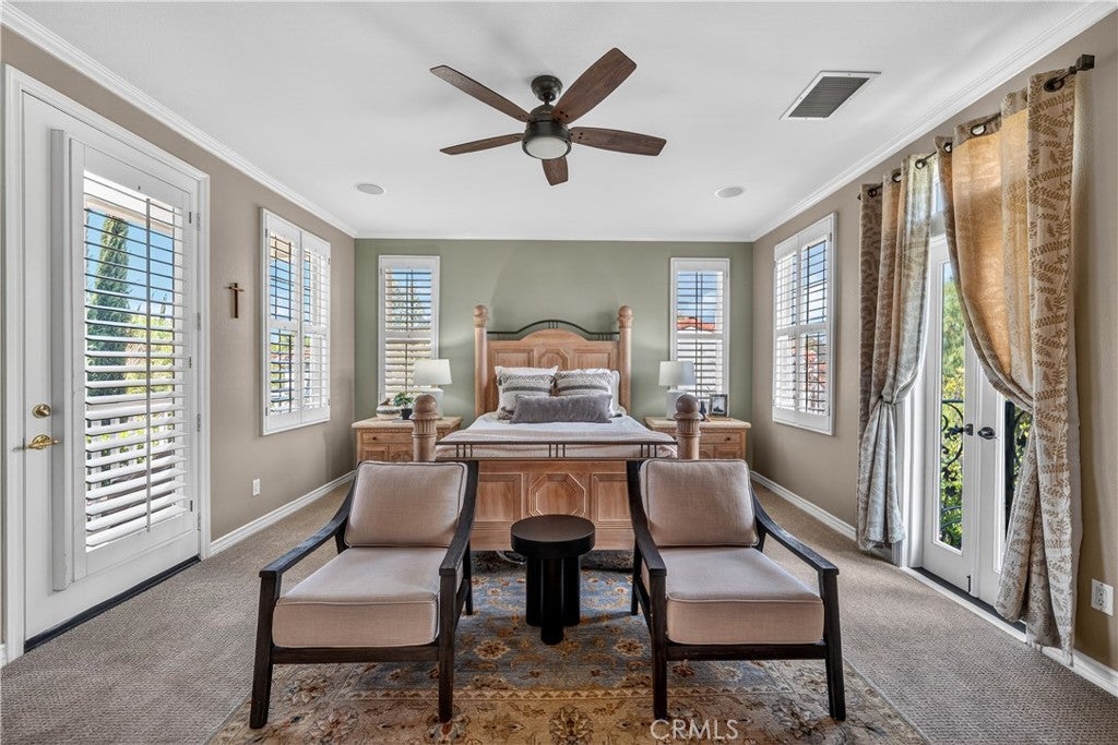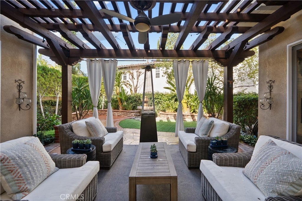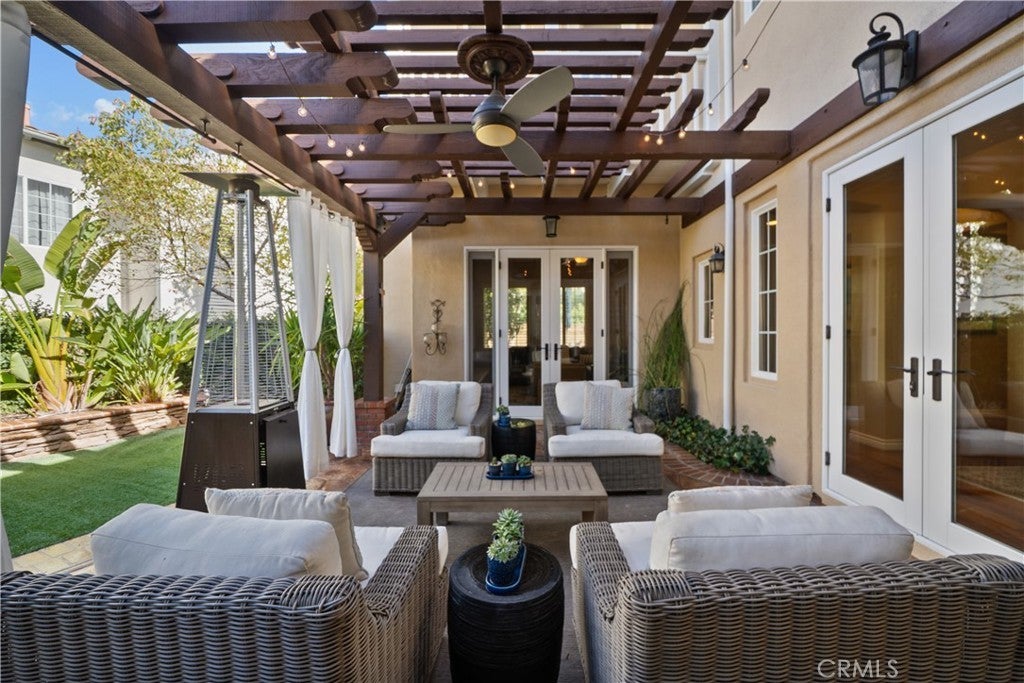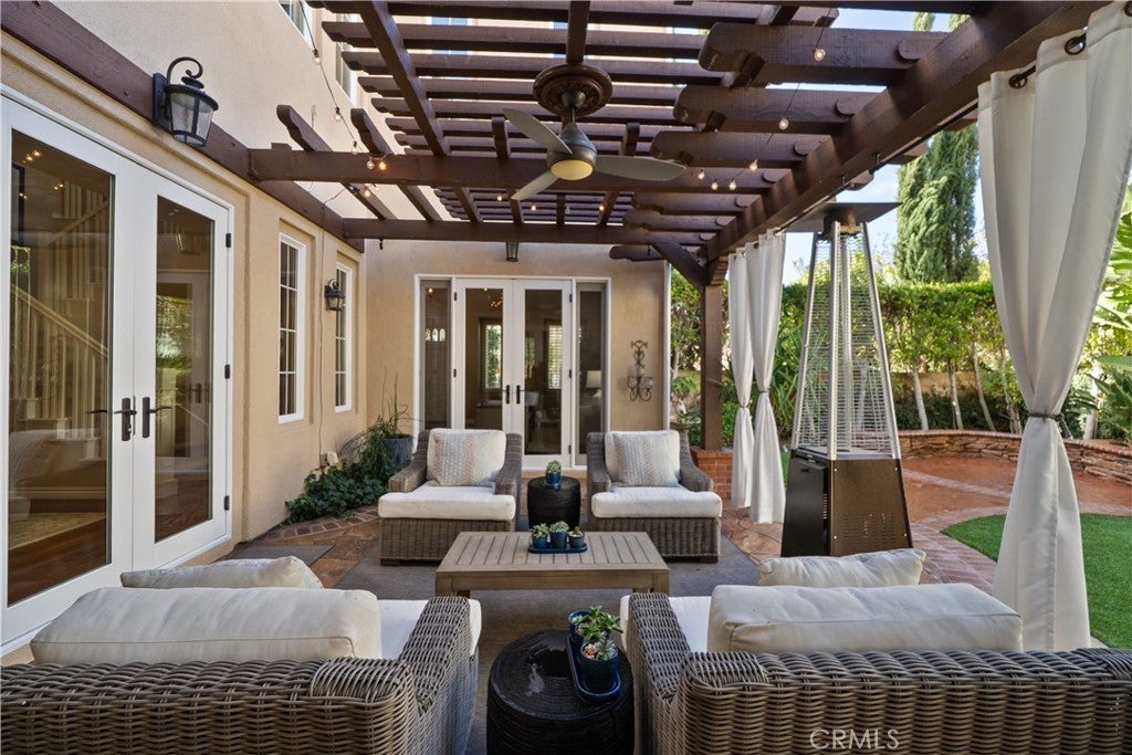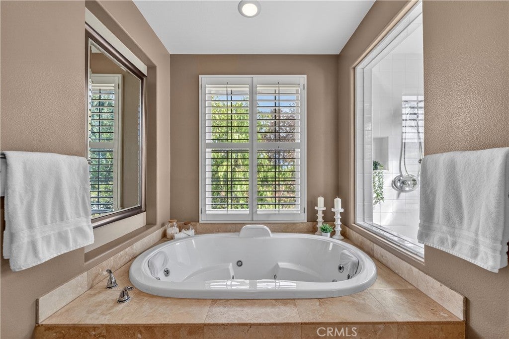 Located in the highly sought-after 24-hour guard-gated Valencia Woodlands community, this move-in ready, beautifully upgraded Garland home offers 4 bedrooms, 3 bathrooms, and 3,367 sq. ft. of light-filled living space. Striking curb appeal and lush landscaping set the tone as you step inside to wood floors, soaring ceilings, brand-new carpet upstairs, and an ideal layout. The updated kitchen features a built-in Sub-Zero refrigerator, Thermador appliances, granite countertops, custom white cabinetry, and a wine refrigerator, opening seamlessly to the family room with a cozy fireplace. Formal living and dining rooms provide elegant spaces for entertaining. Upstairs, all four bedrooms include a spacious primary suite with a large bedroom, expansive bath, and two walk-in closets, along with a generous laundry room and charming balconies. Outdoor living shines with a private courtyard side patio with multiple French door entries—perfect for entertaining—and a backyard complete with low-maintenance turf, an above-ground spa, and a built-in BBQ with seating. Additional highlights include owned solar, a 3-car garage with epoxy floors, an EV charging plug, abundant storage, newer AC units, exterior paint, and a tankless water heater. Enjoy easy freeway access, award-winning schools, nearby dining and shopping, and resort-style community amenities including a pool, spa, tennis, and pickleball courts. Low HOA. No Mello-Roos. This one checks every box—don’t miss it!