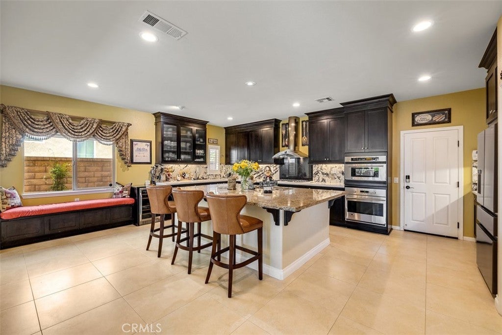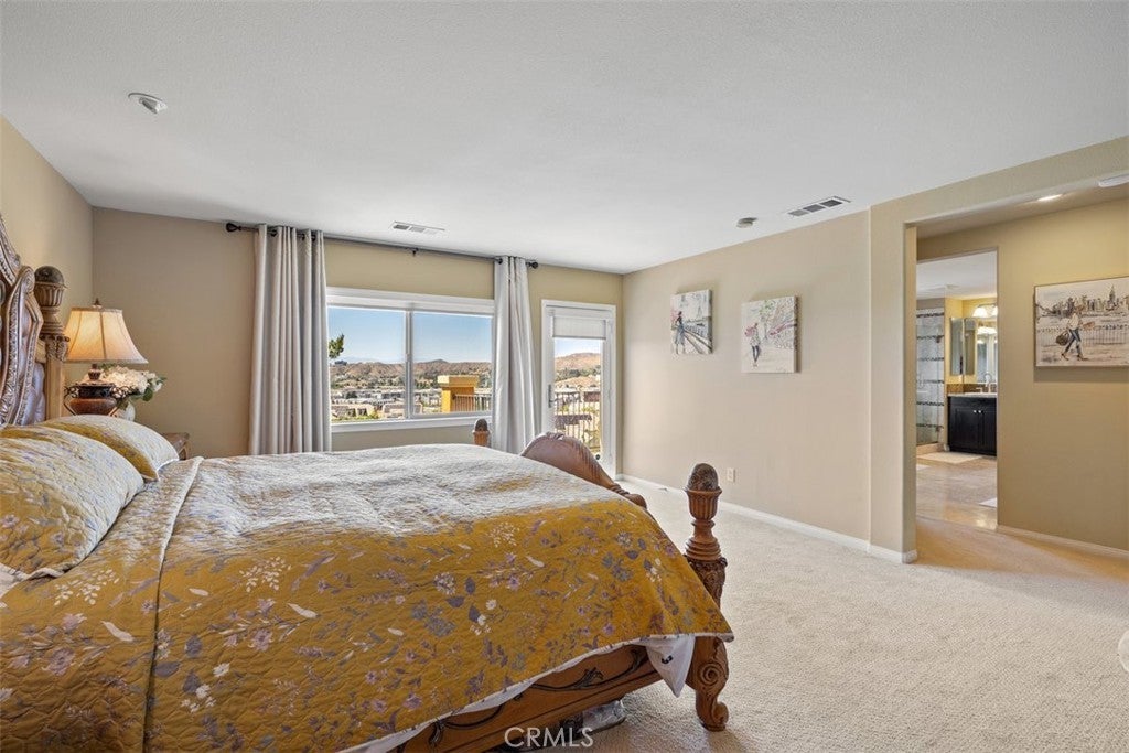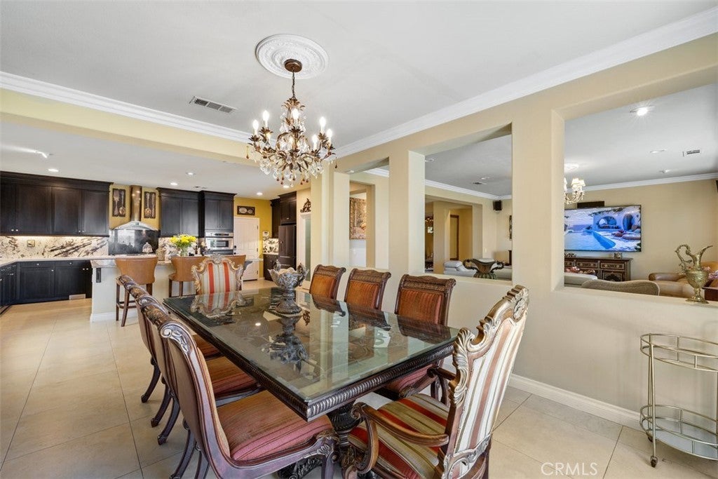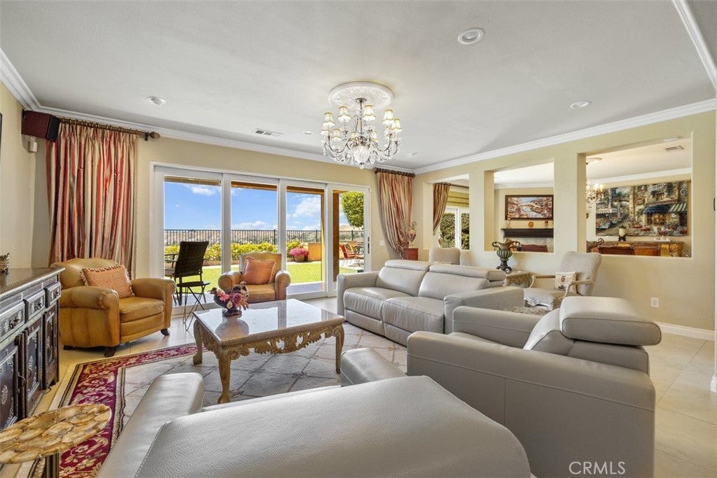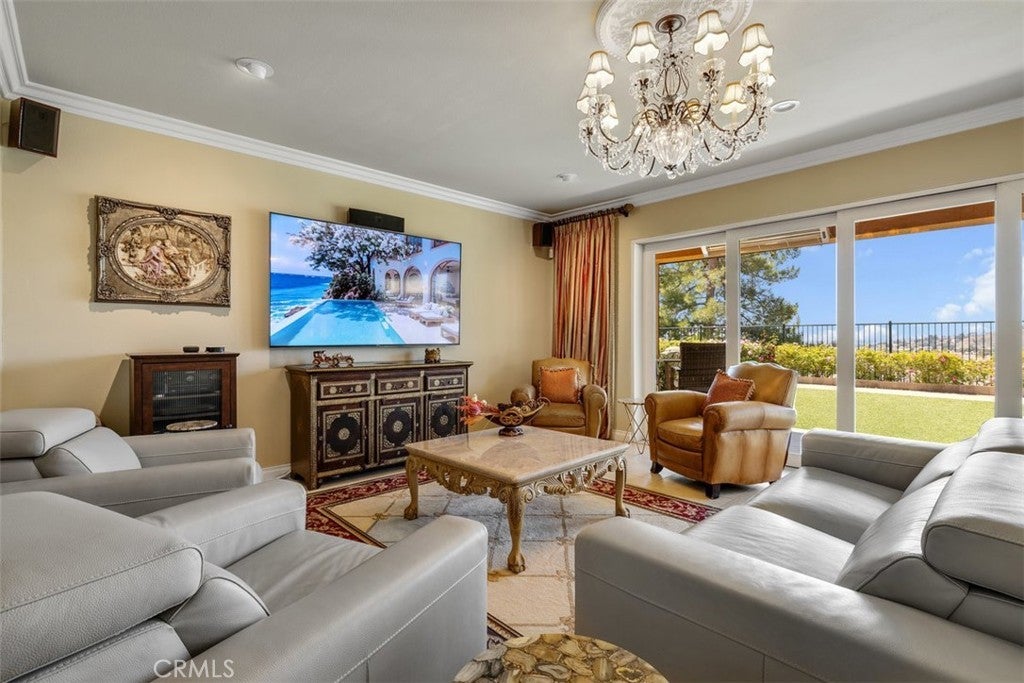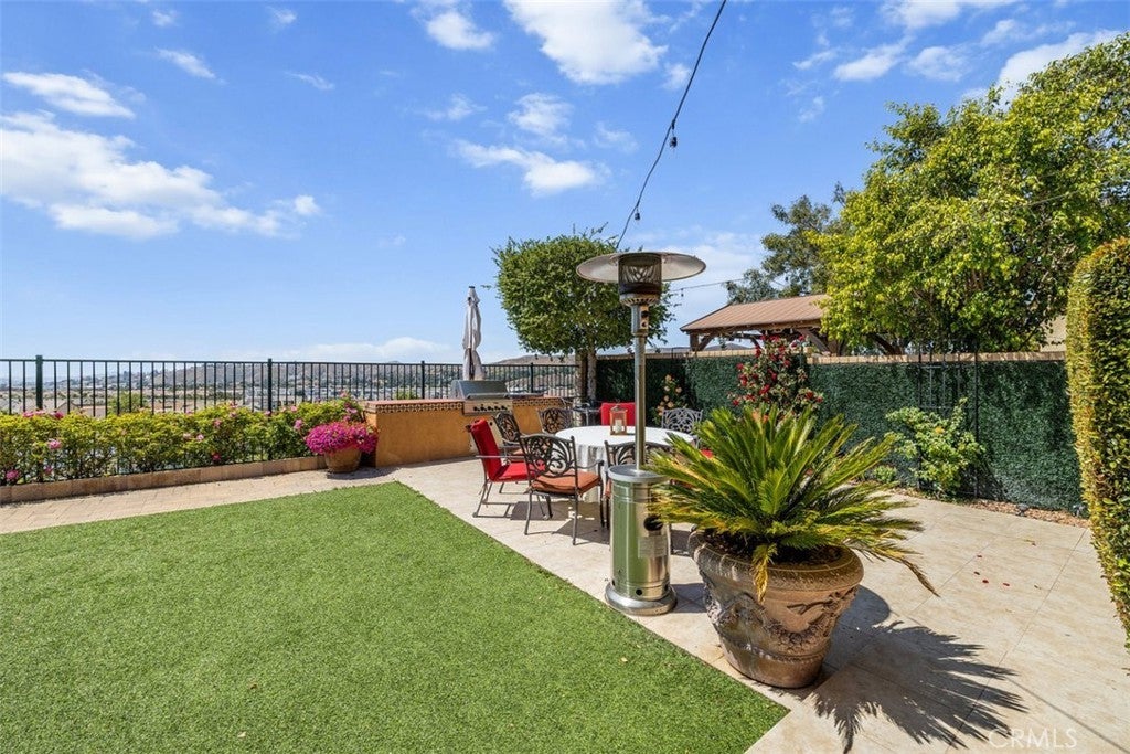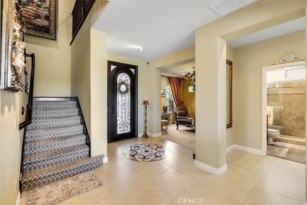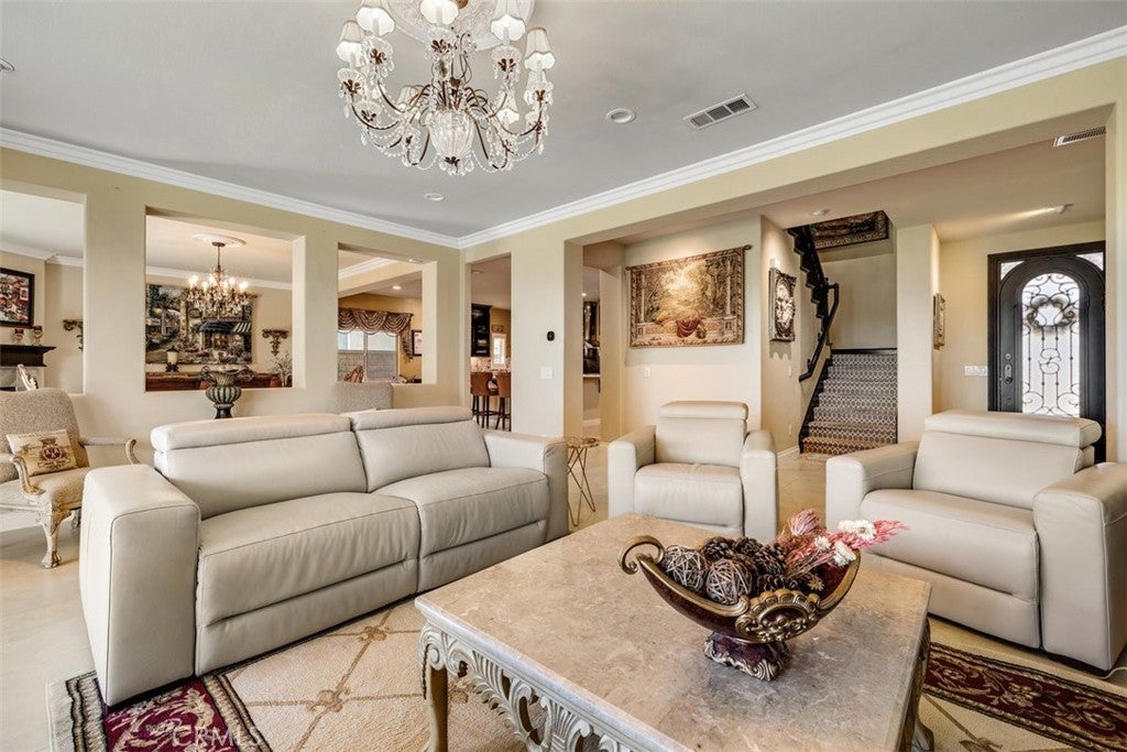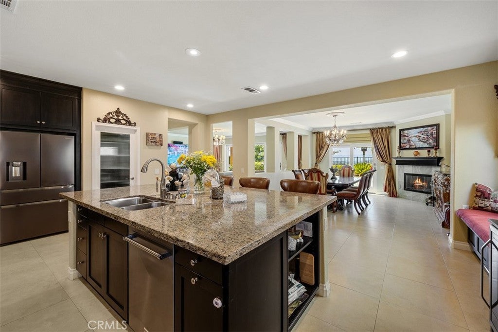 Once a Model, now a Supermodel. Luxury living is elevated in this stunning 5-bedroom, 4-bath home that has gone from model home to absolute supermodel status. Carefully curated for those who crave the perfect blend of function and opulence, every inch of this residence is designed to impress. Step inside through a custom wrought iron front door and be greeted by imported Spanish tile inlay floors and a luminous Schonbek crystal chandelier. The open-concept layout flows into a designer kitchen featuring a dramatic black Galaxy granite backsplash, oversized island, walk-in pantry, and built-in wine fridge—perfect for both daily living and entertaining in style. Serve up gourmet meals in the formal dining room complete with a cozy fireplace. Downstairs offers a private bedroom and full bath, ideal for guests or multi-generational living. Let the outdoors in when you open up 4-panel Fleetwood type glass doors that lead to a raised tile patio and a professionally landscaped low maintenance backyard. Entertain with a custom BBQ and an electric patio sunscreen—all while enjoying panoramic city views. Upstairs, find a spacious in-law suite with a mini kitchenette, a large loft for flexible living, and a laundry room for added convenience. The expansive primary suite includes its own balcony, spa like bath with separate tub and shower, dual vanities and walk in closet. It's your own private retreat above it all. Other premium features include, elegant chandeliers in both the living and dining rooms LED accent lighting for art throughout the downstairs, a 3-car garage and newer custom landscaping. This home isn’t just beautiful—it’s built to impress. From its showstopping finishes to its thoughtful floorplan, it truly is a supermodel in the world of luxury homes.