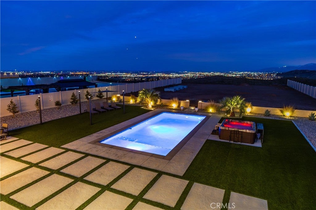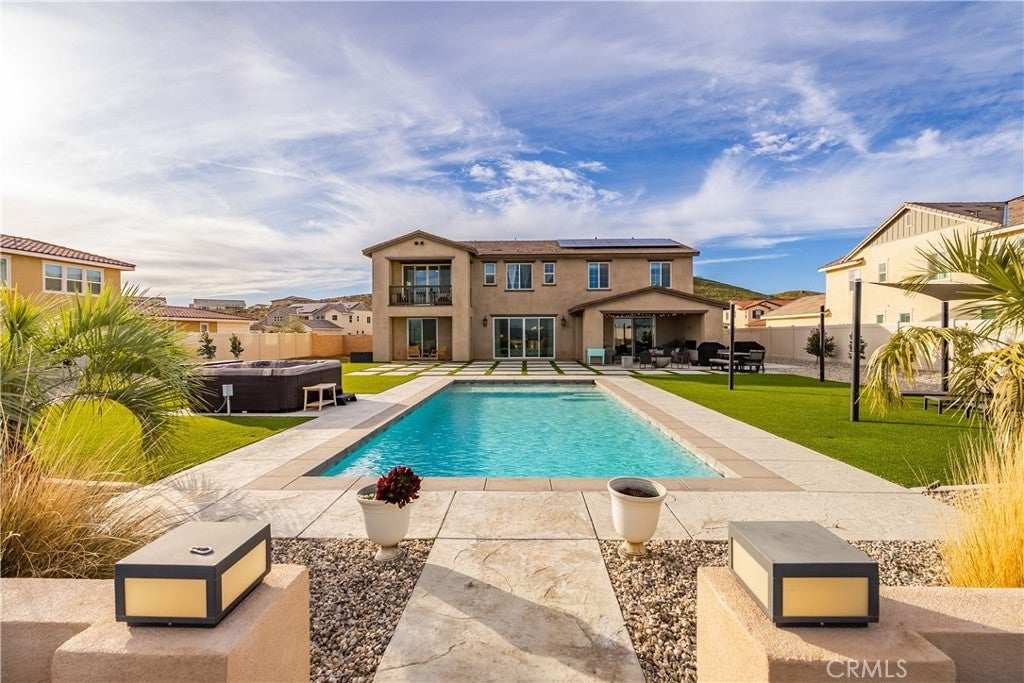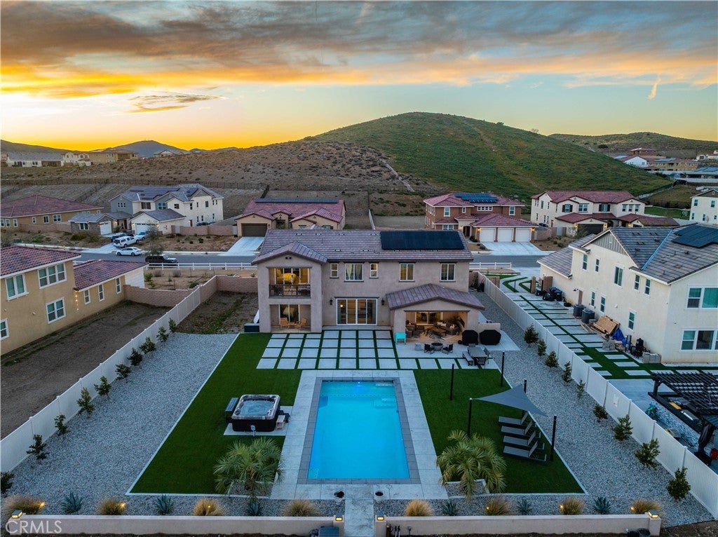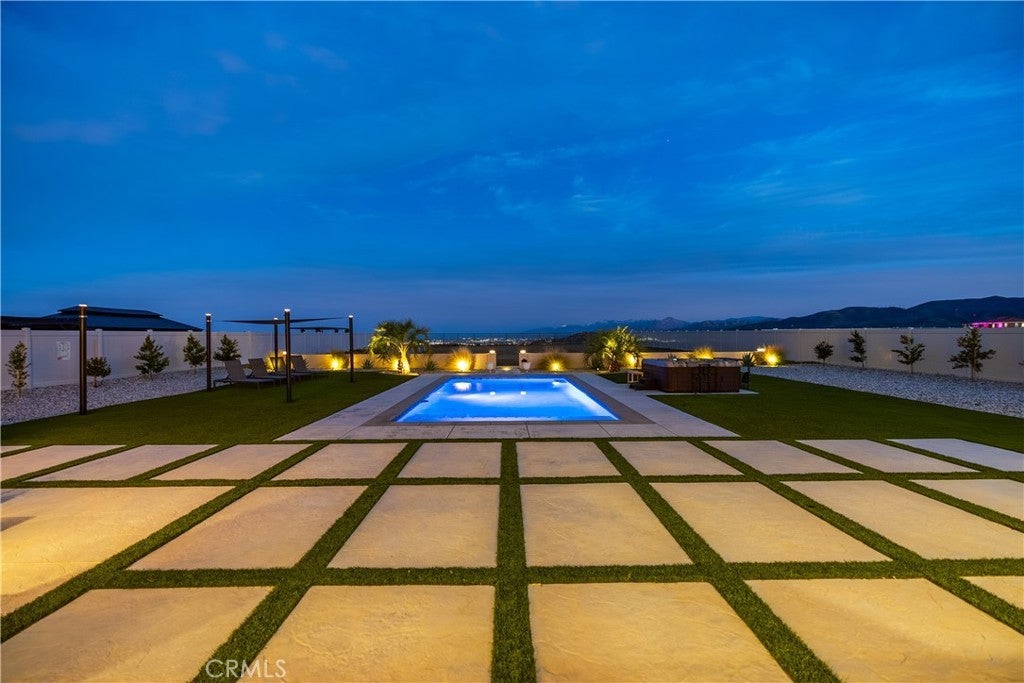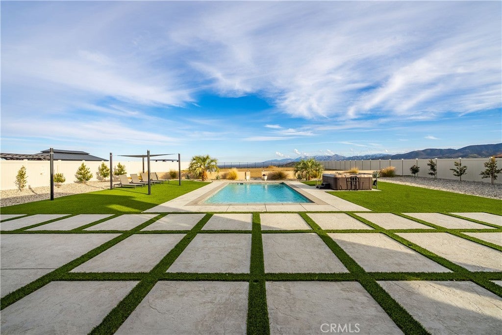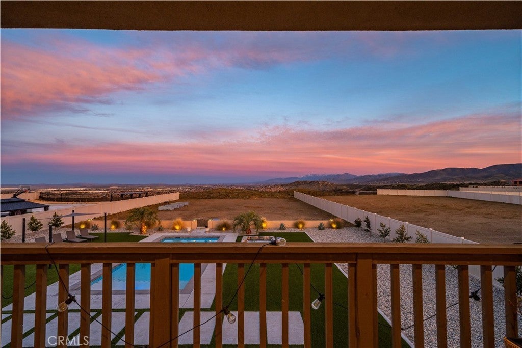 Welcome to an exceptional modern residence offering commanding panoramic views of Antelope Valley. Situated within a private gated community, this property delivers a rare combination of luxury, privacy, and elevated positioning designed to capture the valley's expansive skyline. From sunrise to sunset, the home's orientation provides unobstructed vistas that create a striking yet tranquil backdrop -- ideal for professionals seeking both sophistication and retreat. The elevated lot maximizes sightlines across the valley, offering city lights in the evening and wide-open desert scenery by day. Inside, refined upgrades reflect thoughtful design and quality craftsmanship. Features include upgraded appliances, a full LED lighting package, custom cabinetry in the living room and study, upgraded flooring, premium countertops, and designer tile finishes. Additional enhancements such as pendant lighting, a pot filler, custom closets, and shutters throughout complete the polished interior aesthetic. The outdoor environment is equally impressive. The expansive lot was designed to complement the views while offering resort-style amenities, including a 16x36 in-ground pool and a 9-person Artesian Isla Margarita spa. Whether hosting executive gatherings, family time or enjoying a quiet evening overlooking the valley, the setting provides a seamless blend of relaxation and prestige. Additional highlights: Landscaped front and rear grounds Fully paid solar system Two professionally installed EV charging circuits Oversized premium lot with optimal view orientation This property represents a rare opportunity to own a view-focused luxury home that balances executive-level comfort and entertaining.