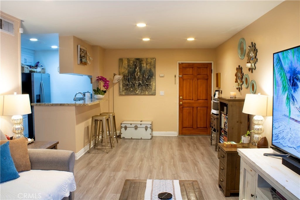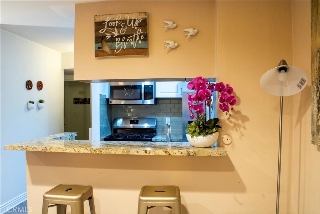 DO NOT MISS this unit in the popular resort-style GATED California Place complex in a very desirable area of Tarzana, freeway close and not far from Ventura Blvd, where shopping, dining and entertainment are in abundance. This darling first floor home is ideally located within the complex, and has an excellent floorplan, with pleasant relaxing space out on the private patio. The kitchen has gorgeous countertops, and NEW stainless steel refrigerator, dishwasher & microwave. The full bathroom has been updated, and the bedroom is quite ample, with even more storage in the hallway closet. There's a dedicated parking space, with a gated entrance. The community's many amenities, several renovated in March 2023, include a pool, spa, and huge BBQ area. A beautiful two story clubhouse has a billiard table upstairs, and a kitchen, sauna, & gym to enjoy. If you're looking for a quality Tarzana condo community at a wonderful price and reasonable HOA fees, here it is!