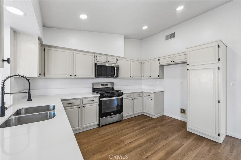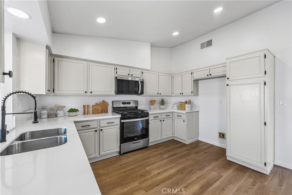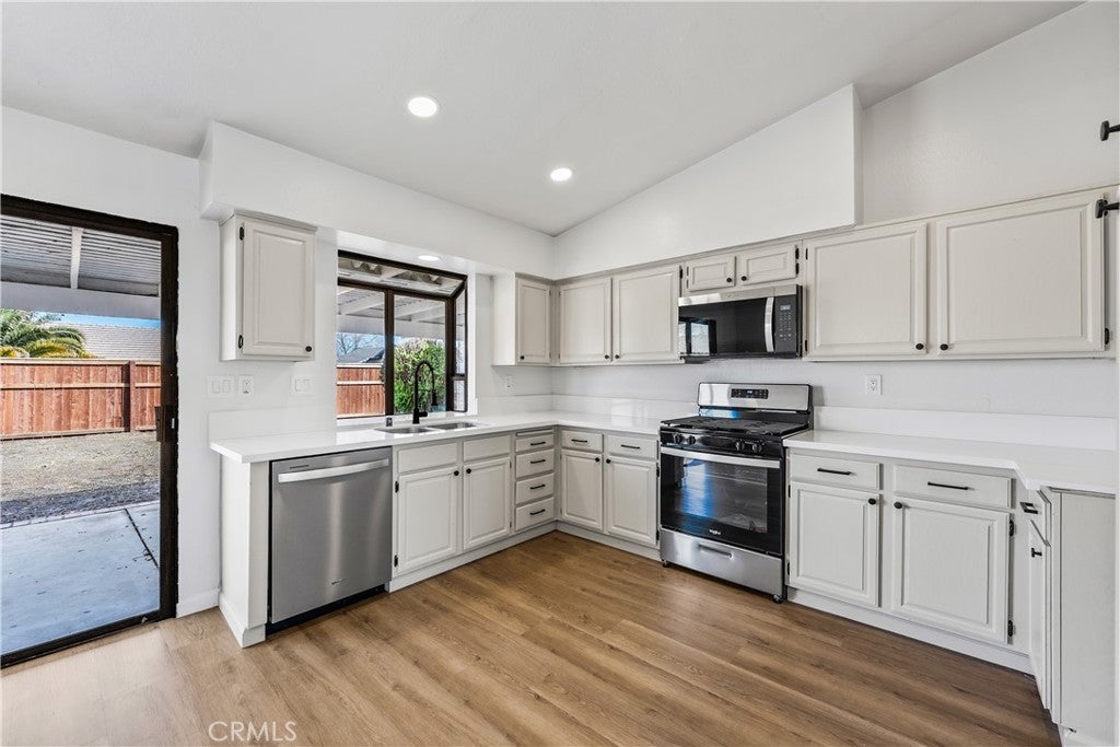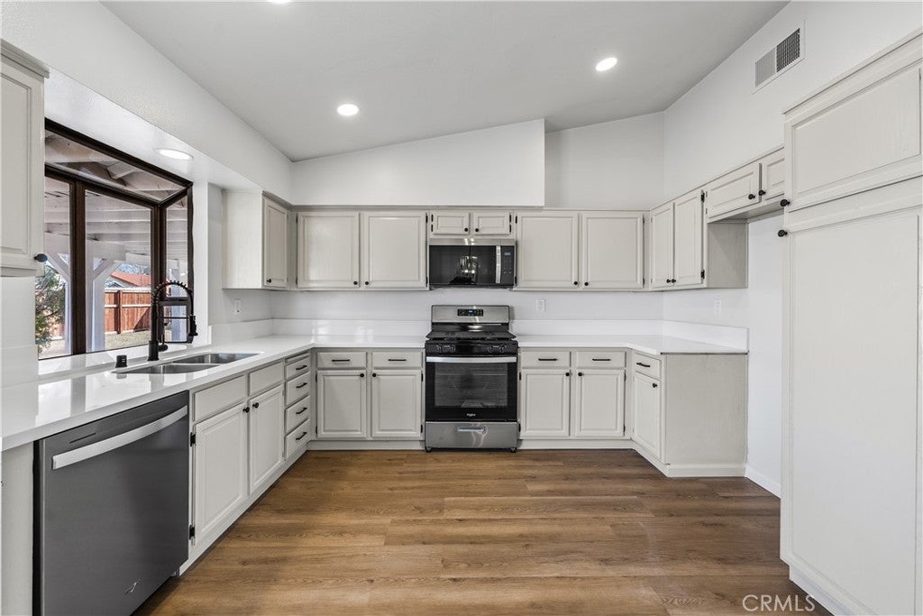 This BEAUTIFUL West Palmdale single story is situated on a CORNER lot and has been renovated from top to bottom! Great curb appeal with fresh low maintenance landscaping and a modern design. 4 Bedrooms, 2 full baths and a 3 car garage! The family room has a vaulted ceiling and a cozy brick fireplace. The kitchen offers quartz countertops, stainless steel appliances and refurbished cabinets. New flooring and baseboards throughout. New plumbing and electrical fixtures PLUS fresh interior and exterior paint. Large backyard with a full length covered patio. Highly desirable West Palmdale neighborhood conveniently close to great schools, restaurants, the Antelope Valley Mall and Marie Kerr Park!