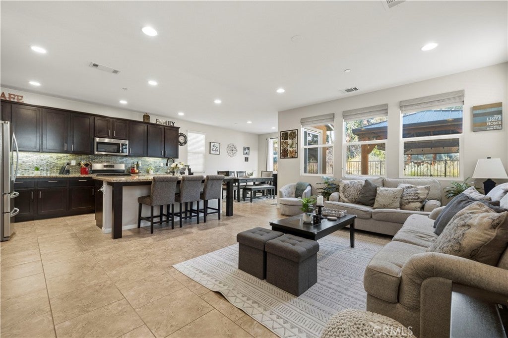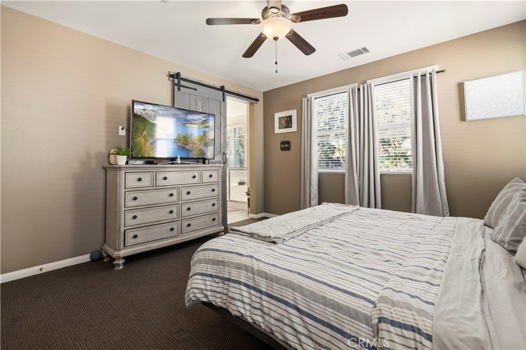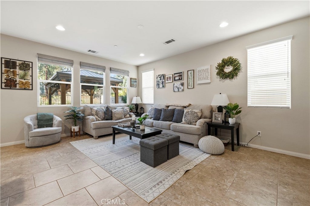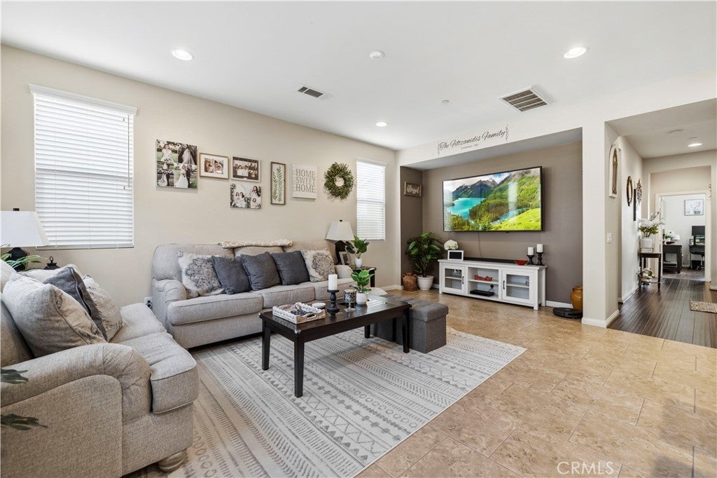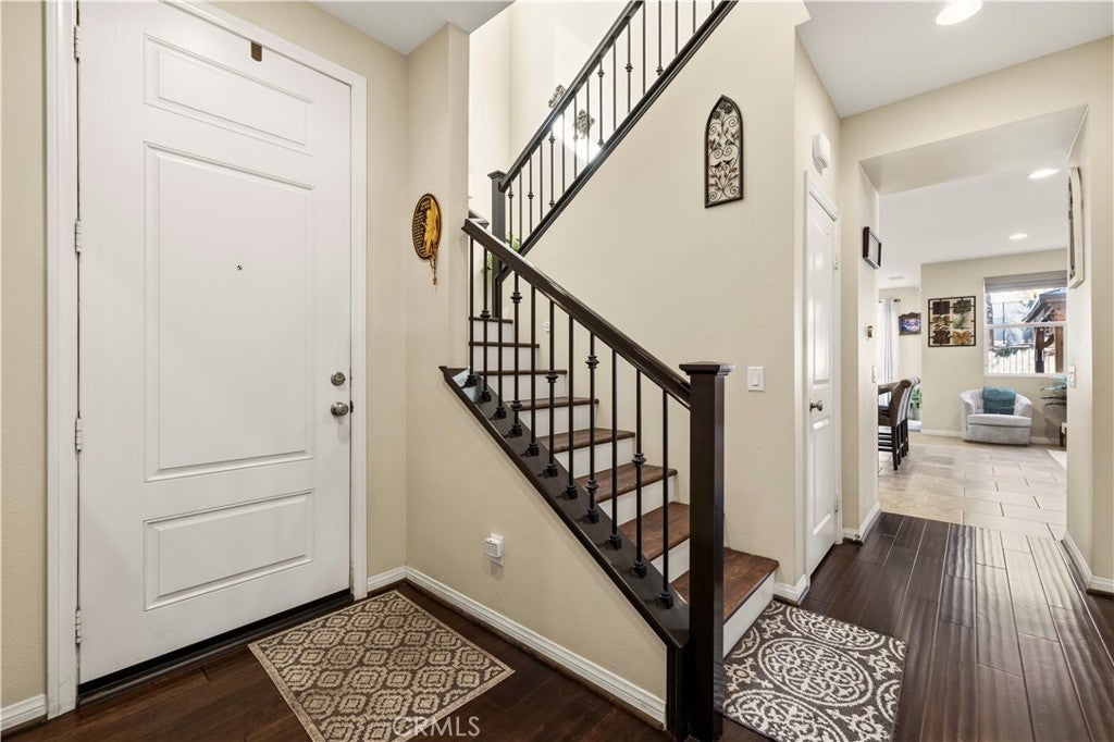 Welcome to 26935 Trestles Drive in the heart of Santa Clarita, located inside a desirable gated community and offering one of the rare full driveways in the neighborhood — allowing for valuable additional parking space. This beautiful 4-bedroom, 3-bathroom home features a highly functional floor plan with a full bedroom and full bathroom downstairs — ideal for guests, extended family, or a private home office. Upon entry, you’re greeted by rich wood flooring that flows seamlessly through the entryway, kitchen, family room, and dining area, creating a warm and inviting atmosphere. The downstairs bedroom features durable vinyl flooring for easy maintenance. The spacious kitchen is the heart of the home, offering granite countertops, an oversized center island perfect for entertaining, a full utility sink, and stainless steel appliances — blending style and functionality for everyday living. Upstairs, vinyl wood-like flooring extends through the hallway leading to all bedrooms. The bedrooms feature upgraded carpet in pristine condition, providing comfort and a true move-in ready feel. The convenient upstairs laundry room offers abundant storage space. The hall bathroom includes a dual-sink vanity and a shower/tub combination. All bedrooms — including the primary suite — are equipped with ceiling fans for added comfort. The primary suite is a true retreat, featuring warm, calming tones that invite relaxation. A custom-built barn door separates the bedroom from the en-suite bath, adding both charm and privacy — perfect for the early riser and the late sleeper. The primary bathroom offers dual sinks, a separate soaking tub, and a walk-in shower. Step outside to a private, low-maintenance backyard with no rear neighbors — offering added privacy and peaceful views. The gazebo will remain, creating the perfect outdoor space for relaxing or entertaining. Additional highlights include solar panels that will be paid off in full at closing, providing energy efficiency and long-term savings. This home truly checks all the boxes — gated community, rare driveway, privacy, solar, and a thoughtful floor plan. Don’t wait — this is the perfect opportunity for your next buyer to call home.
