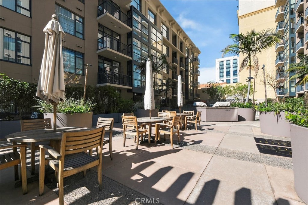 Live in the heart of San Diego’s iconic Gaslamp Quarter at Trellis, just steps from Petco Park. This beautifully furnished, turnkey end-unit studio offers approximately 430 square feet of efficient open-concept living plus a rare and expansive 205 sq ft private patio, one of the largest outdoor spaces available among downtown studios. Functioning as a true extension of the living area, the patio is ideal for outdoor dining, lounging, working from home, or enjoying San Diego evenings with vibrant city energy just beyond your door. Designed for comfort and convenience, the residence features granite countertops, stainless steel appliances, central heating and air conditioning, and an in-unit washer and dryer. The flexible, fully furnished setup includes modern furnishings, Smart TV, full kitchen essentials, and outdoor beach accessories, offering a seamless move-in or investment-ready opportunity. A secured subterranean parking space is included, an exceptional advantage in downtown living. This private end-unit location provides added tranquility along with direct walk-out access to Trellis’ premier amenities, including a 24-hour fitness center, BBQ terrace, courtyard lounge areas, secured entry, package lockers, and on-site management. Ideally situated within walking distance to the Convention Center, Seaport Village, Little Italy, the harbor, Rady Shell, trolley lines, and the train station, this home places the very best of downtown San Diego at your doorstep. Ideal as a primary residence, vacation retreat, or investment opportunity in one of San Diego’s most walkable and sought-after neighborhoods.