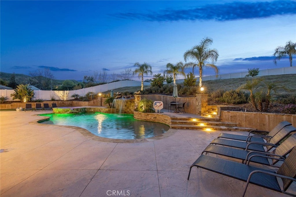 The highly esteemed Hasley Estates is known to Santa Clarita locals as one of the area's hidden gems! Just minutes to Valencia Town Center, this serene bedroom Community of A22 zoned horse property features sprawling estates on expansive lots with privacy, RV parking, ADU and workshop friendly living! 30177 Sagecrest Way boasts amenities the most discerning home buyers seek and more! Centered on a nearly 3/4 acre corner lot with privacy vinyl fencing, beautiful landscaping, breathtaking POOL with dramatic stone waterfall, resort like SPA, 4-CAR GARAGE, covered dog run, tons of grass area to enjoy, huge solid covered patio with wall mounted TV, built in BBQ, fruit trees, FULL SIZE GATED RV PARKING complete with 220v connections and sewer clean out! This is where serene neighborhood charm meets elevated resort-style living, all framed by exceptional curb appeal that reflects true pride of ownership. Step inside to discover timeless features such as wide plank flooring and custom stained hardwood finishes that emanate warmth and sophistication! The elegant and inviting formal living room flows seamlessly into the heart of the home, a beautifully designed chef’s kitchen complete with stunning granite countertops, convenient center island, upgraded stainless steel appliances, designer backsplash and custom built-in bar with wine fridge and refined finishes, creating the perfect setting for effortless entertaining while looking out to the stunning waterfall through dual french doors! The adjacent family room, adorned with lovely hearth and gas fireplace offers a comfortable gathering space for everyday living! The convenient indoor laundry is located on the main level along with a FULL DOWNSTAIRS BEDROOM And BATH ideal for guests or multigenerational living. Upstairs, 5 additional private bedrooms offer generous space, namely the expansive primary suite complete with walk-in closet with custom built ins and spa-like bathroom, seated vanity, soaking tub plus separate shower and overlooks tranquil hillside views! The 4 additional upstairs bedrooms offer 2 en suite bed/baths and 2 more share the lovely hall bath all with timeless finishes and upgraded flooring! This home also is energy efficient with solar panels! For those with an adventurous spirit, the property includes RV parking & abundant space for storing your boat, jet skis, or ATVs, perfect for weekends at nearby Castaic Lake or Pyramid Lake! This is a home & a lifestyle you will enjoy for years to come!