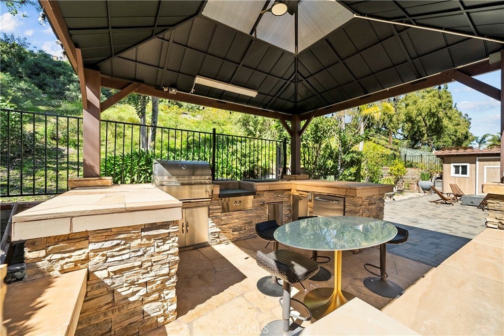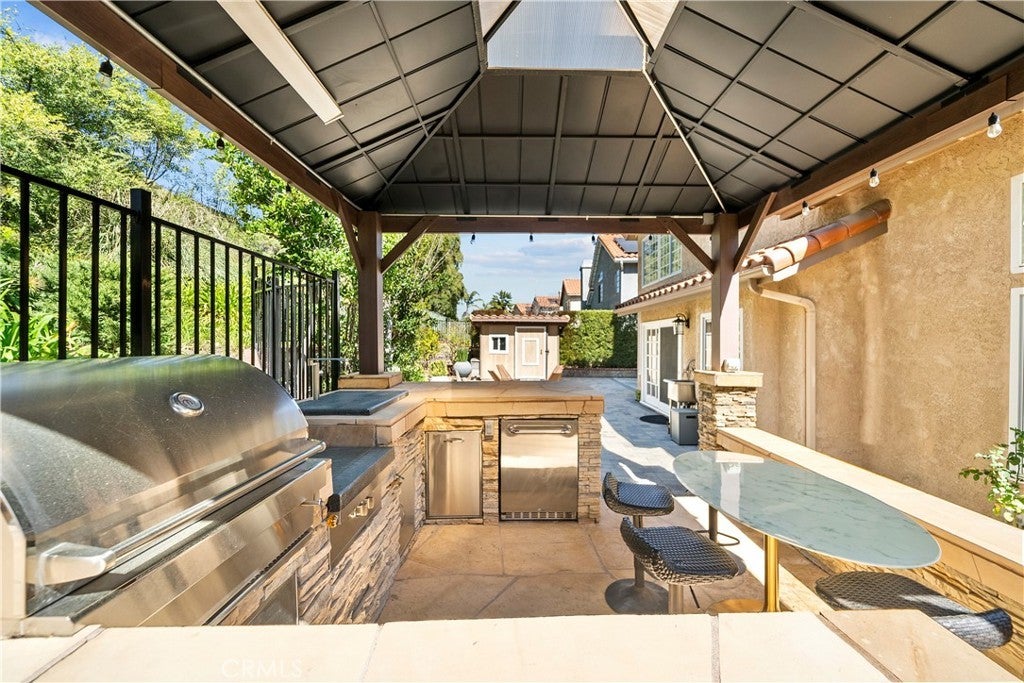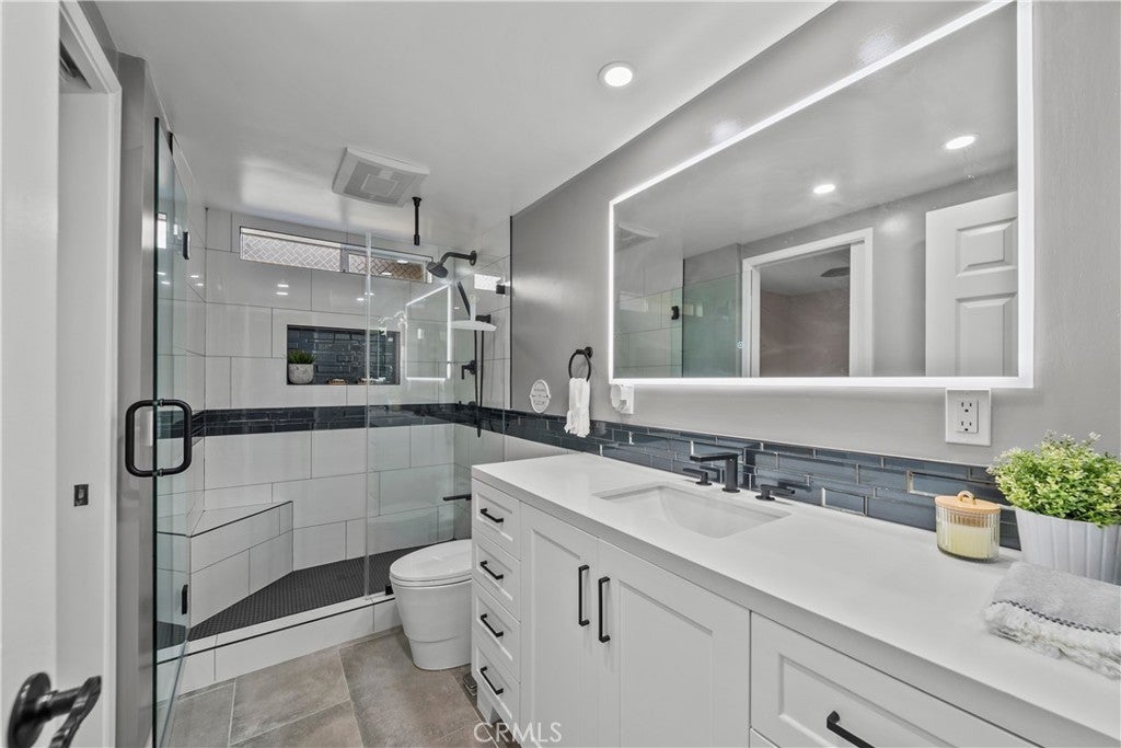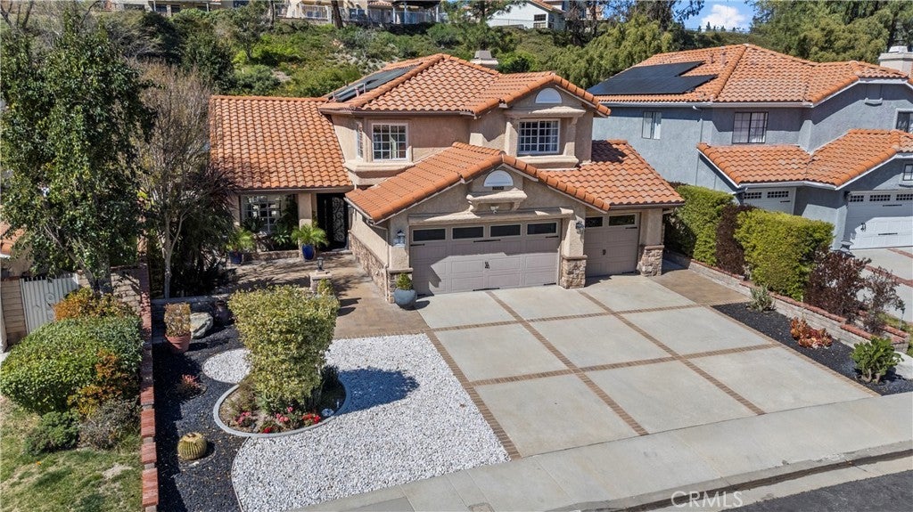 Stunning upgraded home with paid solar, a 3-car garage, and no HOA or Mello-Roos in the highly sought-after Sunset Point neighborhood of Stevenson Ranch. This 4-bedroom, 3-bath residence blends comfort, style, and exceptional indoor-outdoor living just minutes from the 5 Freeway, shopping, dining, parks, and top-rated schools. Step inside to a bright, thoughtfully designed floor plan featuring a desirable downstairs bedroom and fully remodeled bathroom, ideal for guests or multigenerational living. The home showcases numerous upgrades throughout including a newer skylight, enhanced fireplace, and a spacious kitchen with abundant counter space, storage, and recessed lighting. Upstairs, a beautiful wood staircase leads to a versatile loft perfect for a media room, office, or play space. The luxurious primary suite offers a spa-inspired remodeled bathroom with a Victoria & Albert soaking tub, walk-in shower with seating, custom walk-in closet, and elegant wood-look tile flooring. Two additional bedrooms with engineered hardwood floors and ceiling fans share a remodeled Jack-and-Jill bathroom with modern finishes. The resort-style backyard is built for entertaining with lush landscaping on a drip system, designer outdoor lighting, gazebo, built-in firepit, and a custom charcoal BBQ station featuring a high-BTU cooktop, farmhouse sink, bar seating, and storage. There’s also extra yard space, a separate stainless steel gardening sink, and a large side yard with storage shed. Pavers in the front and back yard for low maintenance. Additional highlights include insulated garage doors, abundant storage, paid solar with newer inverter, upgraded AC motor, and water softener connection. Homes with this level of upgrades, outdoor living, and no HOA in Stevenson Ranch rarely become available.
