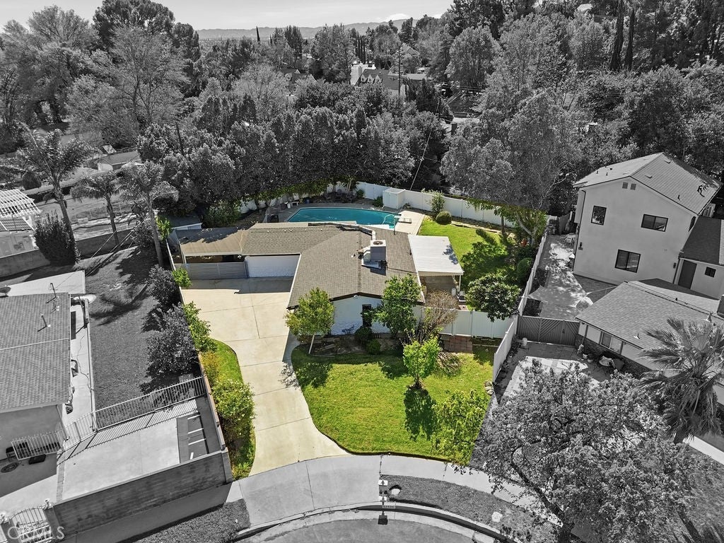Welcome to this amazing opportunity—tucked away on a quiet cul-de-sac, this Granada Hills home sits on a rare 12,000+ square-foot lot with a private pool, offering space, privacy, and endless potential. The main residence features 3 bedrooms and 2 bathrooms, plus a bonus 350 sqft. Junior ADU, with the garage converted into a 4th bedroom, providing flexibility for extended family, guests, or potential rental use. The property showcases freshly painted interior and exterior, vaulted ceilings, and beautiful natural light throughout, creating a bright and inviting atmosphere. Outdoors, enjoy lush green grass, a spacious dual side yard, and an oversized driveway, with additional potential to add another ADU (buyer to verify). Conveniently located east of Balboa and north of Rinaldi, near major freeways and belonging to one of the top-rated charter school communities in California, this home offers a rare combination of lot size, lifestyle, and long-term value—perfect for relaxed family living and year-round enjoyment!