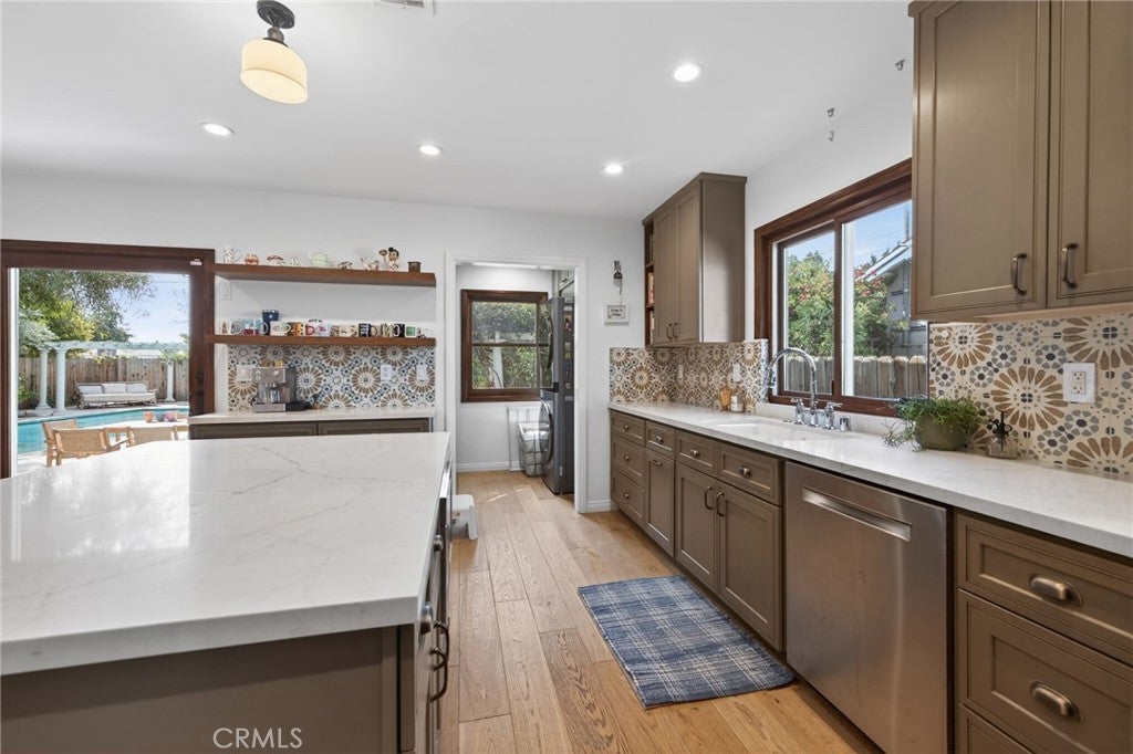 This charming property offers exceptional appeal, beginning with its quiet cul-de-sac location in the heart of Northridge. Featuring a flexible four-bedroom floor plan, the home includes a spacious yard with an oversized, newly-replastered pool that serves as a private and peaceful outdoor retreat.Inside, the residence offers four bedrooms and three baths. The first floor includes a primary suite, a secondary bedroom, and a beautifully remodeled full bath that also functions as a powder room. The recently renovated kitchen serves as the centerpiece of the home, showcasing an island, coffee station, abundant storage, upgraded appliances, stone countertops, and a large eat-in area. A bright laundry room with additional storage is conveniently located just off the kitchen. The living room features a fireplace and classic double-hung windows, as well as an additional space that could serve as a formal dining room or playroom. Upstairs, two generous bedrooms and a three-quarter bath provide excellent flexibility—ideal for teens, guests, or dedicated office space. Notable upgrades include a split ac system upstairs, newer appliances, remodeled kitchen and baths, sewer line replacement, all newer windows and doors, white oak flooring, newer HVAC, dual water heaters, updated electrical panel, new pool pump, improved attic insulation, and more. Warm, inviting, and meticulously maintained, this home is the perfect place to begin your summer.