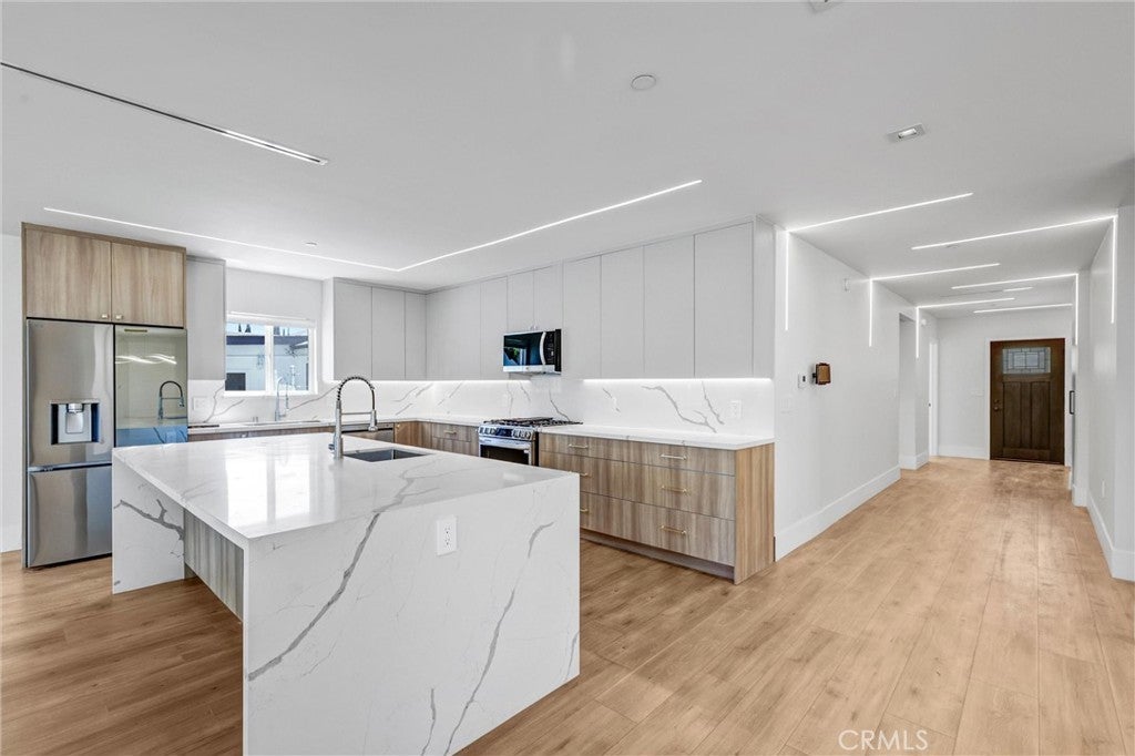 Fully reimagined in 2025, this exceptional property offers rare flexibility in one of the area’s most desirable neighborhoods — set on a quiet, beautiful street with pride of ownership throughout. Whether you’re seeking a primary residence with income potential, a multi-generational living solution, or a fully leased investment with strong cash flow, this home delivers. The property features a stunning 3-bedroom, 2-bath main residence plus a private 1-bedroom, 1-bath ADU — offering multiple ways to live and invest. Live in the main home and offset your mortgage by renting the ADU. Lease both residences for immediate income potential of approximately $7,900 per month. Or create a private compound for extended family, guests, or a dedicated home office retreat. The primary residence is designed for modern living, showcasing a bright open-concept layout filled with natural light. The chef’s kitchen centers around an oversized island with custom cabinetry and premium stainless steel appliances. The spacious living room features a statement fireplace and oversized windows, with double doors opening to a private backyard deck surrounded by mature landscaping — creating seamless indoor-outdoor flow ideal for both everyday living and entertaining. High-end upgrades throughout include smart home integration, security camera system, premium audio, custom lighting, wide hallways, generously sized bedrooms, and a dedicated laundry area. The curb appeal is polished and welcoming, framed by lush greenery. The attached ADU offers its own private entrance and gated yard space, providing independence and privacy. Finished to the same high standard, it includes stainless steel appliances, gas range, dishwasher, in-unit washer and dryer, energy-efficient windows, surround sound speakers, security system, and separate heating and cooling. Beautifully renovated and thoughtfully upgraded, this property offers exceptional versatility, strong income potential, and a prime location on a quiet street in a highly desirable neighborhood.