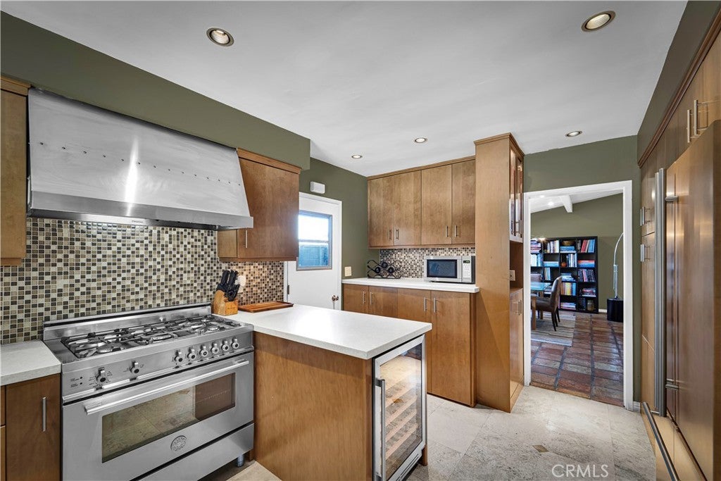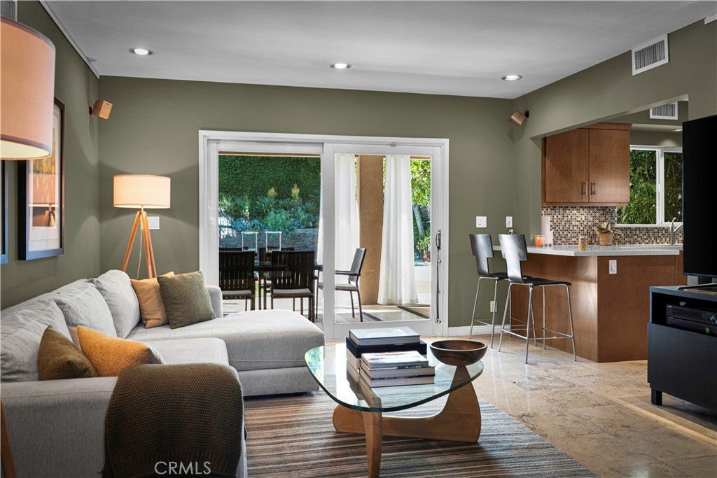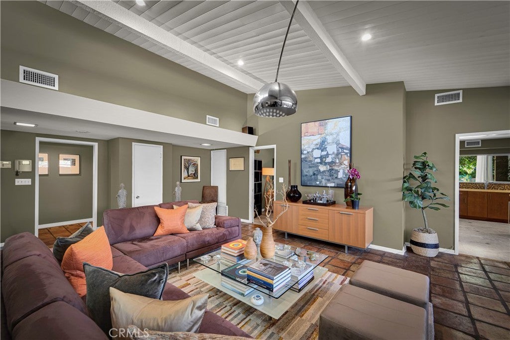 6119 Mary Ellen is all about clean Mid-Century Modern vibes beginning with the clerestory windows - the hallmark of MCM architecture. Upon entering the 4 bedroom 2 bath 2,046 sqft pool home, these windows allow light to flood the living/dining room while maintaining privacy. Dine by the window wall that looks out upon the serene side yard garden with custom stacked stone wall. The living room and dining area feature a vaulted, beamed tongue and groove ceiling and earthy tile floors. The updated kitchen boasts flat-panel cabinetry, under cabinet lighting, NEW dishwasher, quartz countertops, travertine floors, breakfast bar, custom bar area, washer/dryer and plenty of storage. Opening to the kitchen, the family room has access to the covered outdoor kitchen, lanai, pool and beautifully landscaped backyard. Entertain year-round in this gorgeous setting that feels like resort! All 4 bedrooms are off the same hall on the south side of the home. The main ensuite has access to the backyard, a custom closet/dressing area and spa-like bathroom complete with elegant tub and shower 'wet room.' The updated hall bath easily services the 3 additional bedrooms and has dual sinks, limestone counters, soaker tub/shower and travertine floors. Enjoy the privacy this swanky home offers located at the end of the cul-de-sac in one of Valley Glen's finest neighborhoods, and just steps away from the beautifully maintained Valley Glen Community Park. Easy access to freeways, NoHo West and Valley College. Hurry! See this one before it is going going gone!