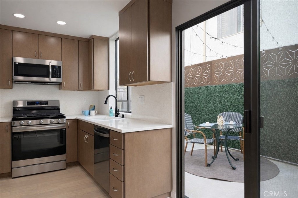 Live beautifully. Live Santa Monica. Quality craftsmanship and thoughtful design define this bright and airy Santa Monica townhome. Fully renovated throughout, the home showcases European oak hardwood floors, custom cabinetry, detailed molding, quartz countertops, recessed LED lighting, and Kohler fixtures - each finish selected with exceptional attention to detail. The well-designed layout features two spacious en-suite bedrooms with vaulted ceilings, including a generous walk-in closet and abundant additional storage. Nine-foot ceilings enhance the sense of openness, while natural light fills the home. Enjoy direct access to your private 2+ car garage and the convenience of in-unit laundry. Located within a secure, gated complex centered around a peaceful courtyard, this residence offers both privacy and community. Just moments from Montana Avenue’s boutiques and cafés, world-class beaches, leading medical centers, and the very best of Santa Monica living, this home blends refined interiors with an effortless coastal lifestyle.