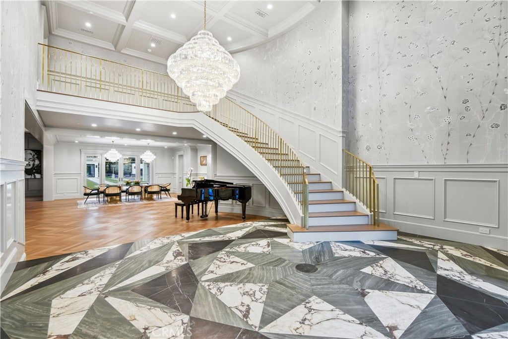 - Interior FeaturesWet Bar, Breakfast Bar, Built-in Features, Balcony, Breakfast Area, Crown Molding, Cathedral Ceiling(s), Coffered Ceiling(s), Separate/Formal Dining Room, High Ceilings, Open Floorplan, Pantry, Stone Counters, Recessed Lighting, Storage, Smart Home, Bedroom on Main Level, Primary Suite, Walk-In Pantry, Chair Rail, Phone System