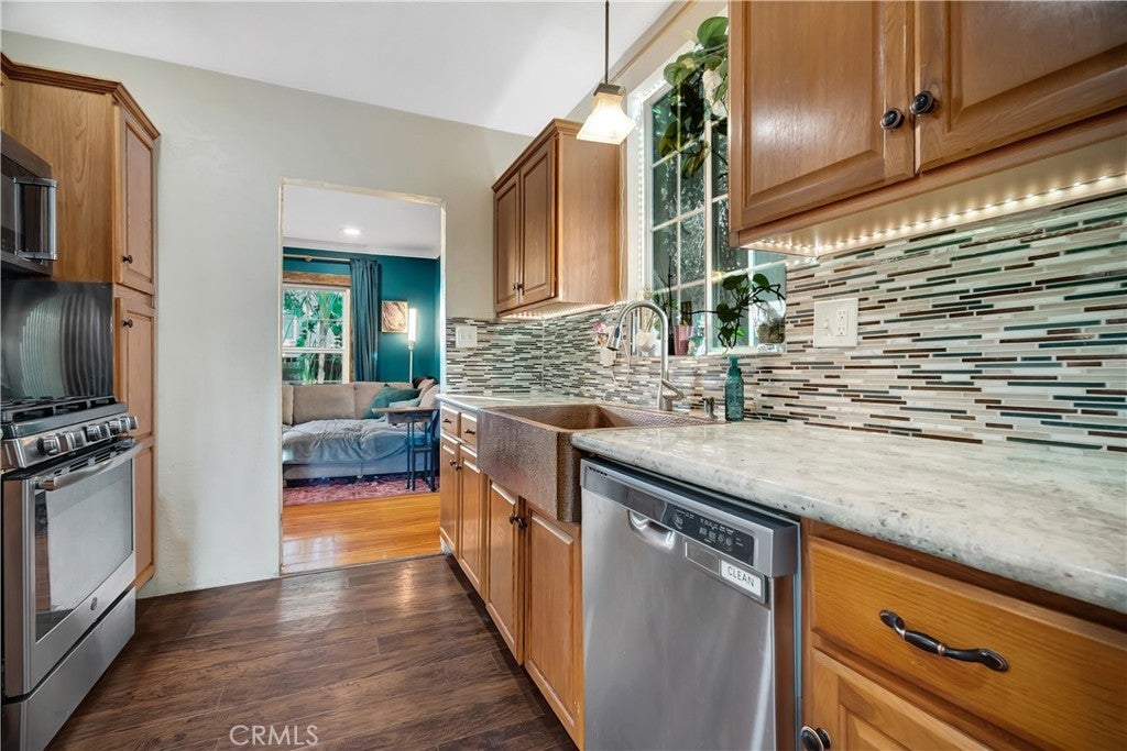 Exceptional opportunity to own a versatile property featuring two homes on one lot — ideal for owner-users wanting tons of privacy, a family compound or investors seeking strong rental potential and long-term appreciation. The traditional aprox 752sqft front residence offers 2 bedrooms and 1 bathroom providing comfortable single level living space. The contemporary ADU built around 2018 has it's own address and is aprox 1,200 square feet with 3-bedrooms and 2-baths. Showcasing modern design and quality finishes throughout including quartz countertops, beautiful cabinetry, laminate flooring, tiled shower walls. The spacious layout also includes a private backyard area, separate gas and electric meters and laundry, adding convenience and flexibility. A detached two-car garage is currently divided and used as additional storage. Keep it as storage, convert it back to a garage or posibly built it out as a third unit. The lot is fenced with a power gate increasing the privacy and security. Whether you choose to live in one residence and rent the other, or lease both units to maximize income potential, this property offers a ton of options and the rare advantage of dual dwellings on one lot — making it a smart addition to any real estate portfolio.