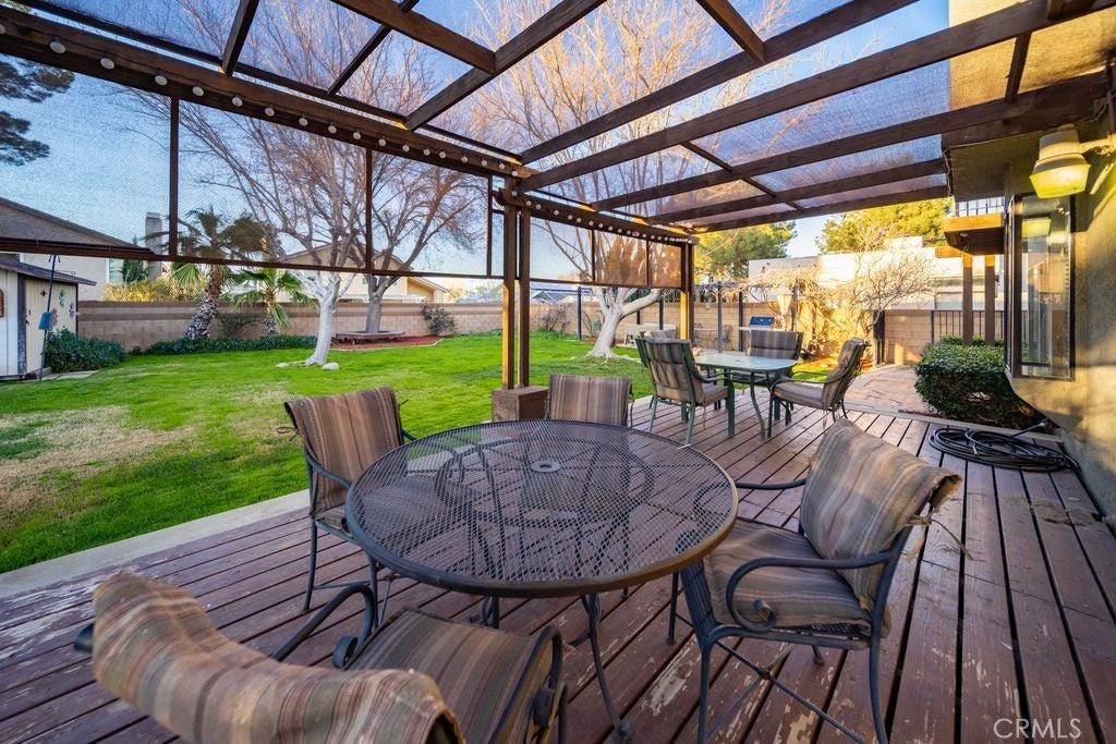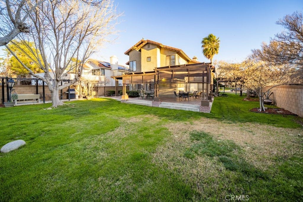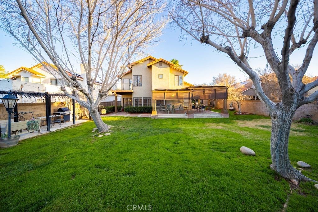 Welcome to the heart of Quartz Hill! This beautifully upgraded 4-bedroom + loft home offers 3 full bathrooms and an impressive 2,652 sq ft of living space on a generous ¼-acre lot. Designed with comfort and elegance in mind, the open floor plan features vaulted ceilings, a spacious living room with soaring ceilings, wood shutters throughout and a beautifully updated family room showcasing elegant coffered ceilings. The separate dining area and additional seating space create the perfect setting for entertaining. A full bedroom and full bathroom downstairs provide ideal flexibility for guests or multi-generational living. The open kitchen is equipped with granite countertops, bar seating, tile flooring, a new stove, new dishwasher, disposer, and includes all appliances -- refrigerator, microwave, oven, dishwasher, wine fridge, washer, and dryer. The home also features a newer water heater and dual HVAC systems for year-round efficiency and comfort. Upstairs, the primary suite offers a cozy electric fireplace, soaker tub, separate shower, walk in closet, seating area and private balcony . Additional fireplaces are located in the loft and downstairs family room, creating warm and inviting spaces throughout. The staircase is beautifully upgraded with wrought iron detailing, adding to the home's elegant appeal. Step outside to a fully landscaped front and backyard, complete with RV access, block walls, a large L-shaped covered patio, a dog run and shed. The oversized lot and 3-car garage provide ample space for vehicles, toys, and storage. Ideally located near Joe Walker Middle School, Quartz Hill High School & Lane Park, this home offers both convenience and charm in one of Quartz Hill's most desirable areas.
