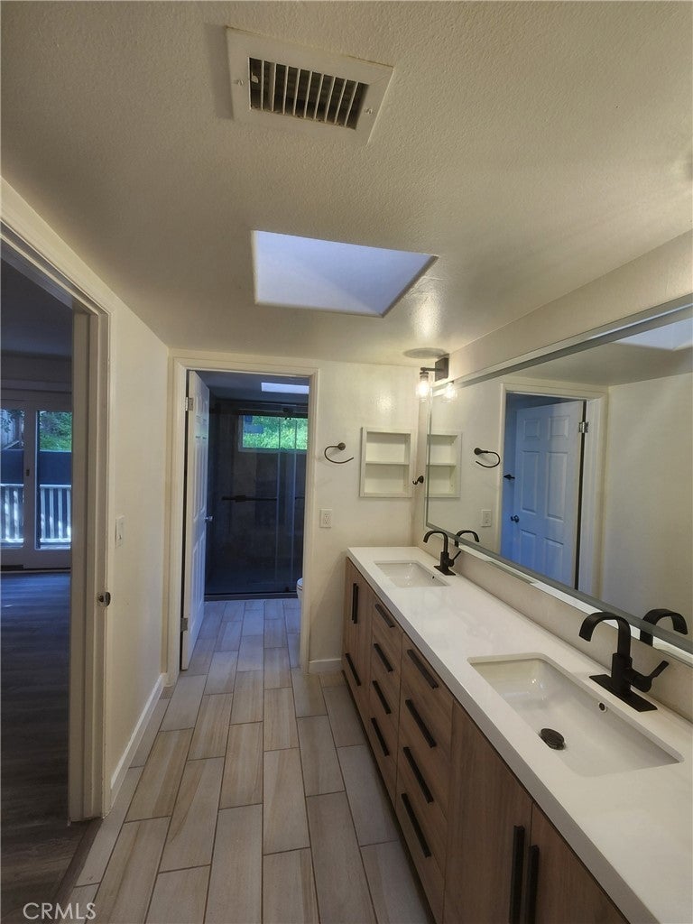 UTILITIES INCLUDED. Tucked into the serene hills above Sunset, this home offers privacy, light, and quintessential Hollywood Hills living just minutes from the heart of the city. This thoughtfully designed home features expansive windows, high ceilings, and warm natural light. The open living and dining areas create an inviting atmosphere ideal for both entertaining and everyday living. The kitchen has new appliances, refinished cabinets with updated hardware, flowing easily into the main gathering spaces. The property has fresh paint and new hard surface flooring throughout. The primary suite and guest room share a dual entry on-suite bathroom that was just updated and connects both of the upstairs bedrooms for a very unique, family friendly, layout. There is also a flex space with pocket doors that can be easily be used as a 3rd bedroom, office, or creative space. Backyard is extremely private providing a space to relax, dine, or entertain. Attached 2 car garage with direct access, laundry hookups and plenty of room for storage sits below the main living area. Located moments from the Sunset Strip, Runyon Canyon, and some of Los Angeles’ best dining and entertainment, this property combines tranquility with unbeatable access. A rare opportunity to lease in one of LA’s most iconic hillside neighborhoods.