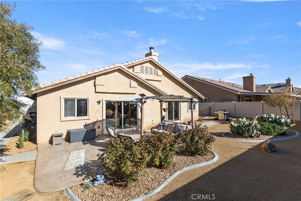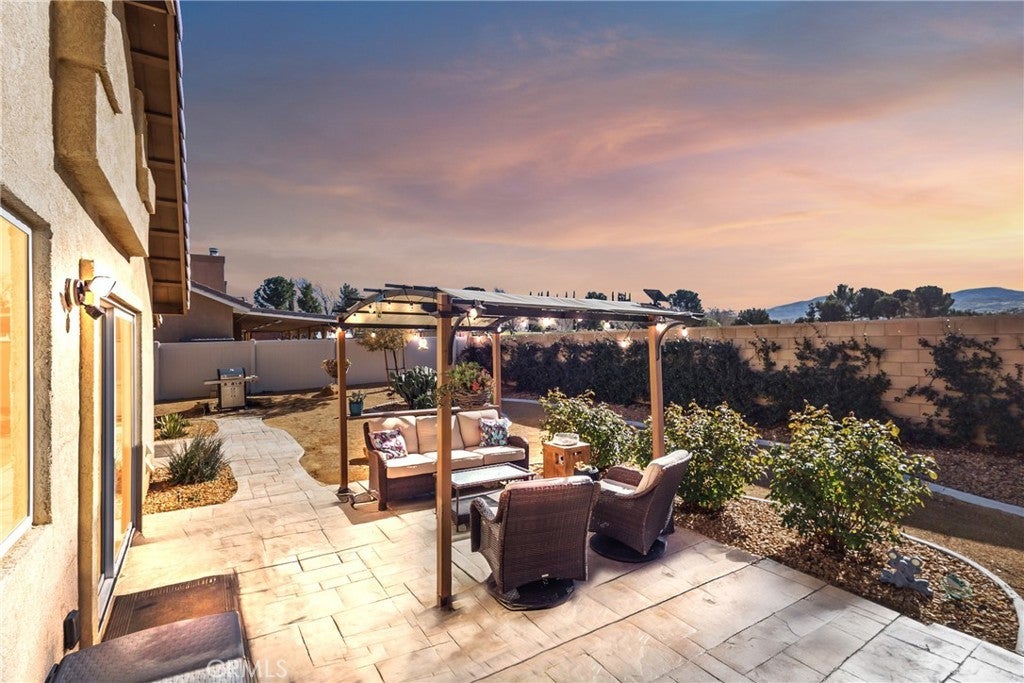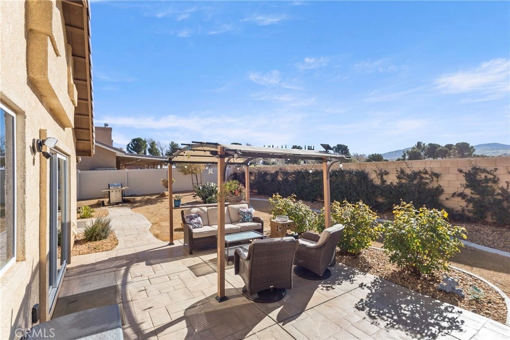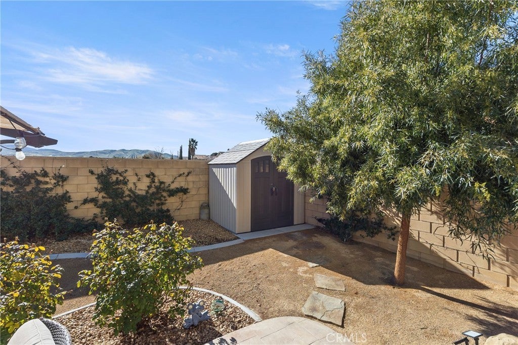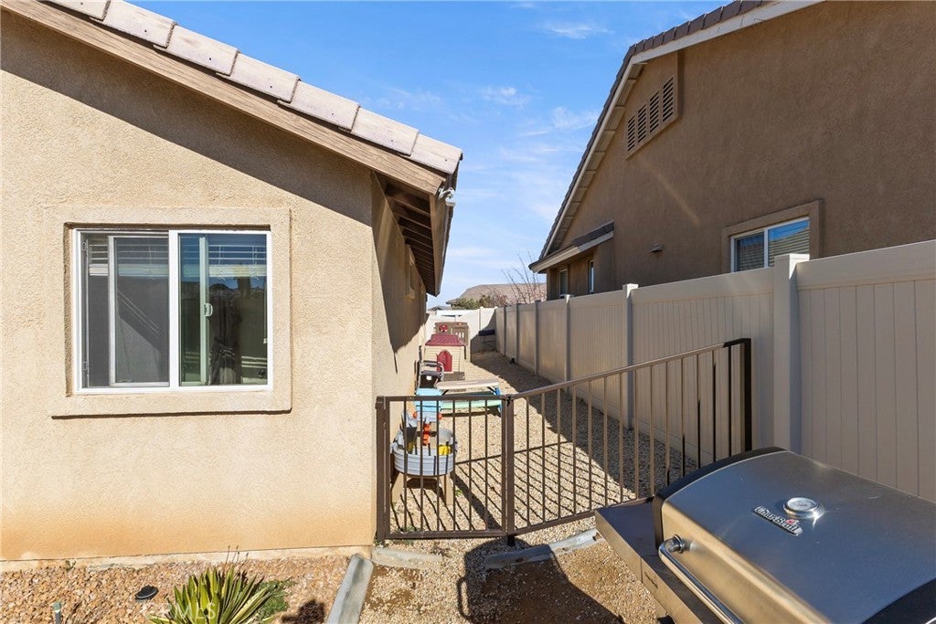 Rare Privacy & Mountain Views, Smart Home in Quiet Neighborhood!!! Welcome to 2048 Thistle Ave in Palmdale, a beautifully upgraded four-bedroom, two-bath home set in a quiet, well-kept neighborhood, offering rare privacy with no neighbor to the right or behind and serene views of the Angeles National Forest mountains. Inside, you'll find a modern, open layout with luxury vinyl plank flooring in the main living areas, waterproof padded carpet in the bedrooms, elegant 6-inch baseboards, and upgraded lighting that creates a clean, cohesive look. The kitchen features granite countertops, a quartz undermount sink, custom tile backsplash, color-matched switches and outlets, smart under-cabinet lighting, and fingerprint-resistant stainless steel appliances including a counter-depth refrigerator. The living room centers around a cozy gas fireplace with a black interior and crushed glass detail. Both bathrooms offer granite counters and upgraded fixtures, while the primary bedroom includes a walk-in closet and smart ceiling fan. This home includes several smart features, such as active AT& T fiber internet, Philips Hue lighting, Zigbee smart switches, a Nexx smart garage door opener, ADT security system with outdoor cameras, Ecobee smart thermostat, and a smart smoke detector. Sellers are open to leaving the ADT system, Philips Hue Bridge and bulbs, SmartThings Hub, and Google Hub. The backyard is thoughtfully landscaped with stamped concrete, flagstone accents, mature plantings, and mountain views. Sellers are open to leaving the pergola with solar lighting, outdoor furniture, barbecue, and fire pit. Additional features include a 50-amp RV/EV hookup, a gated side yard that acts as a dog run or play area, spacious two-car garage, attic and shed storage, and a hot water heater replaced in 2024 and maintained annually. Located near parks, shopping, schools, and the 14 Freeway, with the community mailbox conveniently located just across the street.