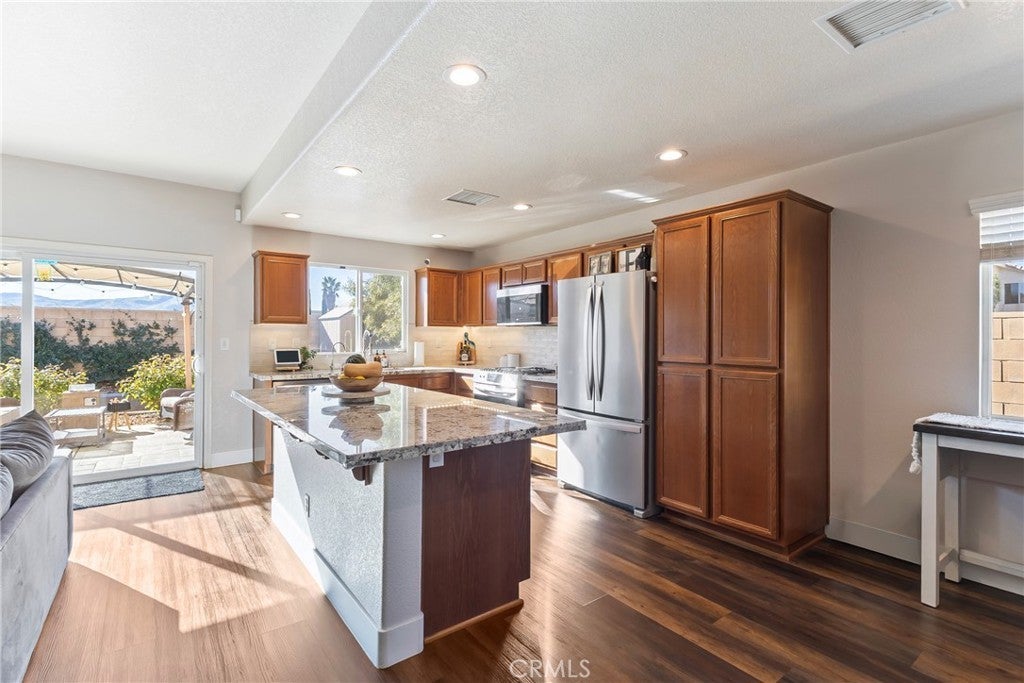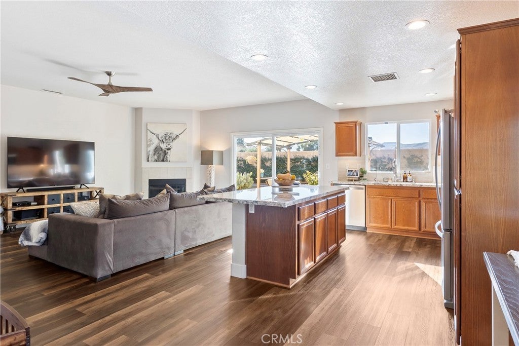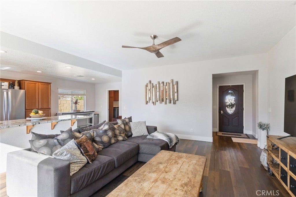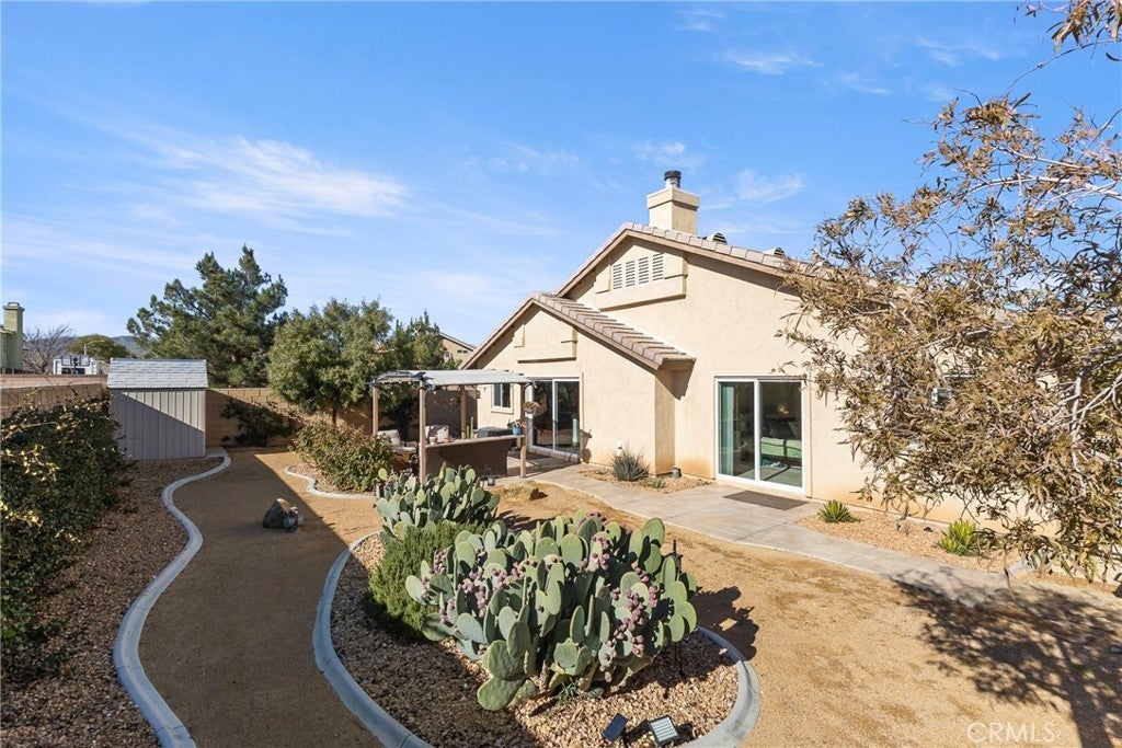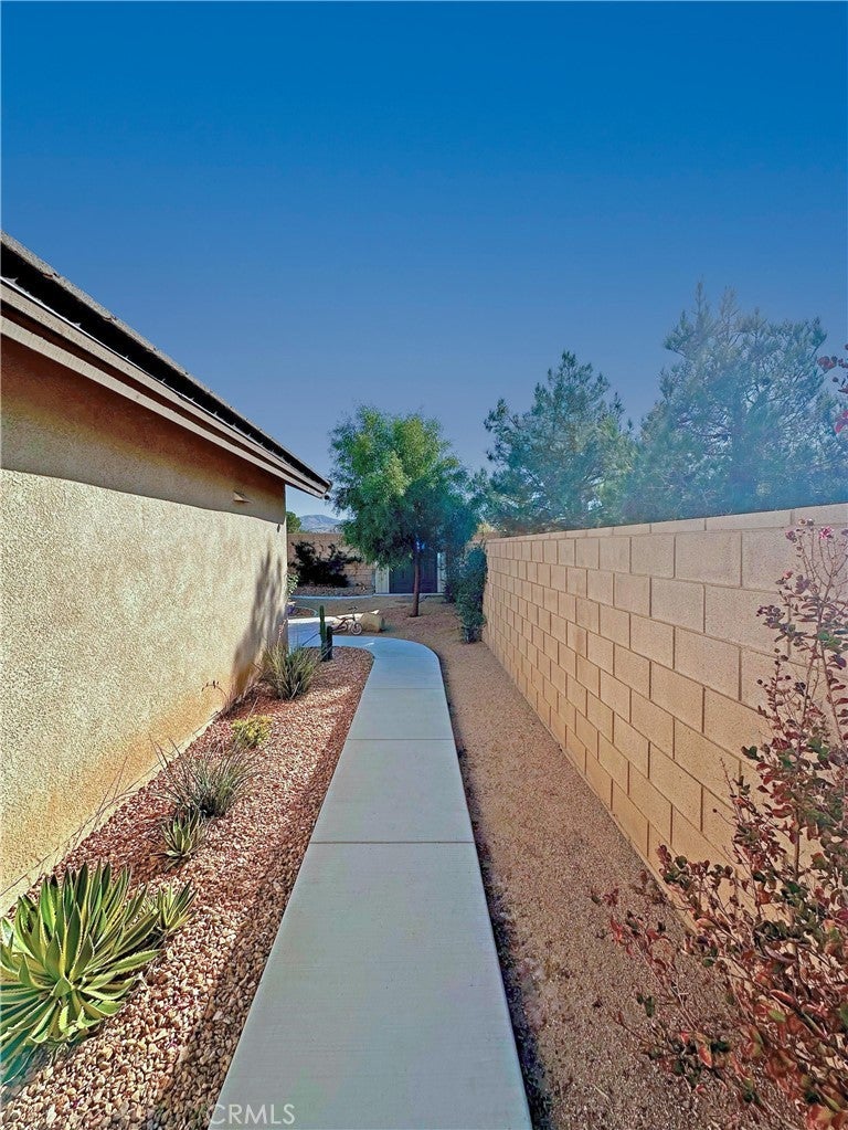 Rare Privacy & Mountain Views, Smart Home in Quiet Neighborhood!!! Welcome to 2048 Thistle Ave in Palmdale, a beautifully upgraded four-bedroom, two-bath home set in a quiet, well-kept neighborhood, offering rare privacy with no neighbor to the right or behind and serene views of the Angeles National Forest mountains. Inside, you'll find a modern, open layout with luxury vinyl plank flooring in the main living areas, waterproof padded carpet in the bedrooms, elegant 6-inch baseboards, and upgraded lighting that creates a clean, cohesive look. The kitchen features granite countertops, a quartz undermount sink, custom tile backsplash, color-matched switches and outlets, smart under-cabinet lighting, and fingerprint-resistant stainless steel appliances including a counter-depth refrigerator. The living room centers around a cozy gas fireplace with a black interior and crushed glass detail. Both bathrooms offer granite counters and upgraded fixtures, while the primary bedroom includes a walk-in closet and smart ceiling fan. This home includes several smart features, such as active AT& T fiber internet, Philips Hue lighting, Zigbee smart switches, a Nexx smart garage door opener, ADT security system with outdoor cameras, Ecobee smart thermostat, and a smart smoke detector. Sellers are open to leaving the ADT system, Philips Hue Bridge and bulbs, SmartThings Hub, and Google Hub. The backyard is thoughtfully landscaped with stamped concrete, flagstone accents, mature plantings, and mountain views. Sellers are open to leaving the pergola with solar lighting, outdoor furniture, barbecue, and fire pit. Additional features include a 50-amp RV/EV hookup, a gated side yard that acts as a dog run or play area, spacious two-car garage, attic and shed storage, and a hot water heater replaced in 2024 and maintained annually. Located near parks, shopping, schools, and the 14 Freeway, with the community mailbox conveniently located just across the street.
