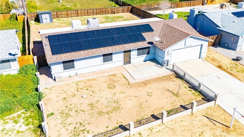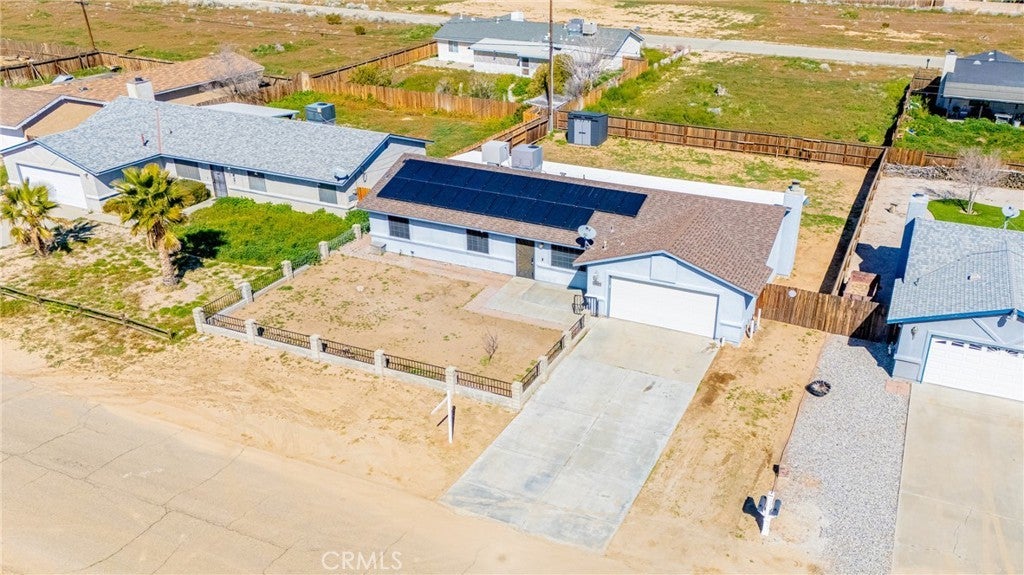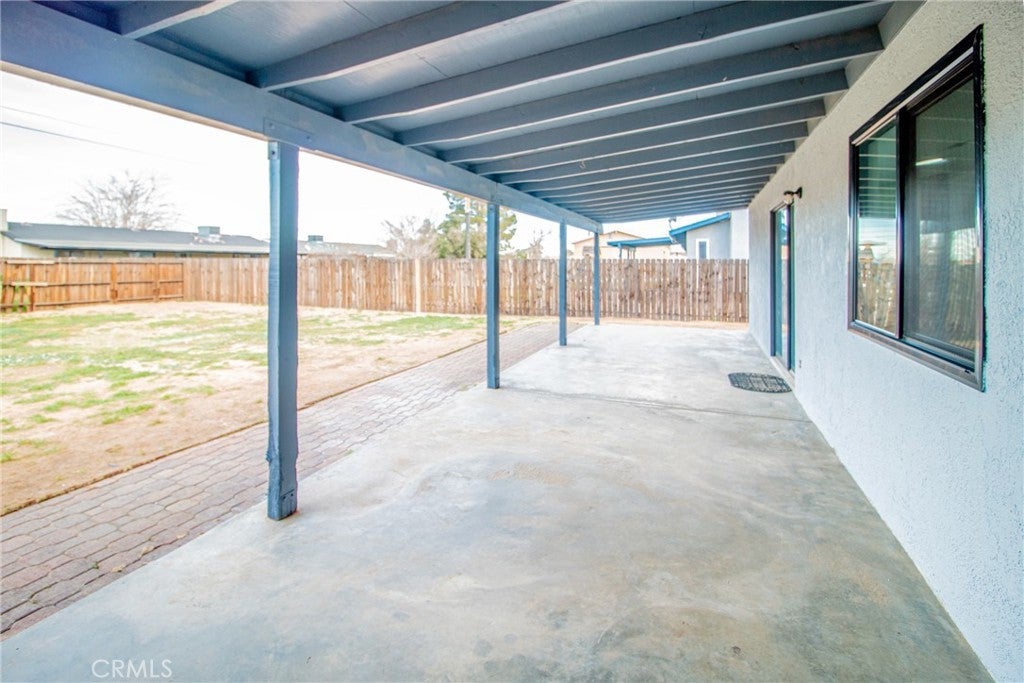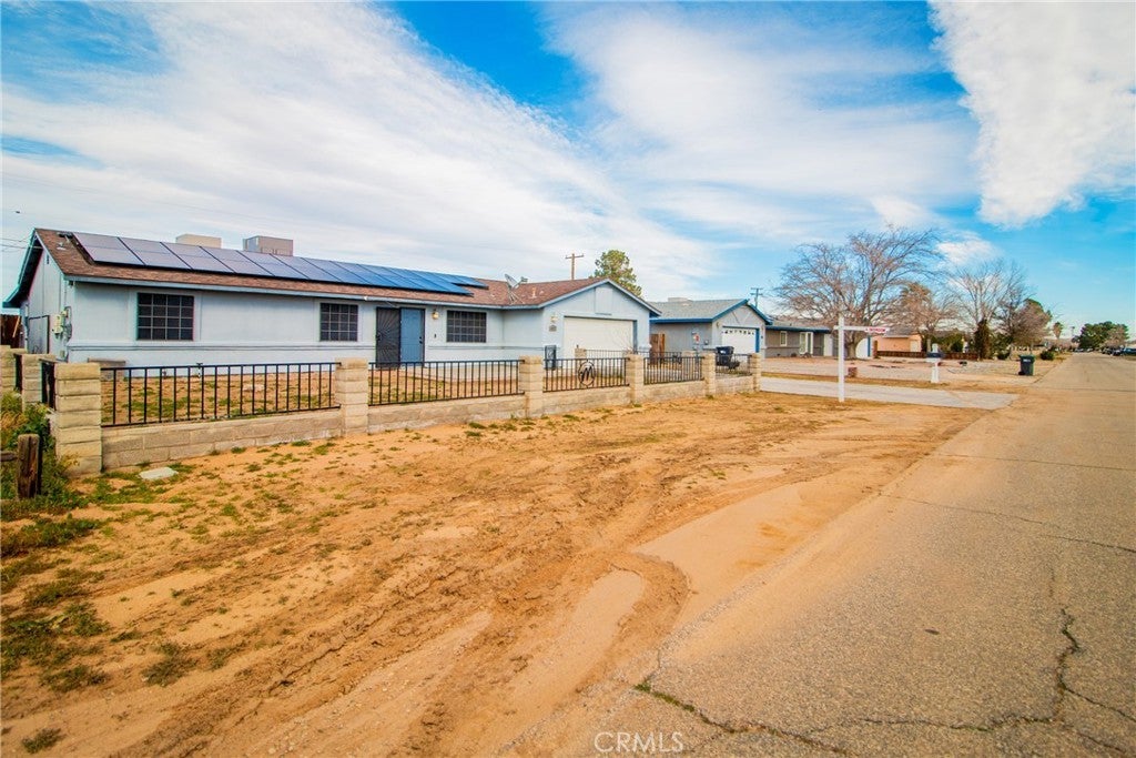 Welcome home to this beautifully updated Northside California City gem, ready for its next chapter. Situated on a spacious 10,019 sq ft fully fenced lot, this single-story 3 bedroom, 2 bathroom home offers comfort, style, and room to truly enjoy. Step inside and appreciate the new waterproof vinyl flooring throughout, fresh interior paint, updated light fixtures, new door hardware, new toilets, and dual-pane windows designed to enhance energy efficiency and help maintain indoor comfort year-round. High ceilings in the living room, kitchen, dining, and family room create an open, airy atmosphere filled with natural light -- perfect for both everyday living and special gatherings. The recently painted blue kitchen stands out as the heart of the home. Its inviting color adds warmth and personality, making it the perfect place to gather with family and friends. The breakfast bar naturally becomes a space to serve meals, share conversations, and enjoy casual dining together. The backyard is ready for making memories. Enjoy the large covered patio with newer roof, along with a permitted enclosed patio area divided into two separate spaces -- ideal for a playroom, home office, gym, hobby room, or additional living area. With direct access from the primary bedroom, it offers flexibility to suit your lifestyle. The fully fenced front yard with iron and cinder block fencing enhances privacy and curb appeal. An extended driveway, 2-car attached garage, and storage shed provide plenty of space for vehicles and storage. Leased solar with strong production further supports energy savings. The home is connected to natural gas and city sewer for added convenience. If you've been looking for a move-in ready home with character, space, and flexibility -- this one is ready to welcome you.