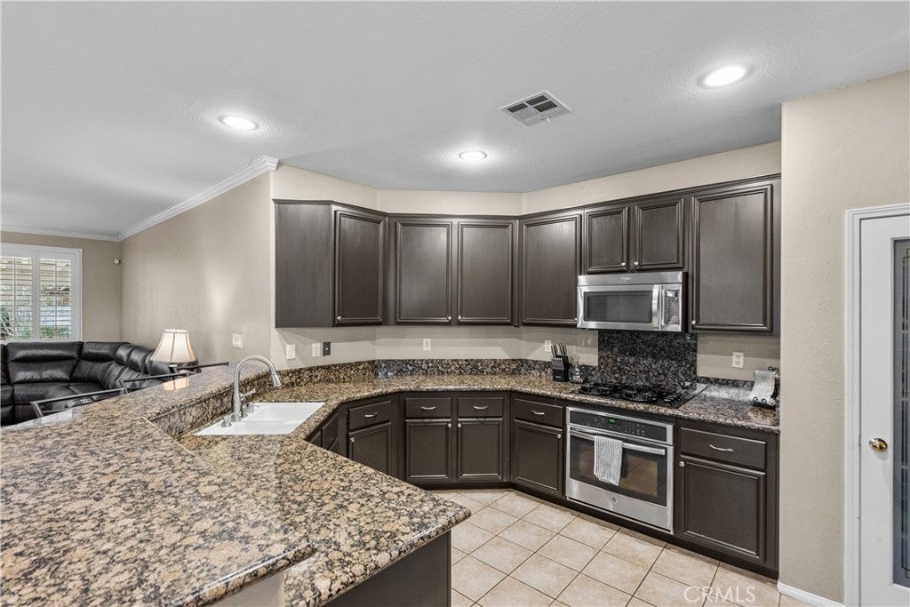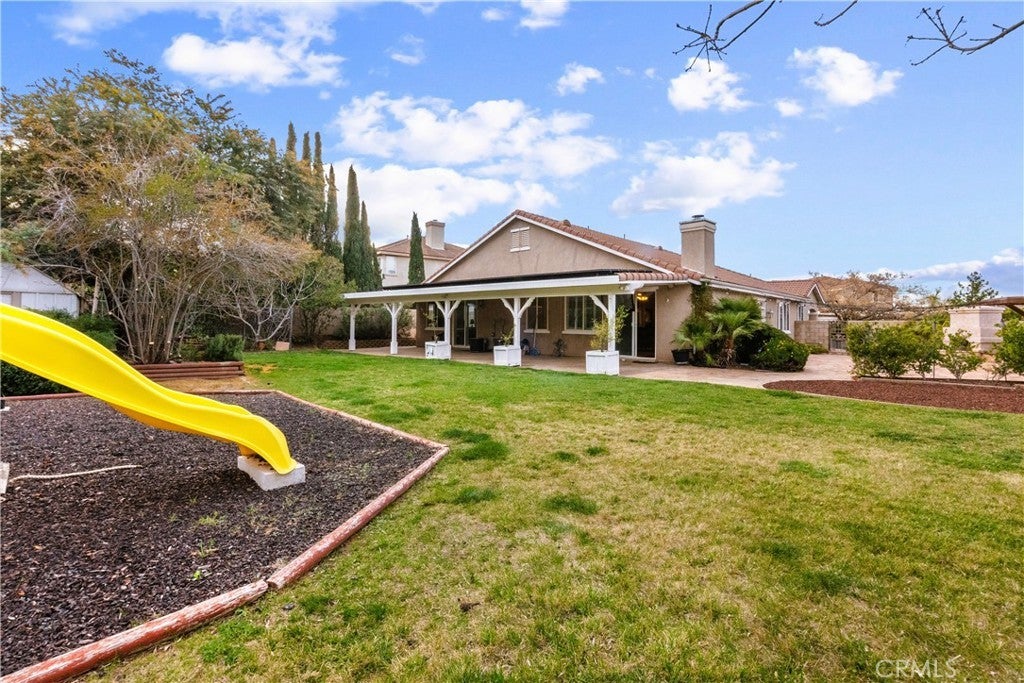 Welcome to this stunning single-story retreat tucked away on a quiet, private cul-de-sac in desirable Rancho Vista — where comfort, space, efficiency, and privacy come together beautifully. Situated on an expansive lot, this home offers room to breathe both inside and out. Step through the front door and you’re greeted by an open, airy floor plan designed for gathering, celebrating, and everyday living. The inviting family room centers around a cozy fireplace — the perfect backdrop for relaxing winter evenings or hosting friends and family. The kitchen is as functional as it is stylish, featuring granite countertops, under-cabinet lighting, a generous pantry, and abundant cabinetry to keep everything organized and within reach. The spacious primary suite is your private retreat, complete with direct access to the backyard, an en-suite bathroom, and a large closet. Four additional bedrooms and two guest bathrooms provide flexibility for family, visitors, or multi-generational living. The fifth bedroom easily doubles as a home office, gym, or creative space — tailored to fit your lifestyle. Outside, the possibilities continue. Enjoy a beautifully landscaped front yard and a welcoming, private porch — perfect for morning coffee. The backyard is built for both relaxation and entertaining, featuring a covered patio, outdoor fireplace, enclosed garden, garden shed, kennel area, and ample space to add a large pool without sacrificing yard space. And to top it all off, the home includes solar panels — helping reduce energy costs while adding long-term value and efficiency. With a three-car garage, generous lot size, thoughtful layout, and energy-saving features throughout, this home truly offers the space, privacy, and versatility you’ve been looking for. Come experience it in person — you won’t want to leave.