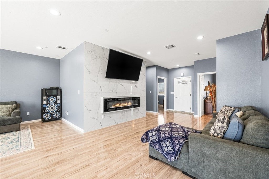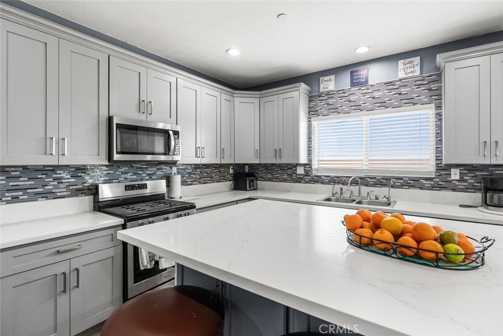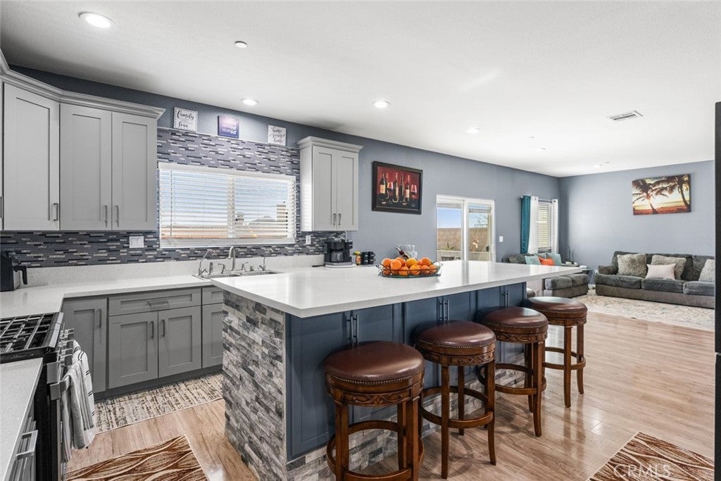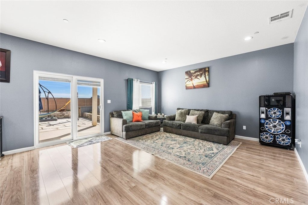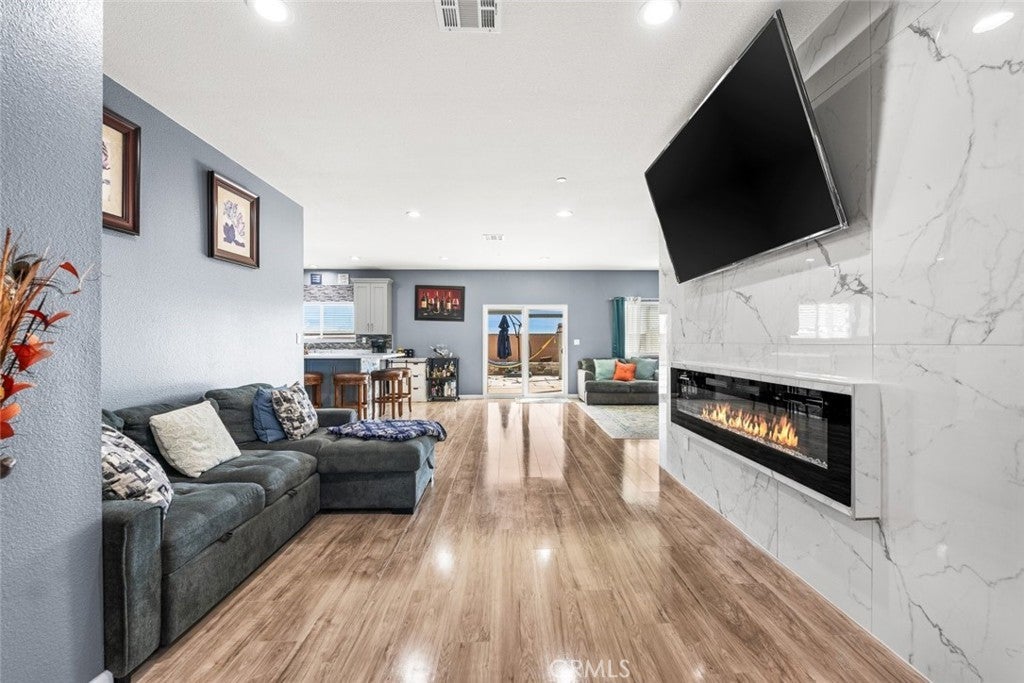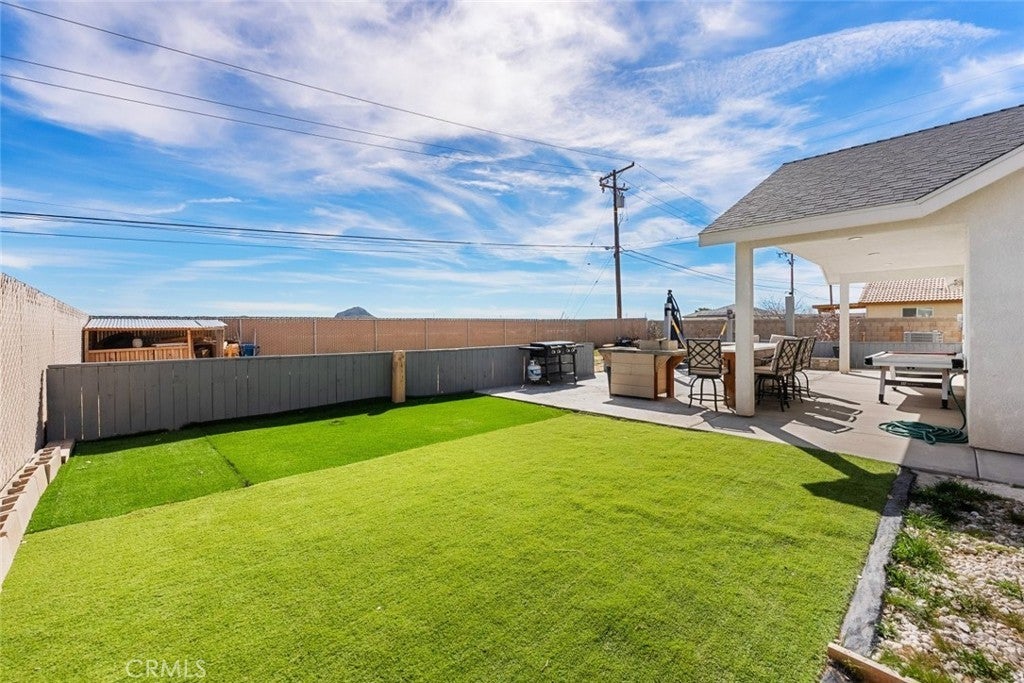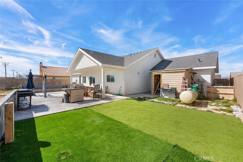 Welcome to this beautifully constructed 2023 residence located at 10588 Peach Avenue in California City. Offering 2,134 square feet of thoughtfully designed living space, this stunning home blends modern comfort with stylish finishes throughout. Inside, an expansive open floor plan filled with natural light creates an inviting atmosphere, ideal for both everyday living and entertaining. The heart of the home features a custom fireplace with an elegant marble backsplash, creating a warm yet sophisticated focal point. The spacious kitchen boasts quality flooring, a generous walk-in pantry, and seamless flow into the main living and dining areas. The property offers 4 bedrooms and 2.5 bathrooms per title, plus a versatile bonus room currently used as an additional bedroom, perfect for a home office, gym, guest space, or flex room to fit your lifestyle needs. Enjoy energy efficiency with fully paid solar, helping to reduce utility costs while embracing sustainable living. The attached two-car garage provides convenience and additional storage. The private backyard retreat is complete with a built-in BBQ, ideal for gatherings and outdoor entertaining year-round. This move-in ready home offers modern design, functionality, and comfort, all in one exceptional property.