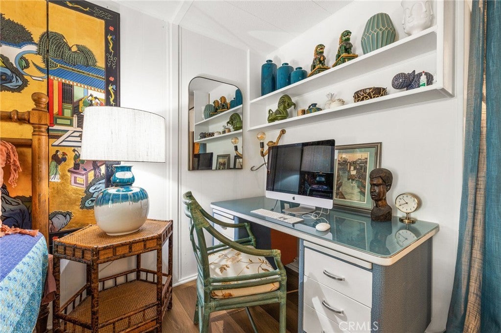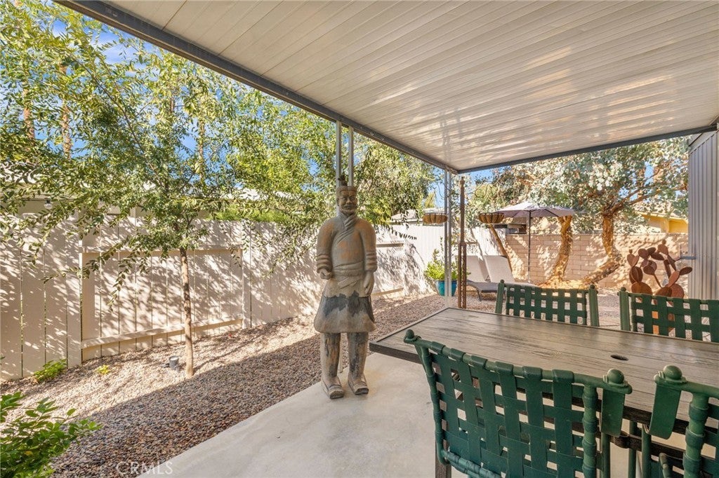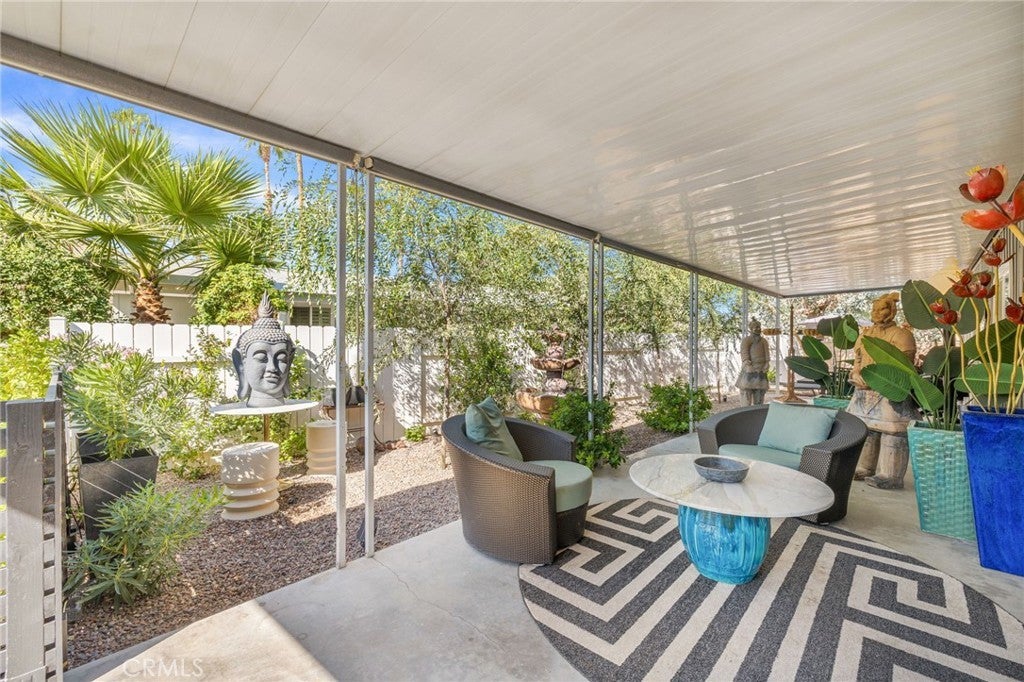 Welcome to a rare opportunity in historic Blue Skies Village, an exclusive 55+ gated community founded by Hollywood icons including Bing Crosby, George Burns, Gracie Allen, and Jack Benny. Rich in character and architectural significance, this storied enclave offers timeless charm in an intimate desert setting. This beautifully reimagined vintage residence has been completely remodeled to the highest standards and sits on one of the widest and largest lots in the community. Best of all, you own the land, there is no land lease, and property taxes are based solely on land value, resulting in remarkably low annual taxes. Inside, a designer chef’s kitchen showcases upscale appliances, custom cabinetry, and elegant quartz countertops, creating a refined yet inviting space for everyday living and entertaining. Dual pane windows, wide plank flooring, beautifully tiled bathrooms, and high-end finishes elevate the home throughout. Step outside to an expansive, gated wraparound garden with lush landscaping, exceptional privacy, stunning mountain views, and ideal sun exposure throughout the day, perfect for gatherings or peaceful relaxation. Ample parking with more than three covered spaces, accommodating up to four vehicles, adds tremendous value. The low $425 monthly HOA includes cable, internet, trash, and water, along with access to resort style amenities such as a saltwater pool and spa, fitness center, and a clubhouse designed by renowned mid-century architect William F. Cody. Ideally located adjacent to the Butler Abrams Trail and just minutes from Eisenhower Health, as well as the shopping, dining, and cultural attractions of Palm Desert and Palm Springs, this exceptional home offers history, lifestyle, and value in one extraordinary setting.