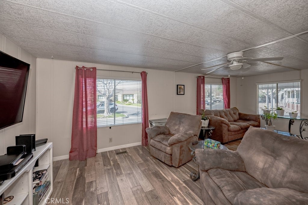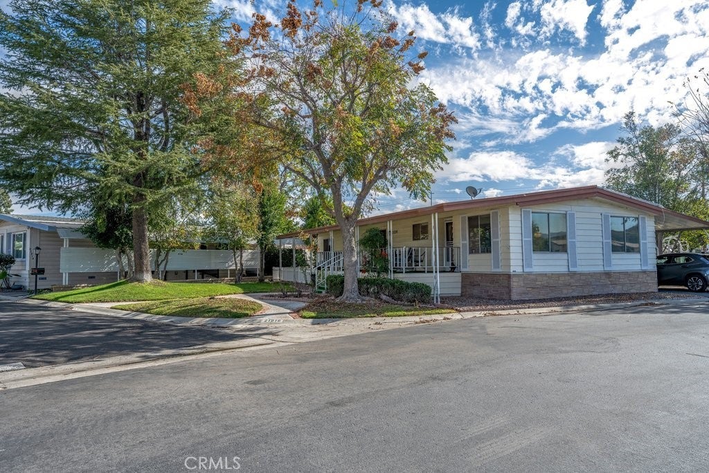 LOCATION, LOCATION, LOCATION! One of the few homes that has its own FRONT YARD! Located on one of the larger lots with a backyard and grassy front yard! The unit sits at an angle where you can sit on the patio and enjoy the comfort of your wide yard similar to what you just left! The front entrance has 3-4 steps, and the side entrance has a ramp to your new home-something a lot of homes don't have!. Imagine your morning coffee on this expanded porch or relaxing in the evening with a gentle breeze. You also have the advantage of shade trees! All the fun of the rex rooms and pool is walking distance from your new home! You don't have to get into your car to get there! This home has been upgraded with luxury vinyl flooring, a new oven and has inside washer and dryer! This open floorplan has 2 good size bedrooms and 2 full bathrooms! The kitchen is open to the dining room along with a kitchen island and plenty of room for family or visitors! The primary bedroom has 2 closets and an attached bathroom already equipped with grab bars. Ceiling fans thru out the home. Here's a great home to downsize and live a relaxing lifestyle! Pets are allowed!! Don't miss out on this location!