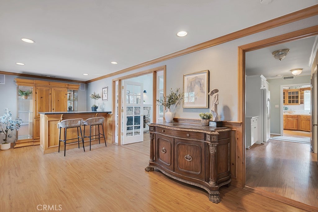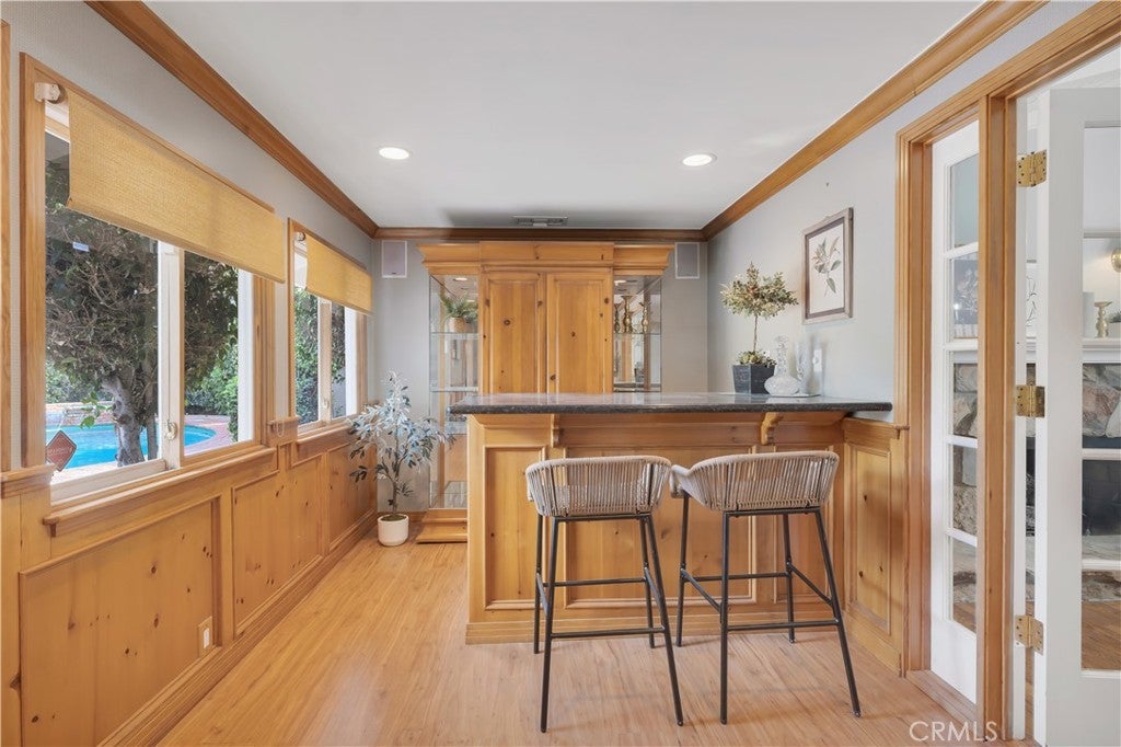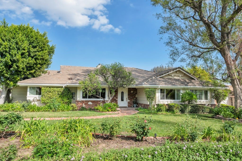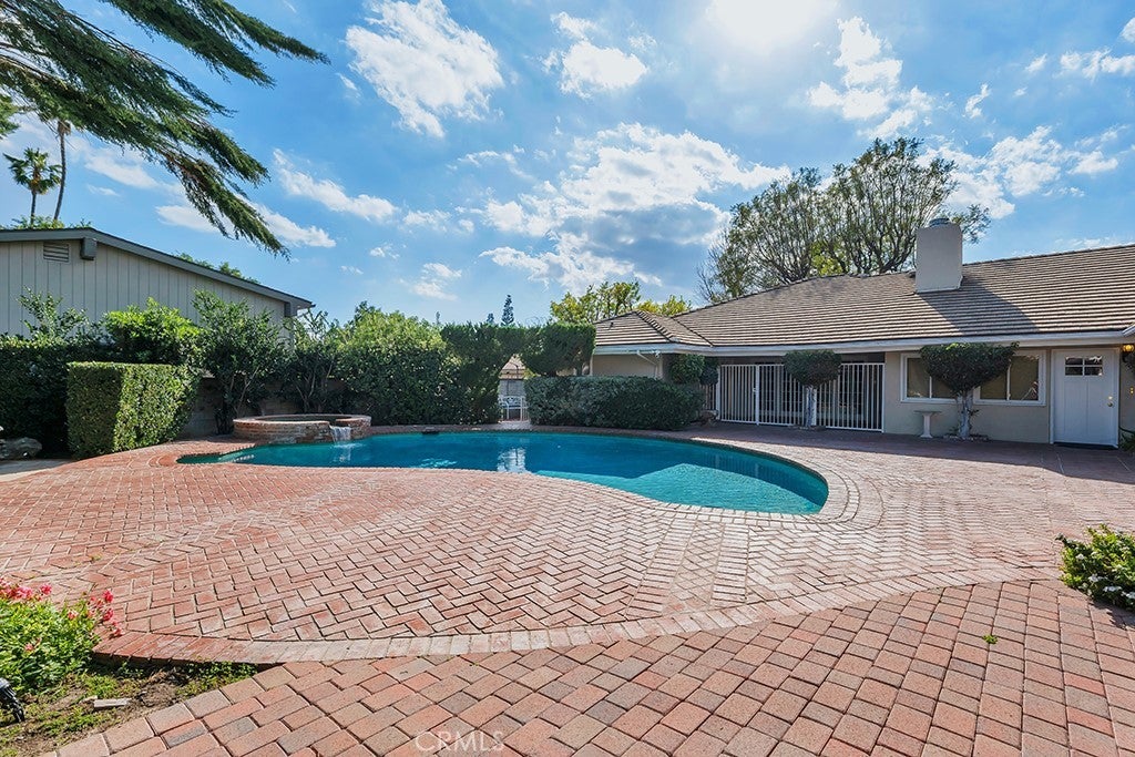 ONE OF NORTHRIDGE’S MOST EXCLUSIVE NEIGHBORHOODS - DEVONSHIRE COUNTRY ESTATES - and one of the LARGEST homes at this price point - an enormous 3,358 square foot with a sparkling swimming pool, jacuzzi - all on a CORNER lot with a DETACHED garage and expansive side-driveway perfect for RV access or ADU conversion. This is Devonshire Country Estates’ MOST complete house at this price point. As you walk up, you are welcomed by a brick path and lush land landscaping that looks even more luxurious at night. The double-french doors welcome you to a living room that is flooded in natural sunlight. A brick fireplace adds to the character of the house. The kitchen boasts a built-in desk, and a spacious sitting area for breakfast - coffee and a newspaper. A roomy dining room links to the kitchen and living room. Staying on this side of the house, there is a bathroom with shower next to a bedroom, which has the washer/dryer hookups and ample storage. This leads to an oversized family room in the back which bookshelves and another fireplace - PLUS a wet bar. This is where you host family events. On the other side of teh house are 3 bedrooms, including the primary bedroom and a full hallway bathroom. The primary bedroom has a walk-in closet and access to the backyard, along with a vanity and an exquisite ensuite bathroom. Going outside, you are greeted by an elegant brick layout, fountain, swimming pool, and jacuzzi. Dual HVAC units are on the side of the house. The detached garage has its own breezeway in the middle for trash bins or for moving items into the backyard (think parties!) The garage is oversized with a spacious workshop/storage area. Outside is a driveway with basketball hoop, and enough space to fit 3 cars. The possibilities are endless with the square footage and compound-like aspects. Welcome home.