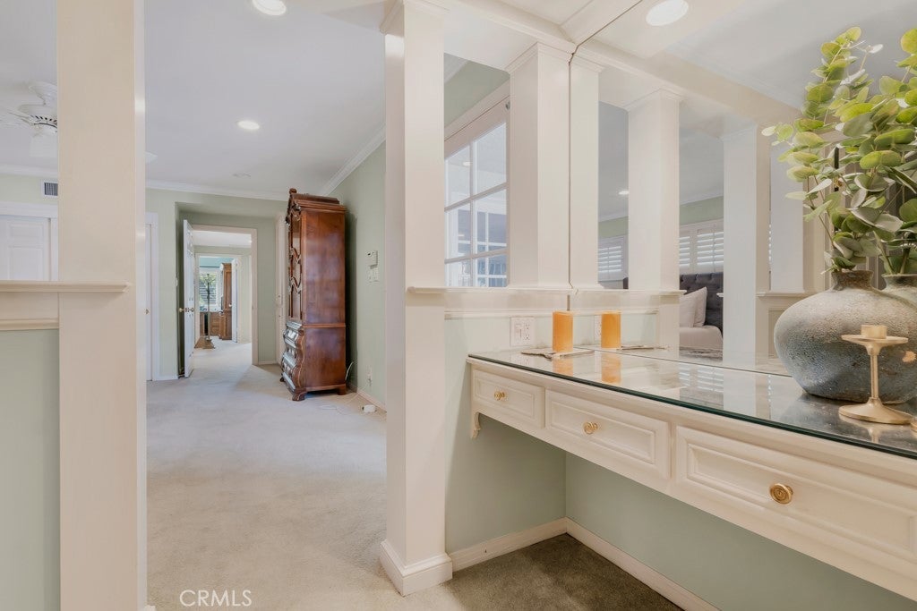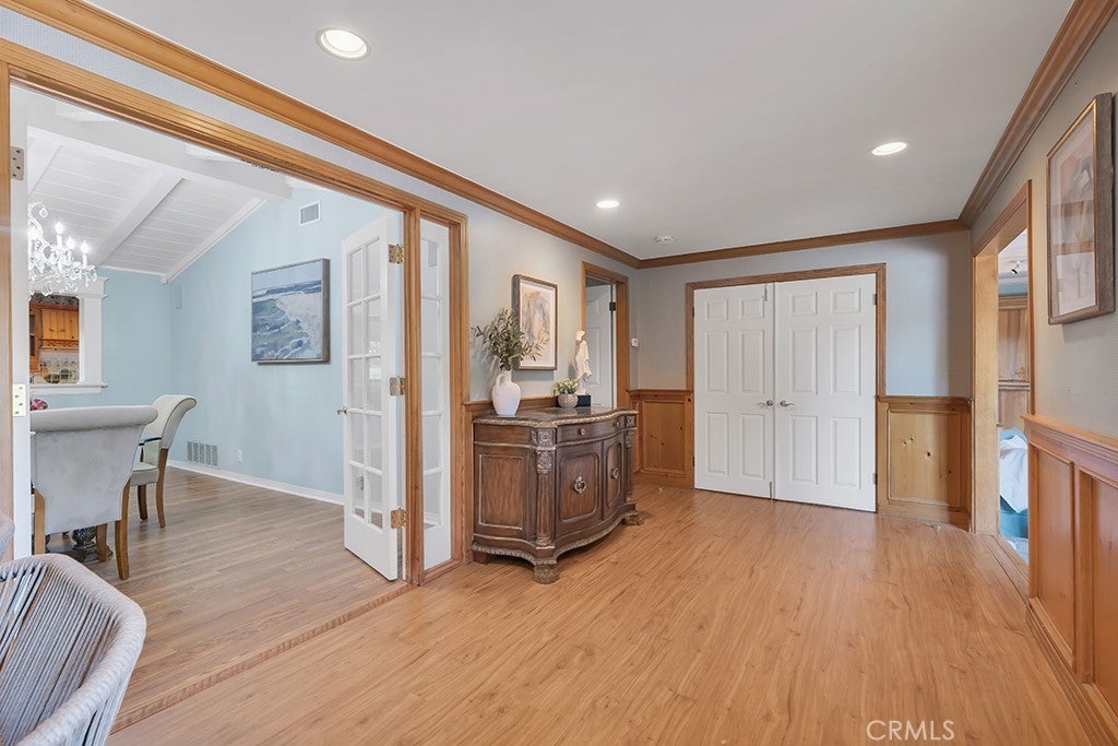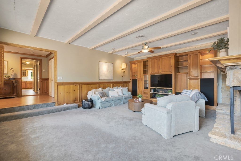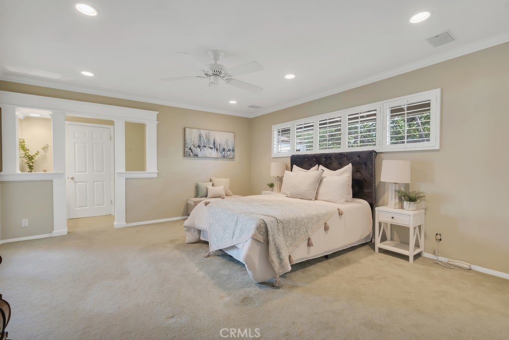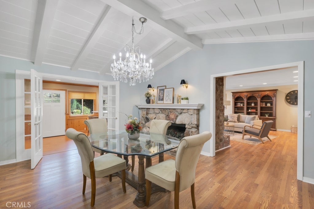 ONE OF NORTHRIDGE’S MOST EXCLUSIVE NEIGHBORHOODS - DEVONSHIRE COUNTRY ESTATES - and one of the LARGEST homes at this price point - an enormous 3,358 square foot with a sparkling swimming pool, jacuzzi - all on a CORNER lot with a DETACHED garage and expansive side-driveway perfect for RV access or ADU conversion. This is Devonshire Country Estates’ MOST complete house at this price point. As you walk up, you are welcomed by a brick path and lush land landscaping that looks even more luxurious at night. The double-french doors welcome you to a living room that is flooded in natural sunlight. A brick fireplace adds to the character of the house. The kitchen boasts a built-in desk, and a spacious sitting area for breakfast - coffee and a newspaper. A roomy dining room links to the kitchen and living room. Staying on this side of the house, there is a bathroom with shower next to a bedroom, which has the washer/dryer hookups and ample storage. This leads to an oversized family room in the back which bookshelves and another fireplace - PLUS a wet bar. This is where you host family events. On the other side of teh house are 3 bedrooms, including the primary bedroom and a full hallway bathroom. The primary bedroom has a walk-in closet and access to the backyard, along with a vanity and an exquisite ensuite bathroom. Going outside, you are greeted by an elegant brick layout, fountain, swimming pool, and jacuzzi. Dual HVAC units are on the side of the house. The detached garage has its own breezeway in the middle for trash bins or for moving items into the backyard (think parties!) The garage is oversized with a spacious workshop/storage area. Outside is a driveway with basketball hoop, and enough space to fit 3 cars. The possibilities are endless with the square footage and compound-like aspects. Welcome home.