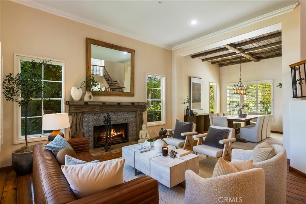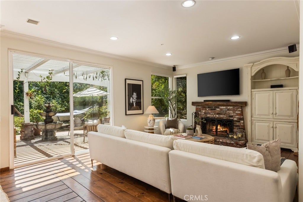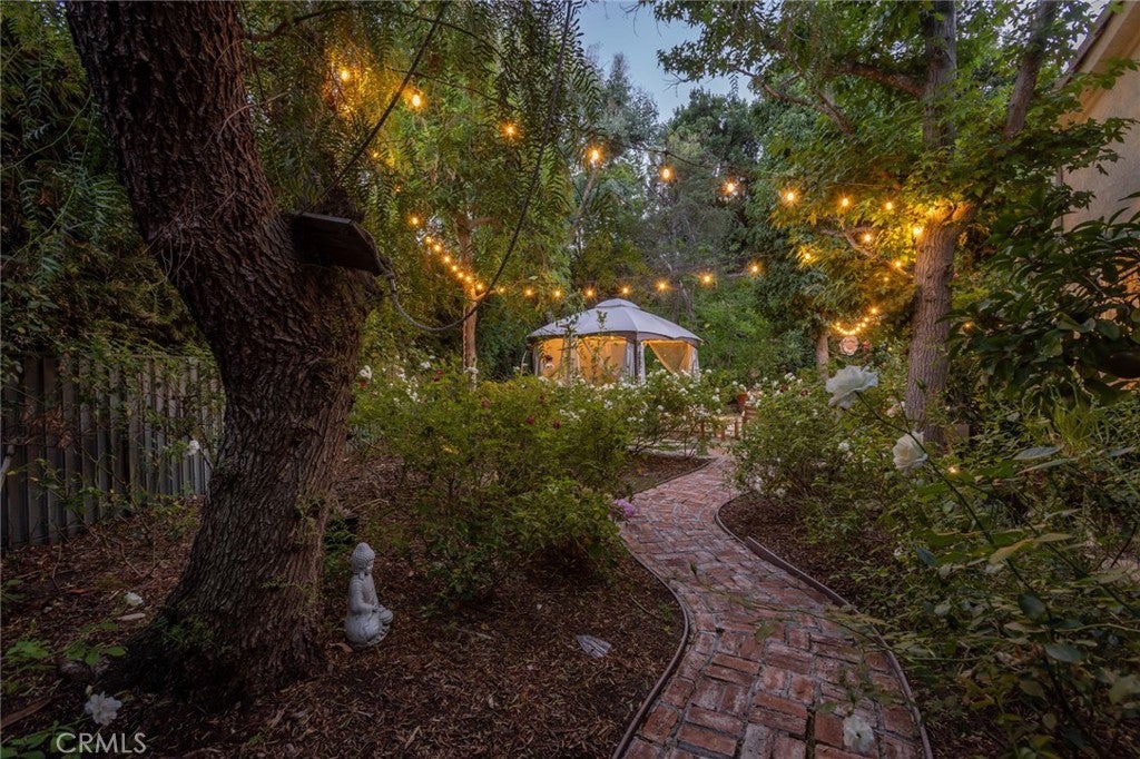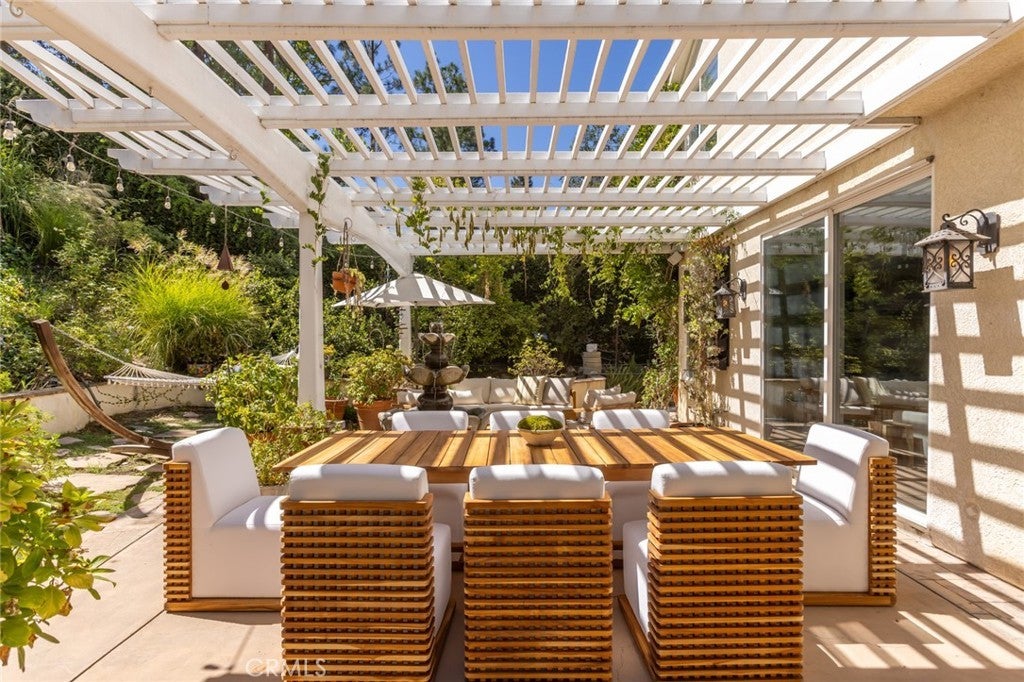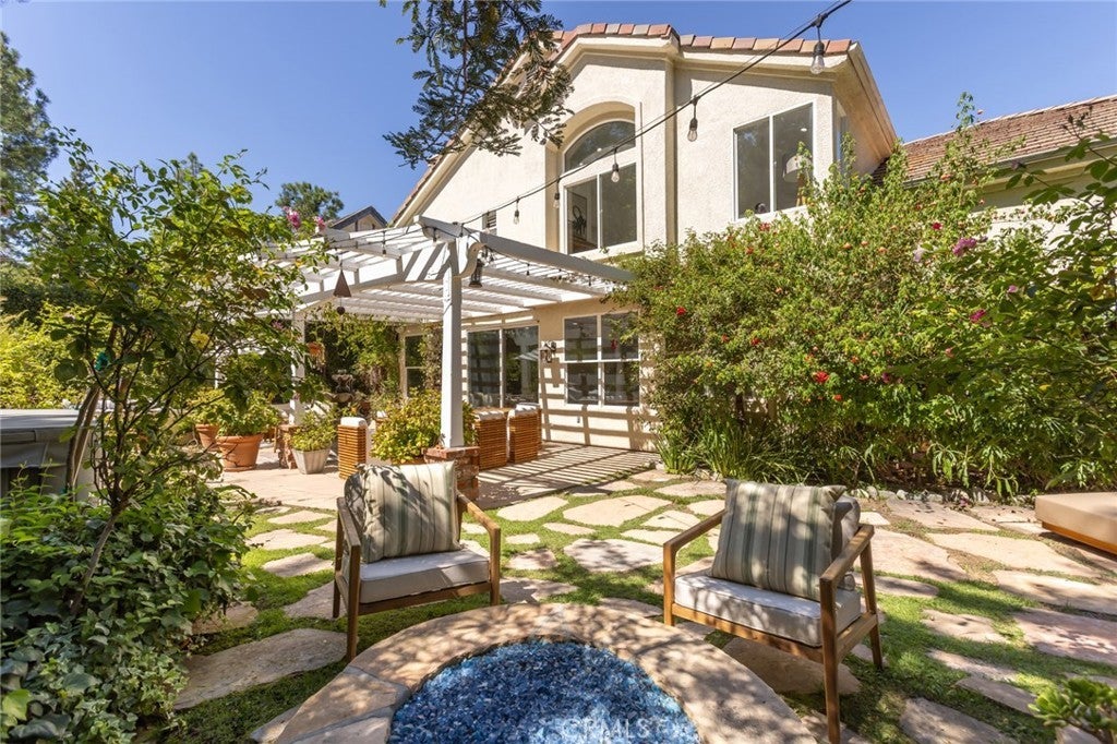 Welcome to 5985 Vista De La Luz, an exceptional retreat in the prestigious Valley Circle Estates neighborhood of Woodland Hills. Located within a highly-desired community served by award-winning schools, this residence offers an ideal blend of elevated design, privacy, and location. Offering 4 bedrooms, 3.5 baths, and 2,658 sq ft on a generous 0.27-acre lot, the home is filled with warmth, light, and character. Custom exposed ceiling beams and striking fireplace mantles crafted from authentic 18th-century barnwood create a rich architectural statement, blending timeless craftsmanship with modern comfort. The downstairs office features custom built-in cabinetry, providing both beauty and functionality for today’s work-from-home lifestyle. Thoughtfully designed living spaces flow effortlessly for both intimate evenings and lively gatherings. The spacious primary retreat serves as a private sanctuary, complete with vaulted ceilings, its own cozy fireplace, and a generous walk-in closet. The spa-like primary bath offers a jetted soaking tub, separate shower, and refined finishes designed for relaxation and rejuvenation. The true magic unfolds in the backyard oasis — a private sanctuary framed by lush greenery and open skies. Enjoy evenings gathered around the firepit, unwind in the hot tub beneath the stars, or relax in the charming gazebo as weekend entertaining flows seamlessly from indoors to nature’s embrace. It is a setting designed not just for living, but for unforgettable moments. With nearby hiking trails weaving through the scenic Santa Monica Mountains, adventure and tranquility are always close at hand. Built in 1995, this home offers modern convenience wrapped in romantic charm — a rare blend of craftsmanship, comfort, and refined California living in the heart of Woodland Hills.