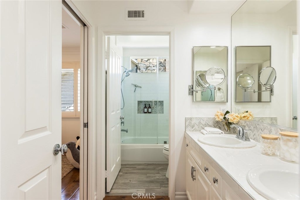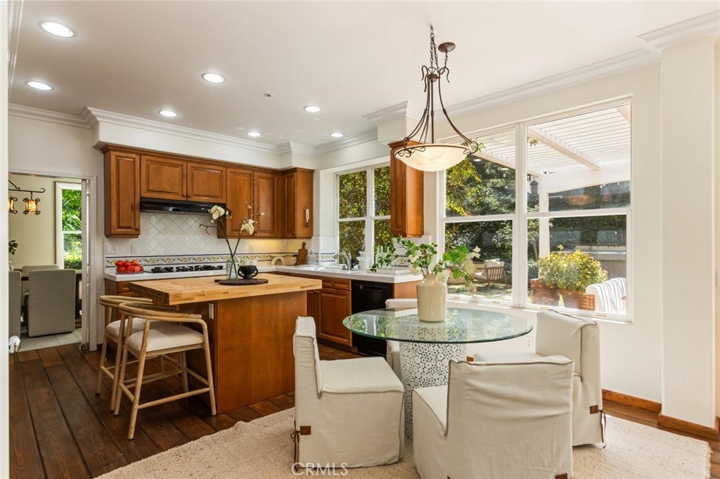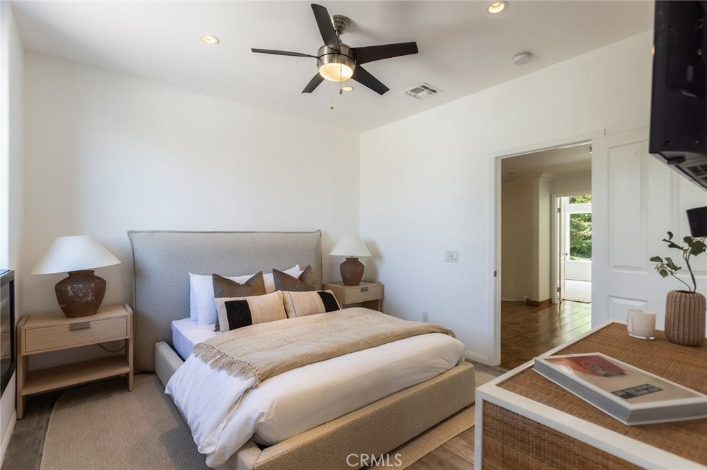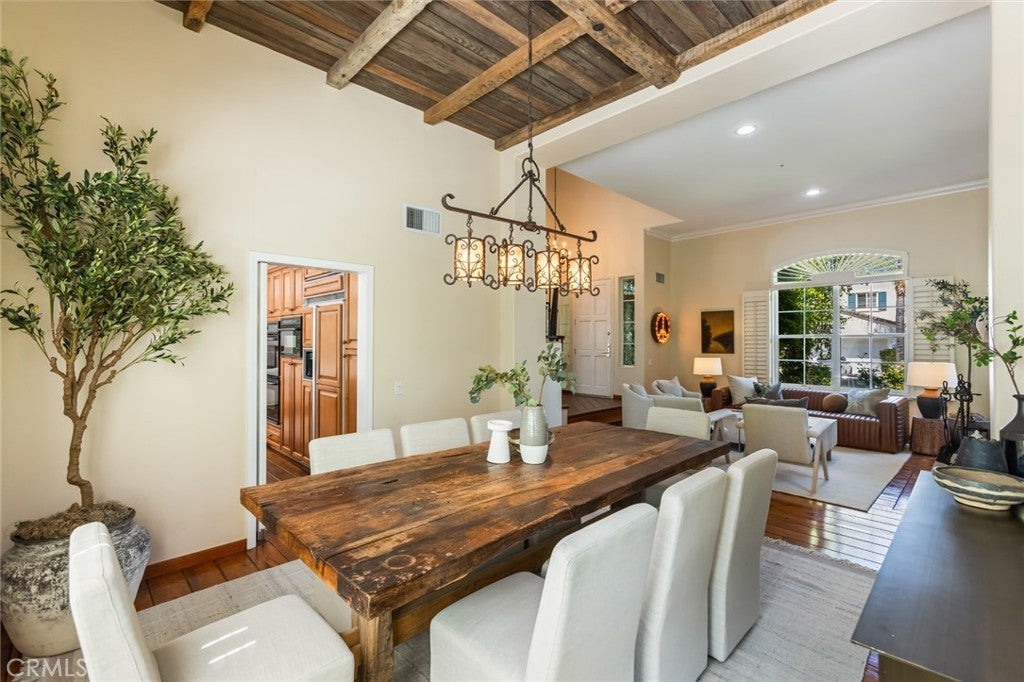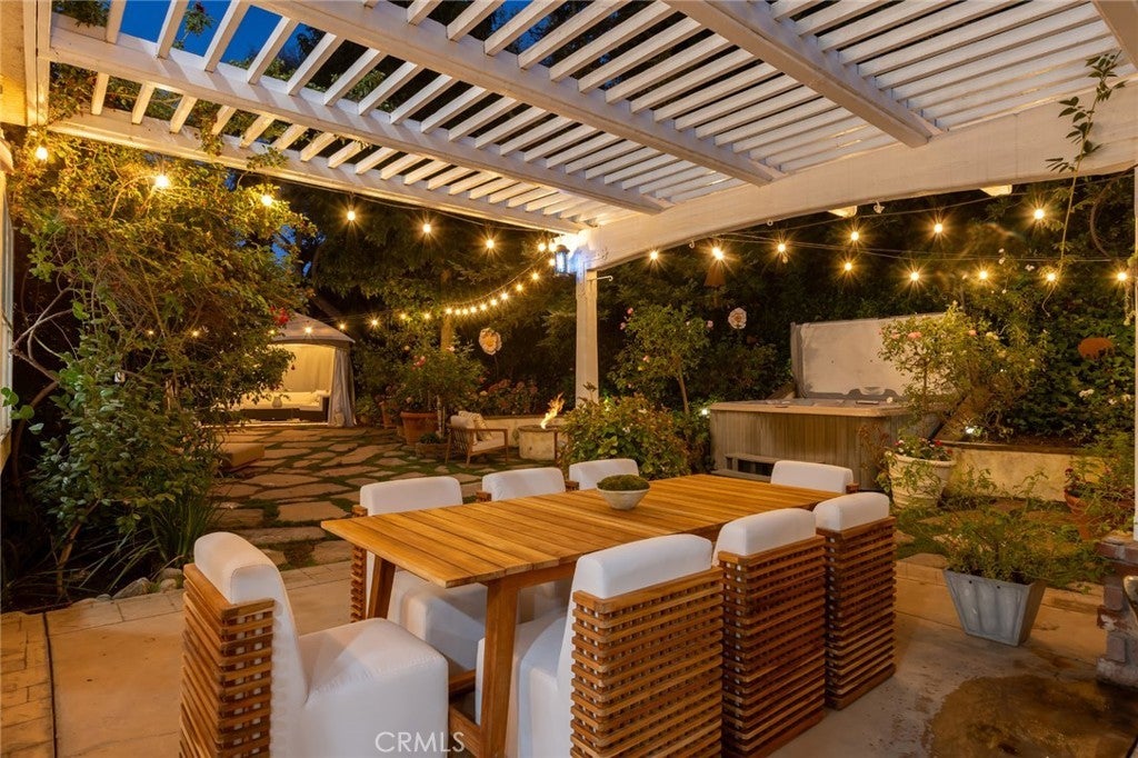 Welcome to 5985 Vista De La Luz, an exceptional retreat in the prestigious Valley Circle Estates neighborhood of Woodland Hills. Located within a highly-desired community served by award-winning schools, this residence offers an ideal blend of elevated design, privacy, and location. Offering 4 bedrooms, 3.5 baths, and 2,658 sq ft on a generous 0.27-acre lot, the home is filled with warmth, light, and character. Custom exposed ceiling beams and striking fireplace mantles crafted from authentic 18th-century barnwood create a rich architectural statement, blending timeless craftsmanship with modern comfort. The downstairs office features custom built-in cabinetry, providing both beauty and functionality for today’s work-from-home lifestyle. Thoughtfully designed living spaces flow effortlessly for both intimate evenings and lively gatherings. The spacious primary retreat serves as a private sanctuary, complete with vaulted ceilings, its own cozy fireplace, and a generous walk-in closet. The spa-like primary bath offers a jetted soaking tub, separate shower, and refined finishes designed for relaxation and rejuvenation. The true magic unfolds in the backyard oasis — a private sanctuary framed by lush greenery and open skies. Enjoy evenings gathered around the firepit, unwind in the hot tub beneath the stars, or relax in the charming gazebo as weekend entertaining flows seamlessly from indoors to nature’s embrace. It is a setting designed not just for living, but for unforgettable moments. With nearby hiking trails weaving through the scenic Santa Monica Mountains, adventure and tranquility are always close at hand. Built in 1995, this home offers modern convenience wrapped in romantic charm — a rare blend of craftsmanship, comfort, and refined California living in the heart of Woodland Hills.