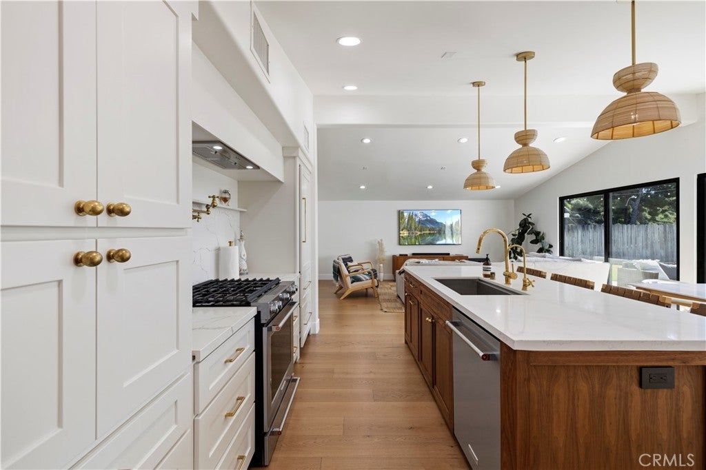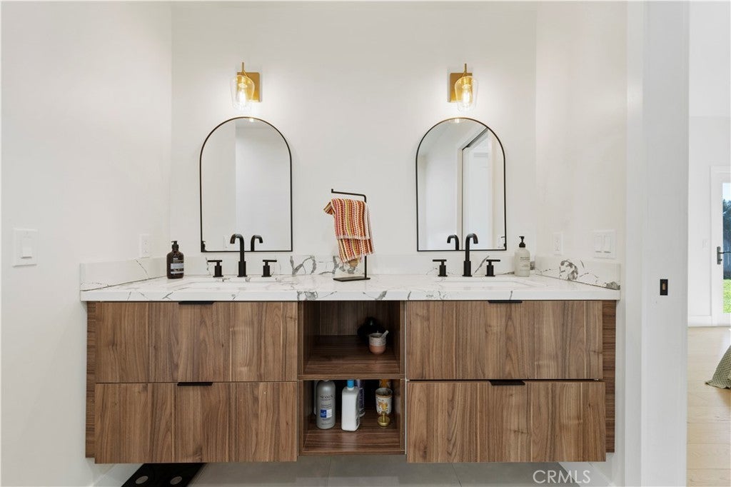 Welcome to one of the most charming streets in Santa Clarita, where the homes have character and this one clearly decided to show off. Set on a massive lot with RV parking large enough for a 40-foot RV or trailer, this property also features a nearly 1,000 sq ft permitted addition completed by a licensed contractor, creating a layout that now lives like dual primary suites. One of those primaries even offers its own separate access, opening the door for a potential income-producing setup, guest quarters, or multigenerational living. And the Santa Clarita jackpot… NO HOA and NO Mello Roos. Inside, the home has been completely reimagined with a design that feels like California Rancho meets Mid-Century cool. The massive kitchen opens directly to the living space and is anchored by white oak Italian flooring, a real walnut island, and stunning quartz countertops. The Sub-Zero refrigerator is custom paneled in wood, because even the fridge in this house understood the assignment. The home also features dual sliding doors that open wide to the backyard for true indoor-outdoor living, creating a seamless flow perfect for entertaining and enjoying the mountain views. The expanded primary suite is a retreat of its own, featuring vaulted ceilings, a large walk-in closet, and a spa-like bathroom with soaking tub and tiled shower. The layout allows excellent separation and privacy between the suites. The laundry room was added during the expansion and includes a large pantry, abundant storage, custom wood cabinetry, and designer paint. Major upgrades include all new electrical with upgraded panel and room for 220V, a new sewer line for the addition running to the street, wired indoor and outdoor speakers, and hardwired WiFi for TVs. The roof is only two years old, and the kitchen ceiling has been raised and vaulted, bringing incredible light and volume into the main living space. Additional details include reverse osmosis filtration through an antique lacquered brass faucet, a powered garage with electric door, breezeway access, and outdoor storage. The original primary suite also features an updated shower. The oversized lot offers endless possibilities. Outdoor water and gas lines are already in place for a future outdoor shower, fire pit, or entertaining space. Add a pool, host unforgettable gatherings, park the toys, or simply relax and enjoy the mountain views. Homes like this aren’t just updated… they’re completely reimagined.