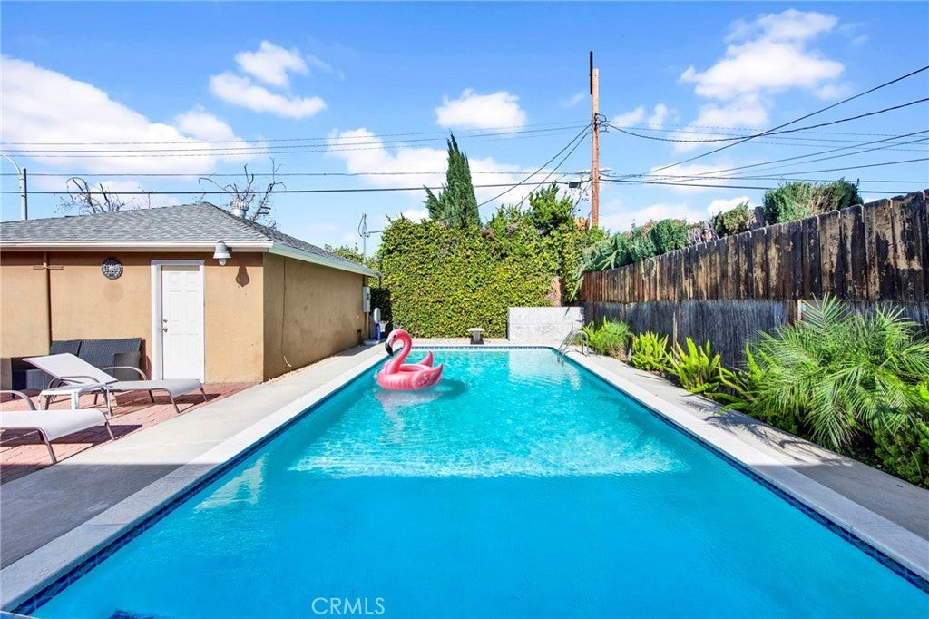 Welcome to this West Hills 5-bedroom, 3-bathroom pool home, with 2,375 square feet of living space. This inviting residence features a beautiful open-concept layout, with seamless flow between the kitchen, dining area, and living room. Perfect for relaxing and entertaining. Enjoy wood floors throughout, recessed lighting, ceiling fans, and wiring for surround sound. The gourmet kitchen boasts granite countertops, and premium Viking appliances, plus the refrigerator stays. A separate laundry room comes complete with a new washer and dryer for you. Stay comfortable year-round with a newer central A/C system, dual-pane windows and sliders, and copper plumbing. The luxurious master suite has, 2 large closets, its own sliding door to the backyard, and includes a relaxing Jacuzzi tub, and dual sinks in the master bathroom. A step-down bedroom on the other side of the home, currently serves as a flexible workout room, with direct access to the pool as well. Once outside to your private backyard oasis, you’ll be able to enjoy a sparkling pool with its own heater, which was recently re-plastered with fresh tile and coping — ideal for year-round enjoyment. Additionally you have security cameras, an alarm system, and a detached 2 car garage. Walking distance to the Fallbrook Mall, restaurants, shopping, and parks. Close proximity to Ventura Blvd, and local hiking trails. Shown by appointment only