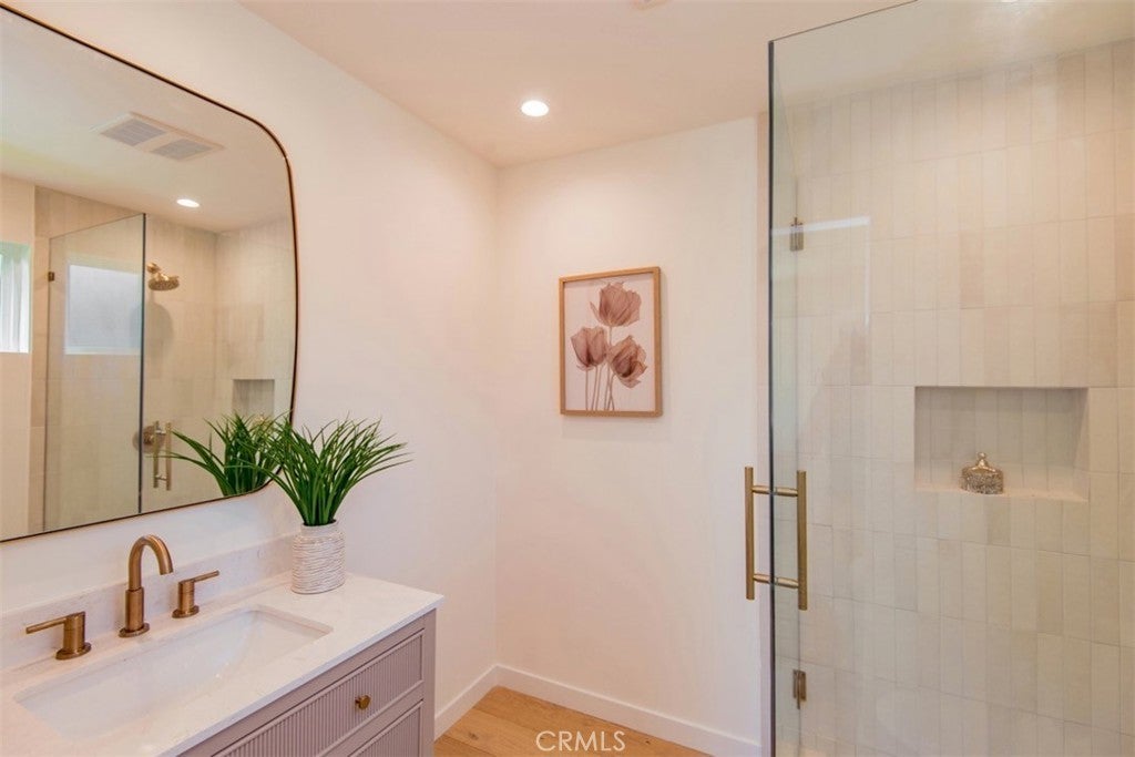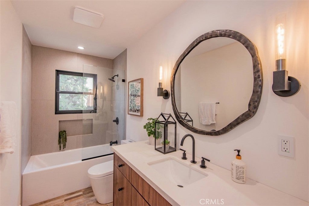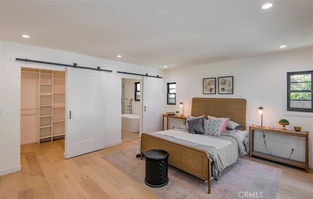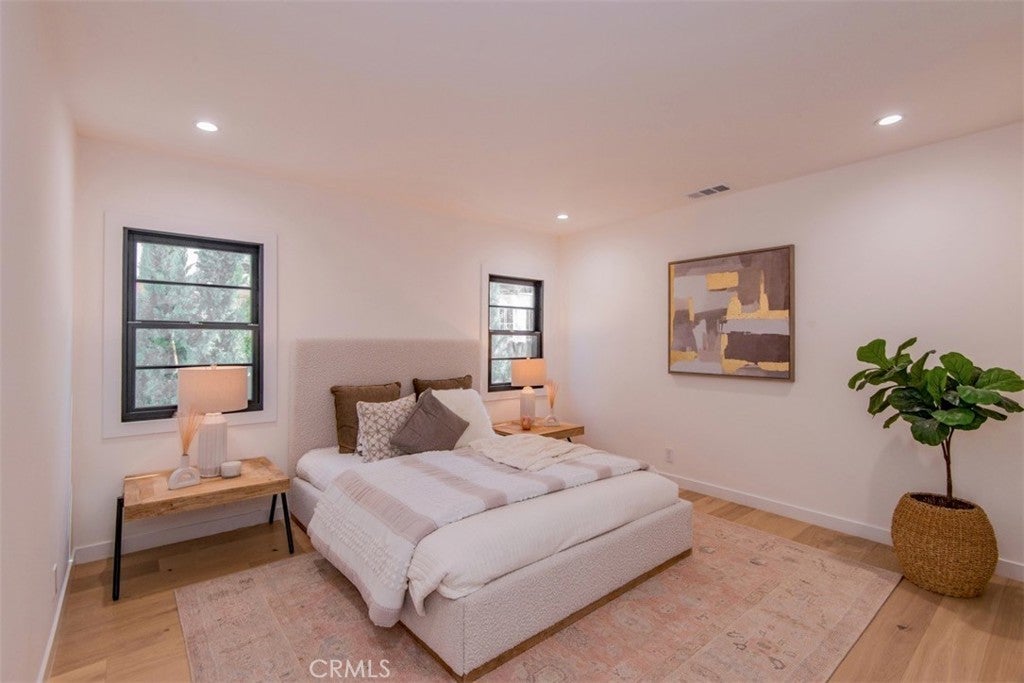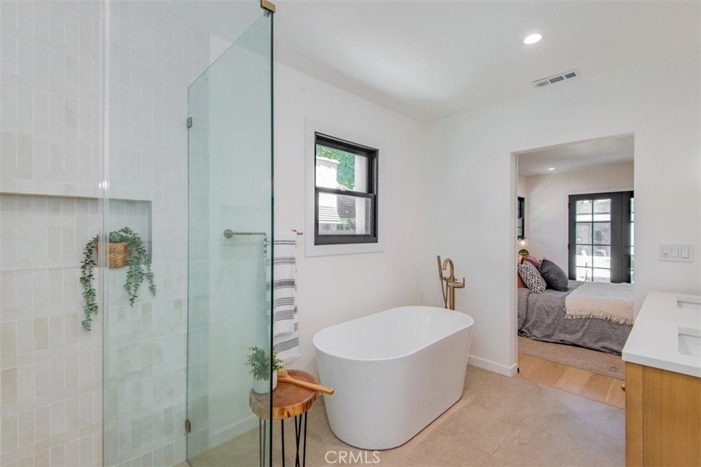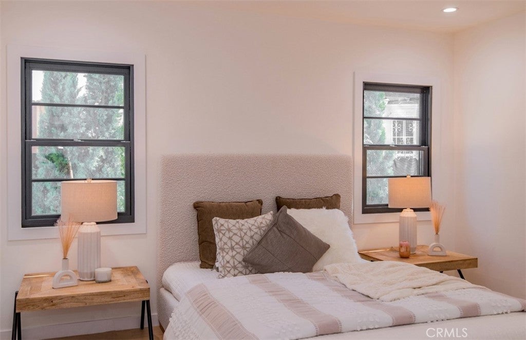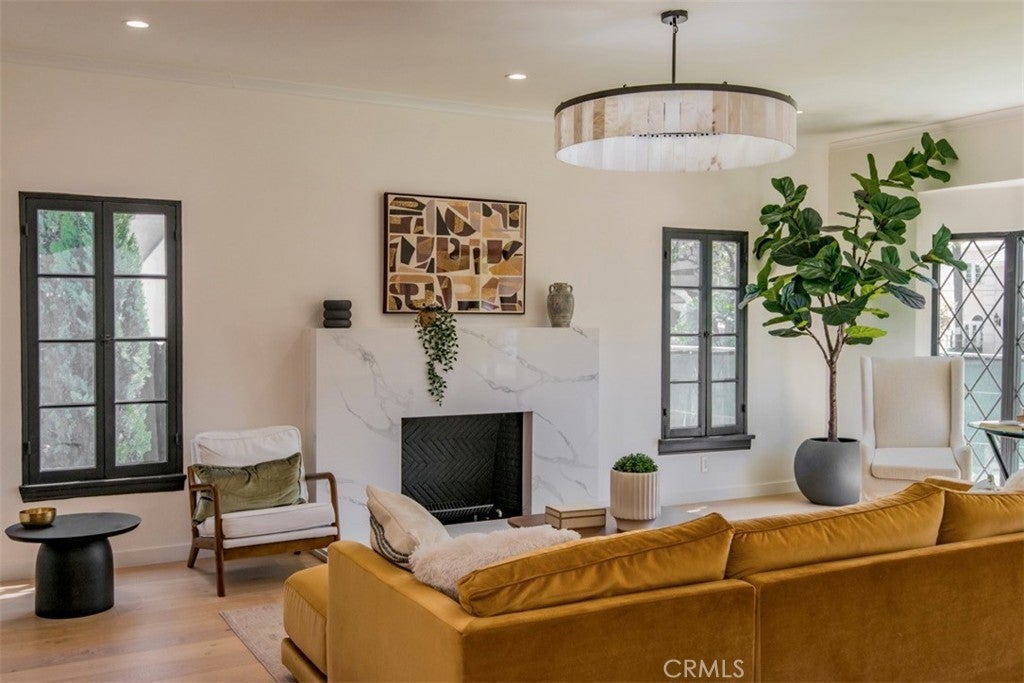 Welcome to 158 S Formosa Avenue, a rare reimagined traditional home nestled within a tranquil tree-lined street in the highly desirable Miracle Mile North Historic Preservation neighborhood. A Beautiful exterior color palette and succulent landscaping greet you upon arrival. Step inside and be captivated by the warm attention to detail, restoration, and creation of era style elements. The thoughtfully designed open-concept floor plan features a large gourmet kitchen perfect for culinary enthusiasts, complete with top-of-the-line custom matching appliances, quartz counters, white oak cabinetry, large Apron sinks, floating shelves and designer light fixtures. All overlooking the tranquil dining area. Your beautiful re-inspired living room features a stand out quartz fire place, custom crown molding, a historic timeless front bow window with leaded glass and French oak floors throughout. Parallel to the living room is your first bedroom, this could be converted very simply by the contractor into a den or your own private dining area if preferred. The large primary bedroom & bathroom features a double reeded vanity, standalone tub, walk in glass shower, large format designer tile, walk in closet, separate smaller closet and French doors leading out to a large wrap around deck. The other 3 bedrooms have ample space, closets and one of the bedrooms has french doors also leading out to the deck. The other two bathrooms have a mixture of marble vanities. Delta shower finishes, herringbone porcelain floors and brass hardware. The ADU has its own kitchenette, bathroom with walk in shower and hardwood floors, perfect for a at home office, studio or in-law suite. The ADU also features it's own address, gas & electric meter and tankless water heater. The grounds feature an enclosed new wood & iron gate, drip system, lush olive trees, a new large wooden deck perfect for hosting outdoor gatherings for al-fresco dining and entertaining. All new wooden privacy fencing, mature plants & trees, gravel and concrete. Upgrades include foundation, roof, furnace, plumbing, electrical, tankless water heaters, sewer, chimney, stucco, windows, doors, flooring, kitchen, bathrooms, bedrooms, living areas, landscaping and hardware. Highly sought after location, centrally located to schools, shopping and places of​​‌​​​​‌​​‌‌​​‌​​​‌‌​​​​​​‌‌​‌‌​​‌​​​‌‌​ worship.