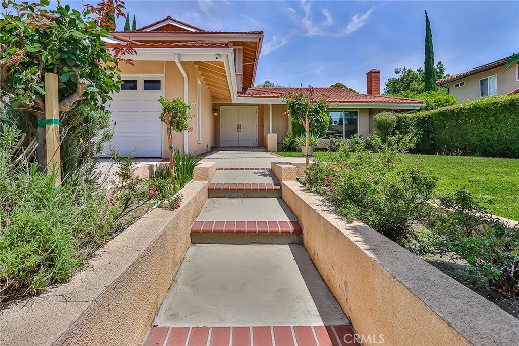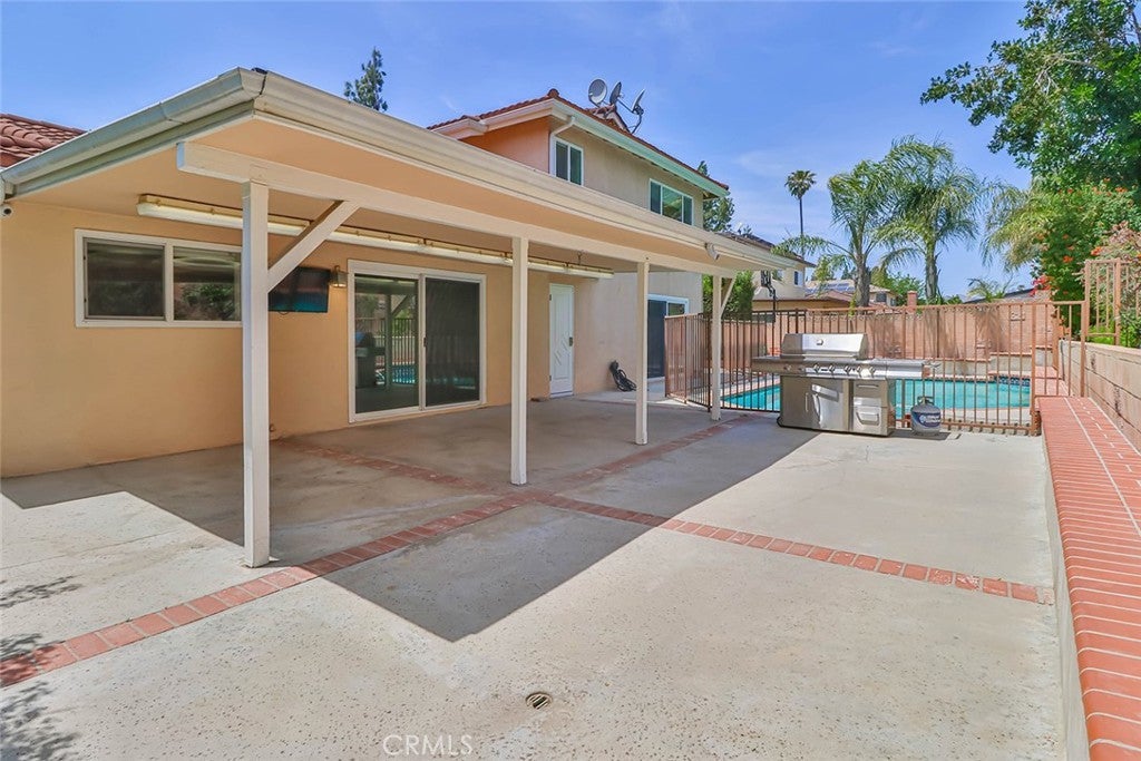 Beautifully updated gated home located in one of Porter Ranch’s most desirable neighborhoods, known for its excellent schools and flat streets perfect for a quick leisurely stroll through the neighborhood anytime of day. Enter through double doors into a bright, open, and inviting floor plan. The spacious living room is highlighted by large windows and a designer fireplace, creating a warm and elegant atmosphere. The remodeled kitchen features custom cabinetry, granite countertops, convenient bar seating, and flows seamlessly into a true formal dining area—perfect for family meals or entertaining guests. An oversized family room includes a wet bar and expansive sliding glass doors that open to the backyard, offering ideal indoor-outdoor living. A downstairs bedroom is paired with a beautifully remodeled, spa-like bathroom complete with a separate tub and shower. The three-car garage is currently utilized as a bonus room, providing flexibility for a home office, gym, or additional living space. Upstairs, you’ll find three generously sized bedrooms that share an updated full bathroom with a thoughtfully designed separate vanity and bathing area. The private backyard is an entertainer’s dream, featuring a large covered patio and an oversized side yard with a built-in basketball hoop., and a fenced pool and spa. Additional highlights include attractive landscaping, large grassy area in the front yard and a home camera security system. Conveniently located near Beckford Elementary, Nobel Middle School, and Granada Hills Charter High School, this exceptional home also offers easy access to freeways, shopping, and dining.