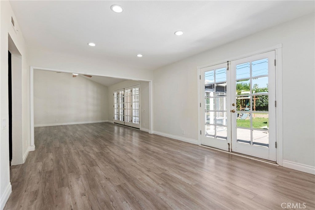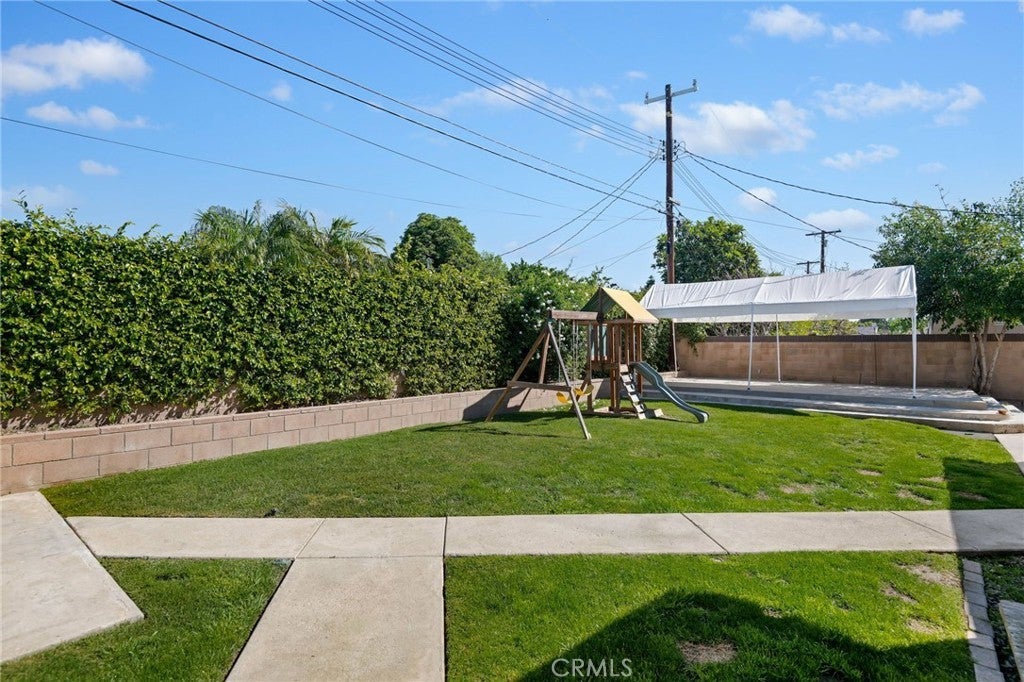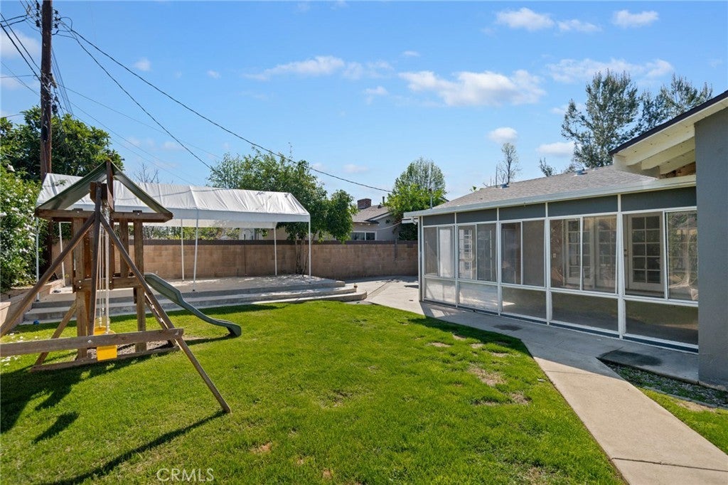 Nestled on a quiet cul-de-sac, this beautifully renovated three-bedroom, 1.75-bathroom residence offers the perfect blend of contemporary upgrades and classic charm. Fully updated within the past seven years—including new plumbing, rich hardwood flooring, and drought-tolerant front landscaping—this home is truly move-in ready. The heart of the home features an expansive, open-concept living and dining area designed for gathering, anchored by a sleek wet bar and a kitchen boasting abundant cabinetry. Tucked off the kitchen is a unique highlight: a custom-built beauty salon with its own private exterior entrance—ideal for a home business, a massive walk-in pantry, or creative studio space. The private wing houses three comfortable bedrooms, including a primary suite with a 3/4 ensuite bath. Both the primary suite and the living area open into a bright sunroom, seamlessly connecting the interior to an entertainer’s backyard. Outside, enjoy a lush lawn with a playset, a large canopy-covered platform for dining, and a dedicated pad ready for a jacuzzi or additional storage. Complete with a two-car direct-access garage and proximity to top-tier schools, shopping, and parks, this is a rare opportunity to own a turnkey home in a tranquil setting.