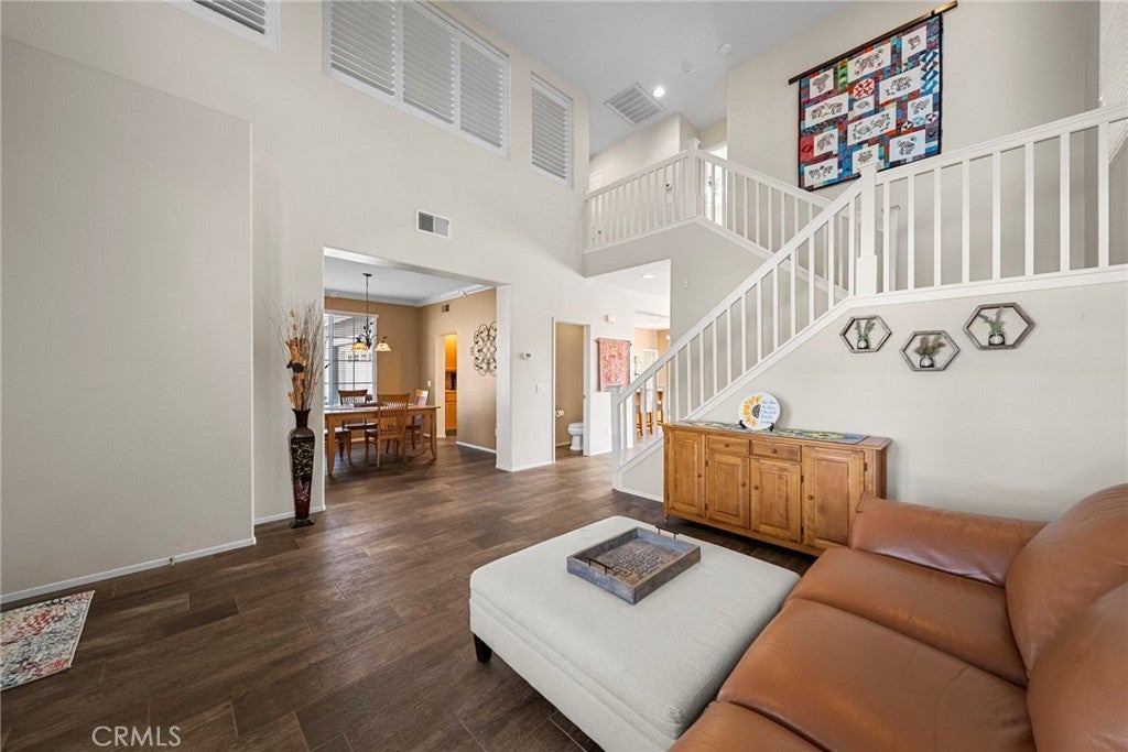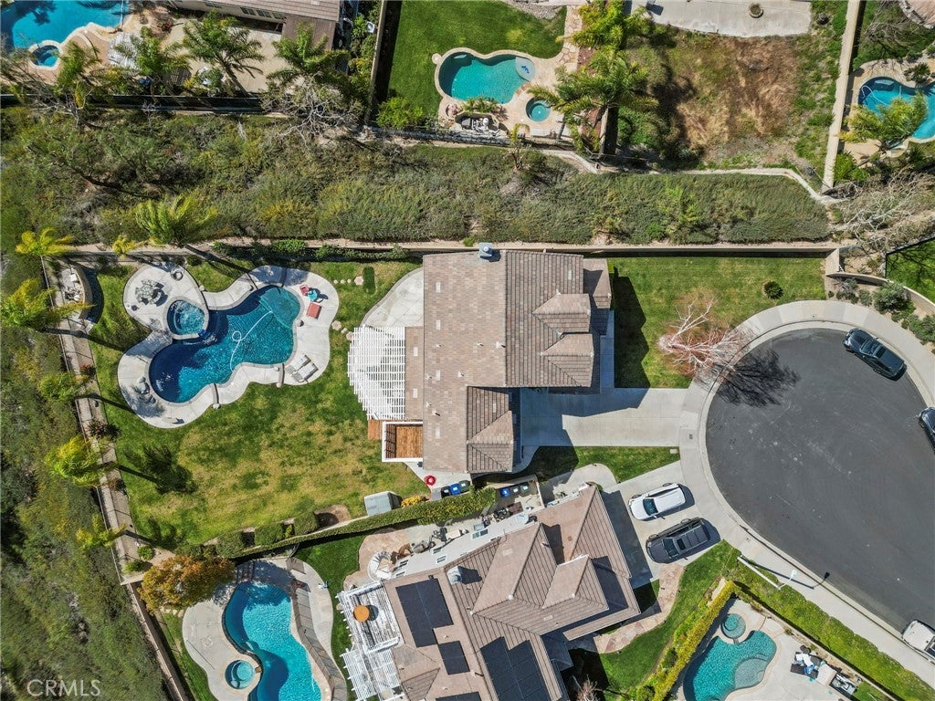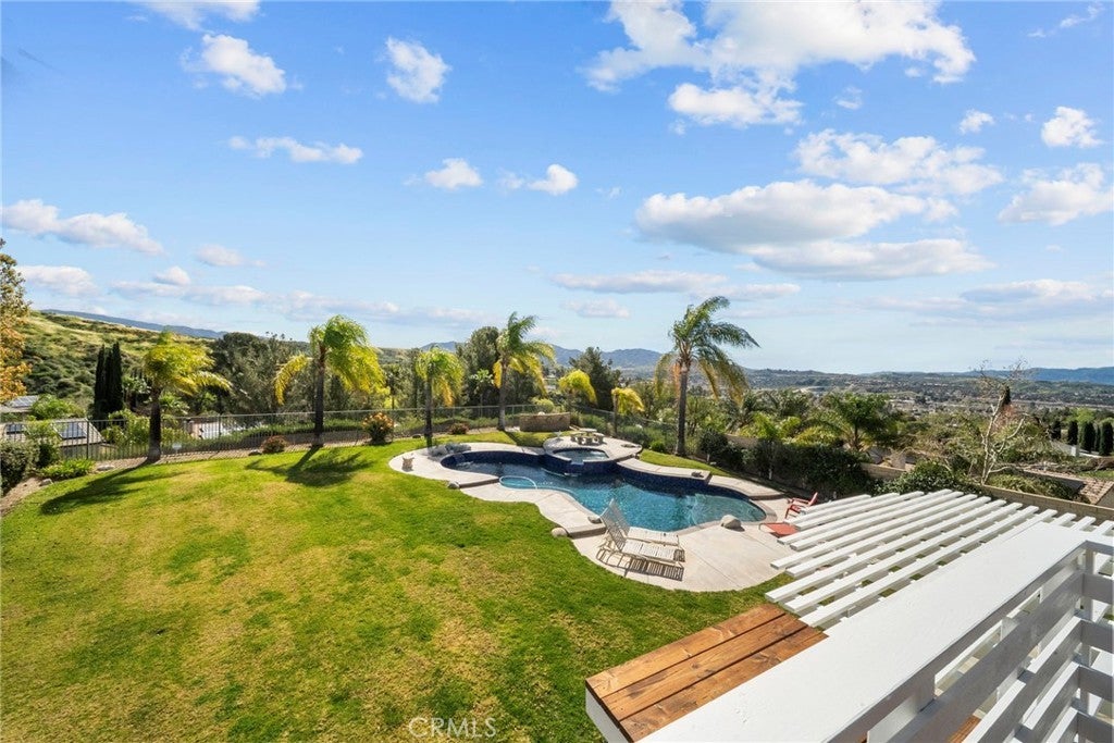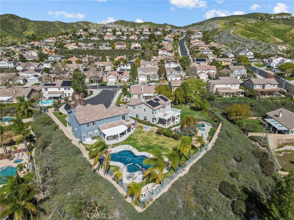 Beautifully upgraded home located on one of the most incredible lots in the neighborhood! Tucked away at the end of a quiet cul-de-sac, this home offers exceptional privacy, panoramic views, and an expansive backyard rarely found in the area. The oversized lot features a huge grassy yard, sparkling pool and spa, and plenty of space for entertaining or relaxing while enjoying the surrounding hills and city lights. Inside, the home features an open and inviting floor plan with upgraded tile flooring throughout the downstairs living areas. The spacious kitchen includes stainless steel appliances, a large center island, and opens to the main living spaces, creating a perfect flow for everyday living and entertaining. A covered patio off the living area provides seamless indoor-outdoor living. Upstairs you’ll find four bedrooms, with the fourth bedroom currently configured as a loft (builder option), including a spacious primary suite with a private deck overlooking the backyard and scenic views. Additional highlights include a three-car garage and a quiet, secluded location high above neighboring homes. The truly special lot offers both space and privacy. A rare opportunity to own a view home with a resort-style backyard in a fantastic location!