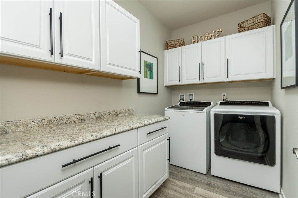 This stunning 3-Bedroom Home in Sunset Landing was built in 2017 by Beazer Homes to combines modern comfort with stylish finishes in a spacious,single level, open floor concept design. Upon entry, the foyer welcomes you with high ceilings. Off the entry is a versatile den with built-in cabinetry & shelves serves perfect for a study or an office. The heart of this home features a beautiful chefs' kitchen complete with white cabinetry, granite countertops, a large kitchen island, state of the art Whirlpool appliances, and a 5 Star Water Filtration system. This area opens to the light filled living room with a large wall for a flatscreen TV or art. Adjacent to the kitchen you'll find a space with built in cabinets and two desks on each end, making this space perfect for homework and daily task organizing. The Primary Suite, you'll find, is a true retreat with a spa-like bathroom, with dual sinks, a walk- in shower, and a generous walk in closet. There are two additional guest bedrooms as well as a hall bath and a powder room. There is also a larger enclosed back patio, airy and bright perfect for game night and entertaining. The two car garage offers cabinets and two workbenches, and the driveway was widened to accommodate an RV or any off- road toys.Enjoy the outdoors with fully landscaped front and backyard featuring an grassy area. Now the upgrades: Beautiful Laminte flooring in main living spaces,custom front security gate, tankless water heater, soft water tank, wired Ring security system, wireless internet throughout the home, and Tesla Solar panels, are a testament to the homes' energy efficiency, reflecting nearly $50,000 in upgrades. Don't miss your chance to own this move-in ready gem.Welcome to your new home!