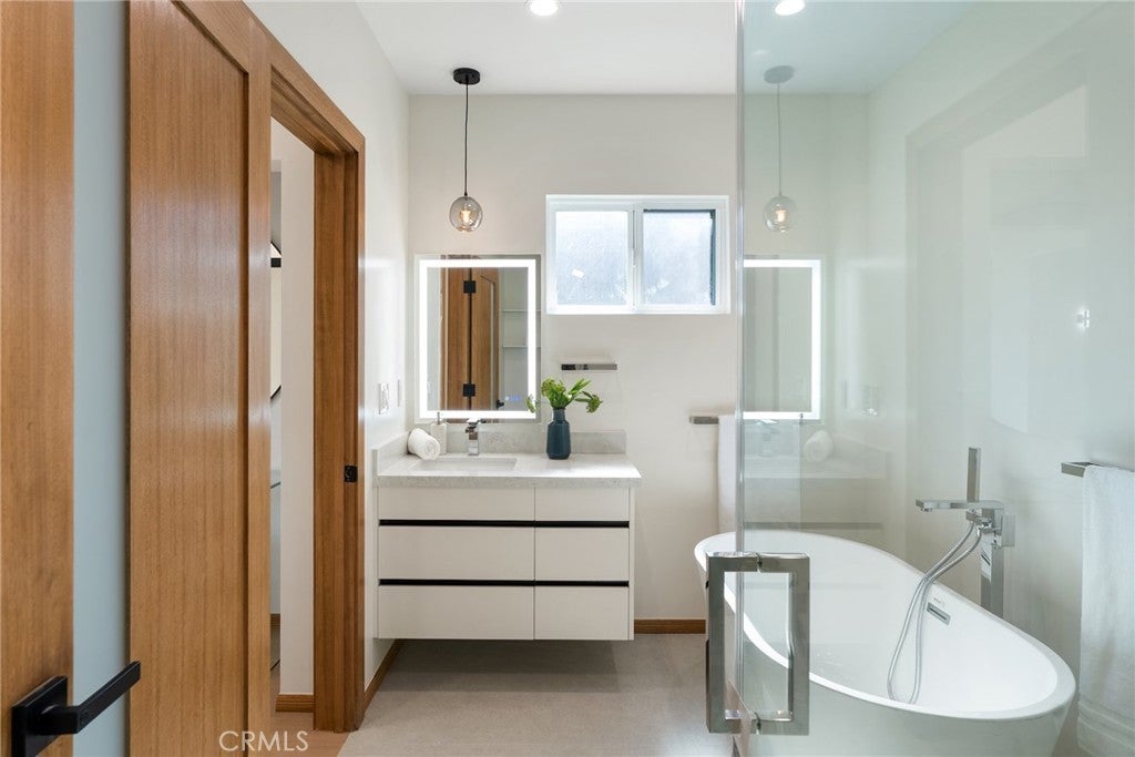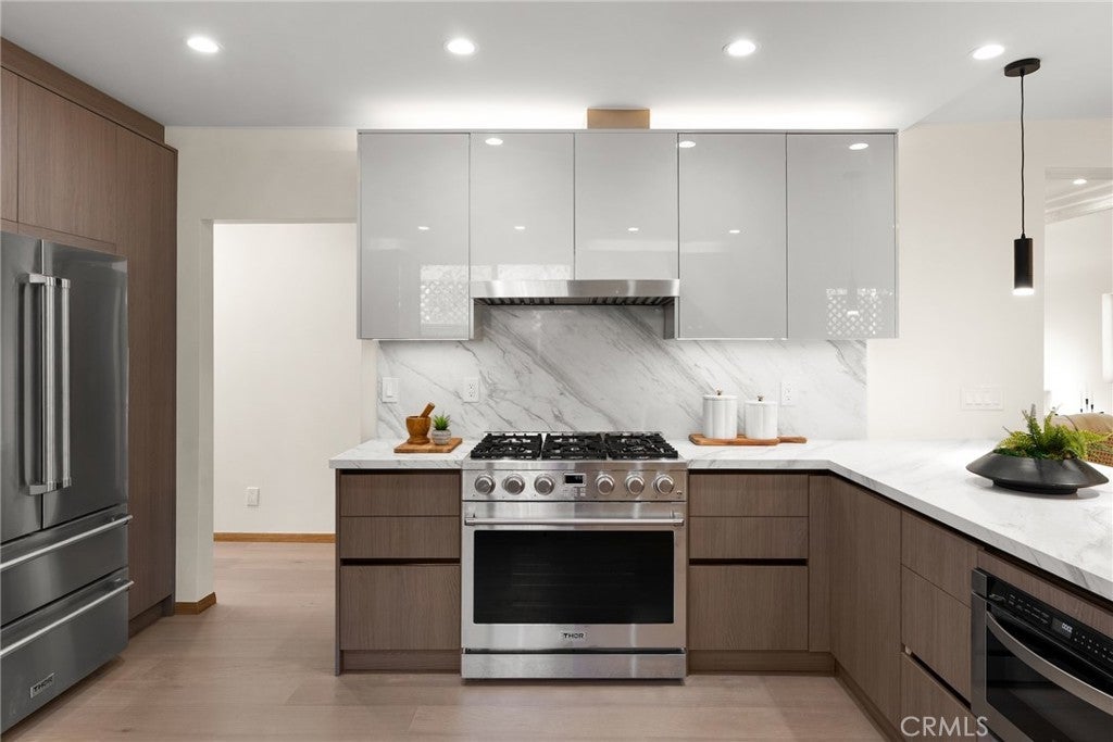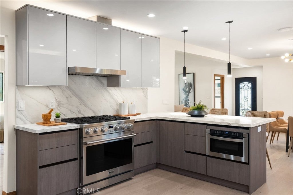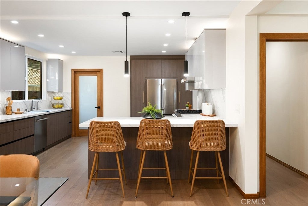 Welcome to 348 & 350 South Orange Drive, an exceptional opportunity to own two homes for the price of one in a prime central Los Angeles location. Step into this fully reimagined 2025 remodel, a gated and private 4-bedroom, 4.5-bath home where every detail reflects high-end craftsmanship and sophisticated style. As you enter the home, you’re immediately greeted by an inviting open-concept floor plan that seamlessly connects the dining area, kitchen, and living room. Natural light floods the space through large windows, highlighting the white oak floors, recessed lighting, skylights, and designer fixtures that bring warmth and modern elegance throughout. The chef’s kitchen is a show-stopping centerpiece, featuring professional-grade appliances, custom cabinetry, and stone-slab countertops designed for dining and entertaining. A dedicated laundry and storage room leads to a versatile basement, perfect for a home office, gym, or creative studio. The adjacent dining area offers an ideal setting for gatherings, while the spacious living room with its statement fireplace provides a cozy focal point for relaxing or entertaining guests. The primary suite is a peaceful retreat, complete with a large walk-in closet, a built-in closet & make-up area. A spa-inspired bathroom with a walking shower & a soaking tub. All bedrooms are en-suite with generous closet space, built-in sound systems, and motion lighting for modern comfort. The private backyard oasis offers lush landscaping, artificial grass, and plenty of room for dining, entertaining, or adding a future pool or spa. The detached ADU includes a 1-bedroom, 1-bath layout with its own living room, dining area, and kitchen, ideal for guests, extended family, or additional rental income. Every major system has been replaced, including electrical, plumbing, roof, and much more. The property also features a sound system, security cameras, motion lighting, and custom built-in cabinets and bookshelves. The front yard provides additional outdoor space to enjoy the charming neighborhood atmosphere, the perfect balance of privacy and community. Moments from Hancock Park, Larchmont Village, 3rd Street, The Grove, Hollywood, premier dining and shopping centers, this home offers the very best of California living in a vibrant yet peaceful central Los Angeles neighborhood, all within the top-rated Third Street School District. Come experience this exceptional home for yourself, fall in love, and call it home.